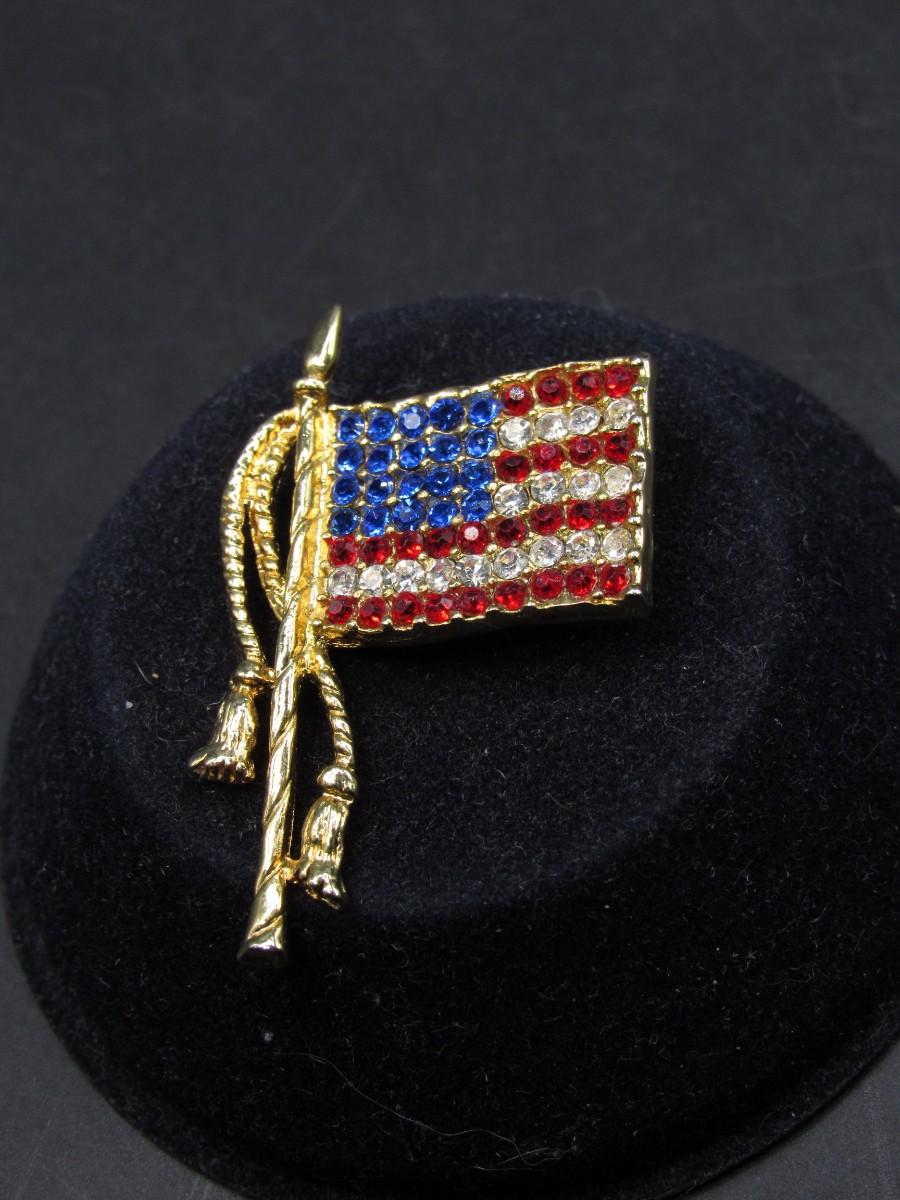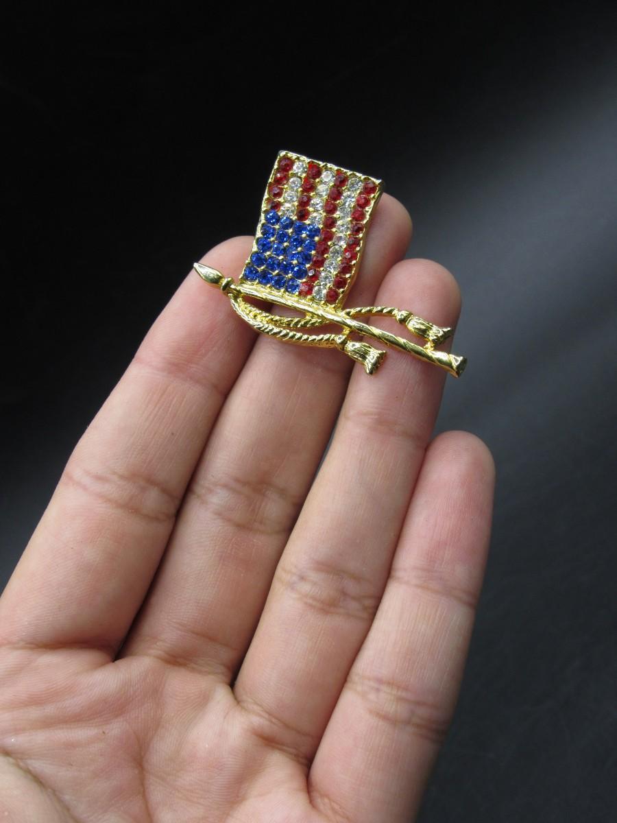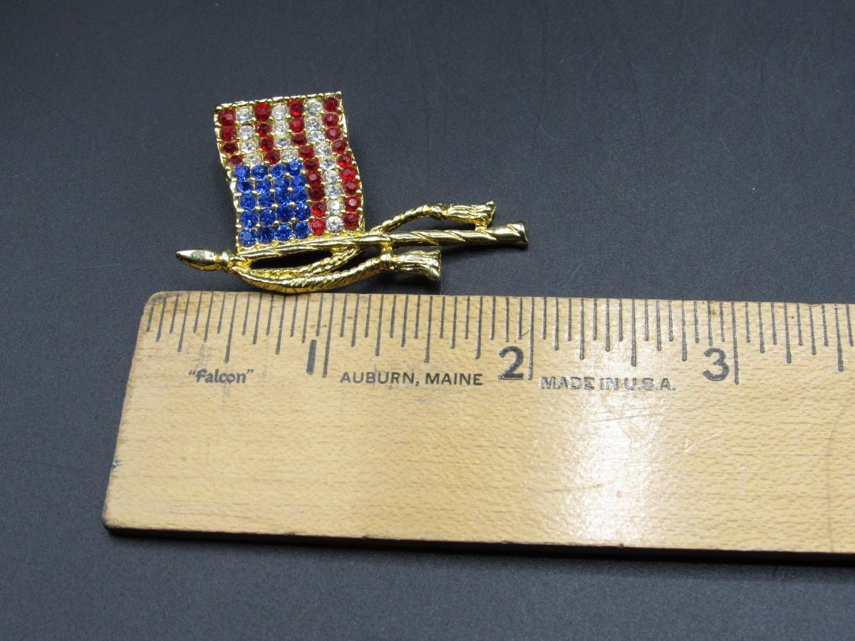 Patriotic American Flag on Flagpole Faux Jewel Lapel Brooch Pin