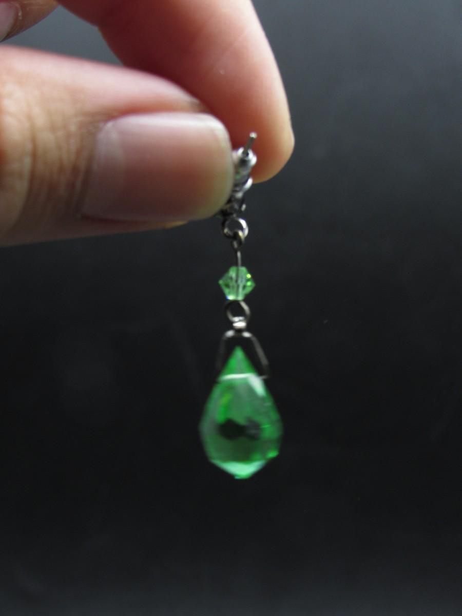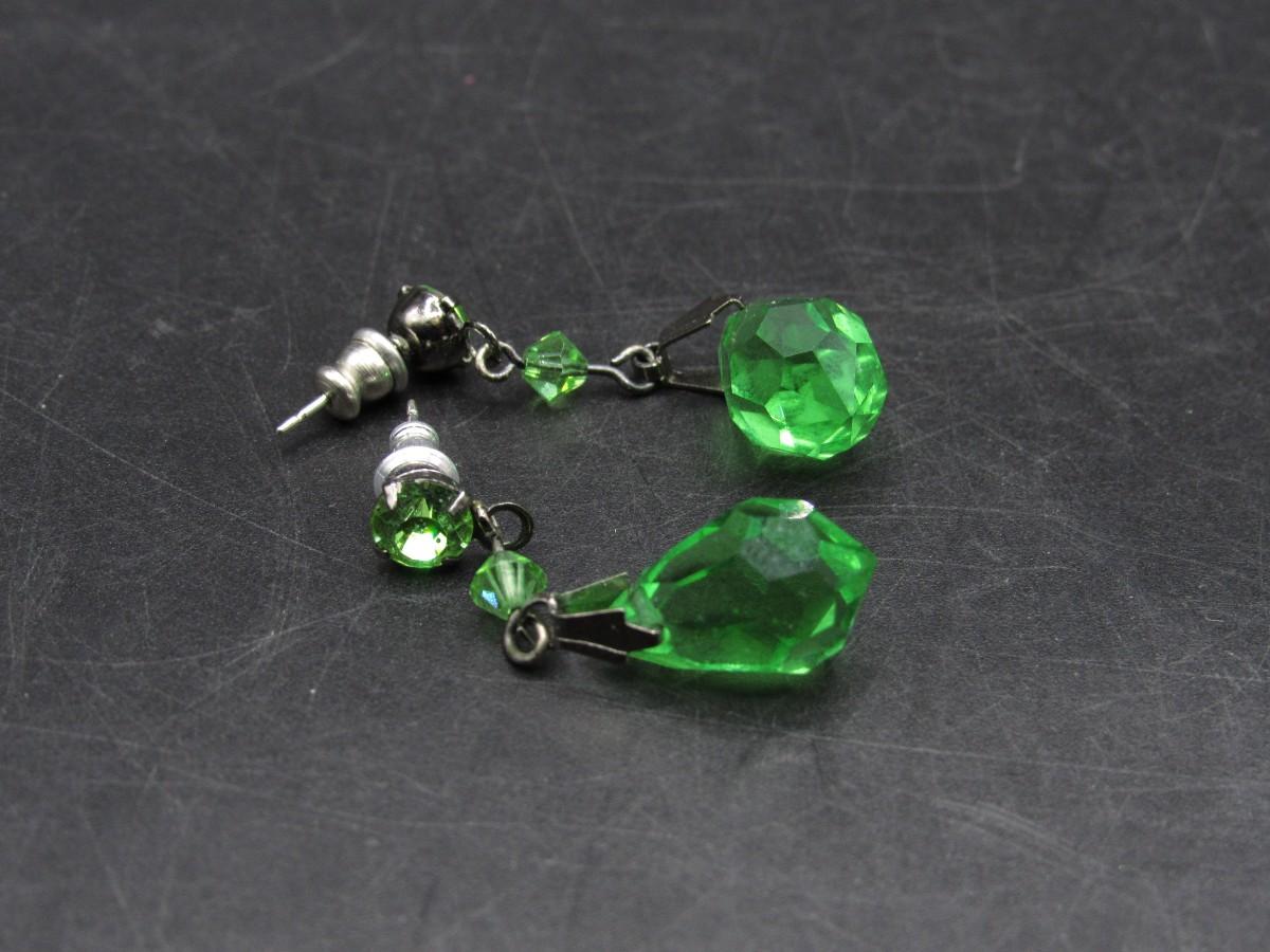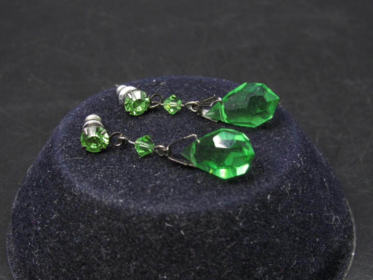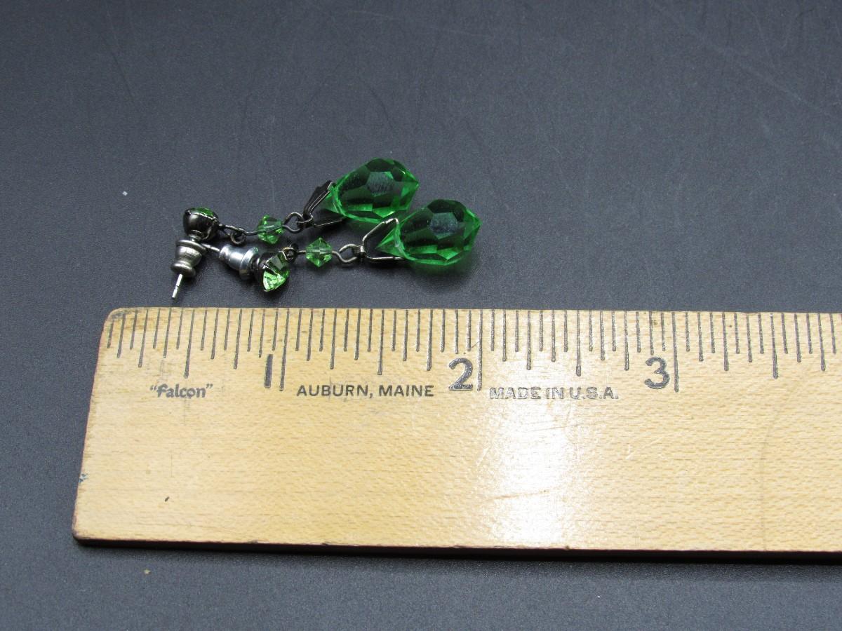 Green Faux Emerald Jewel Dangling Flapper Costume Jewelry Earrings