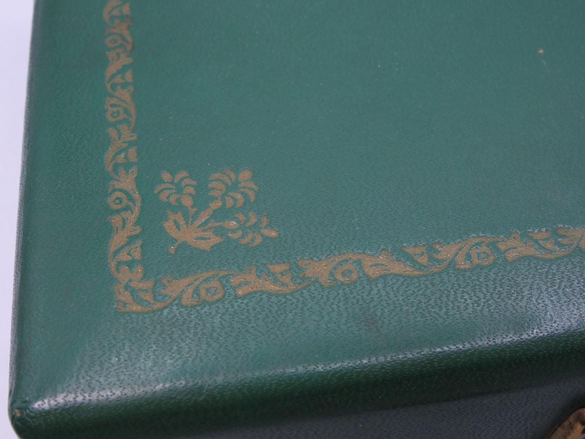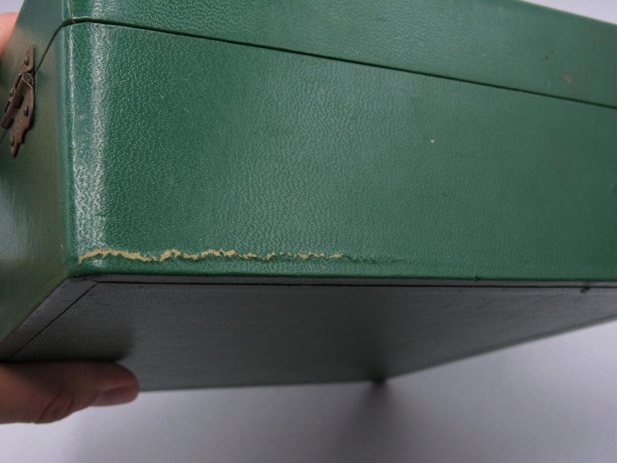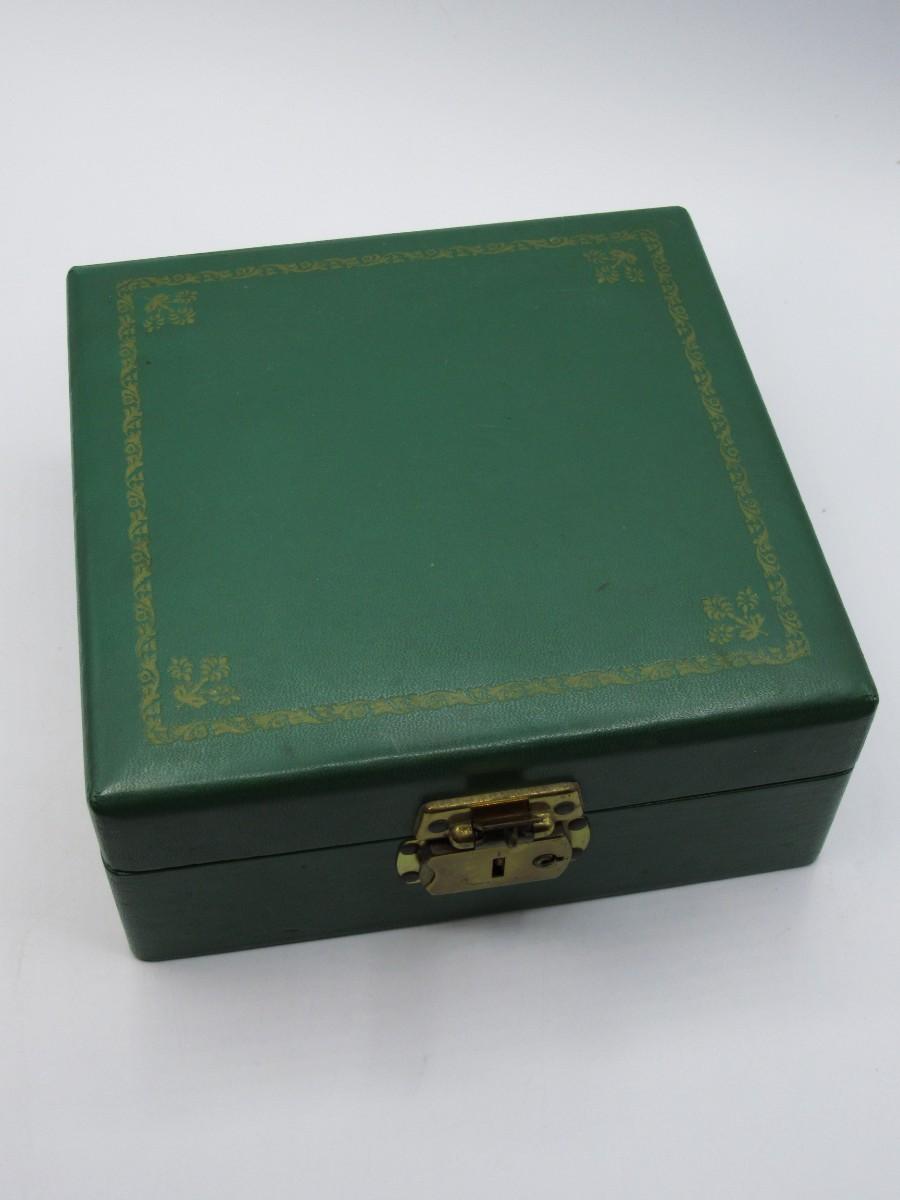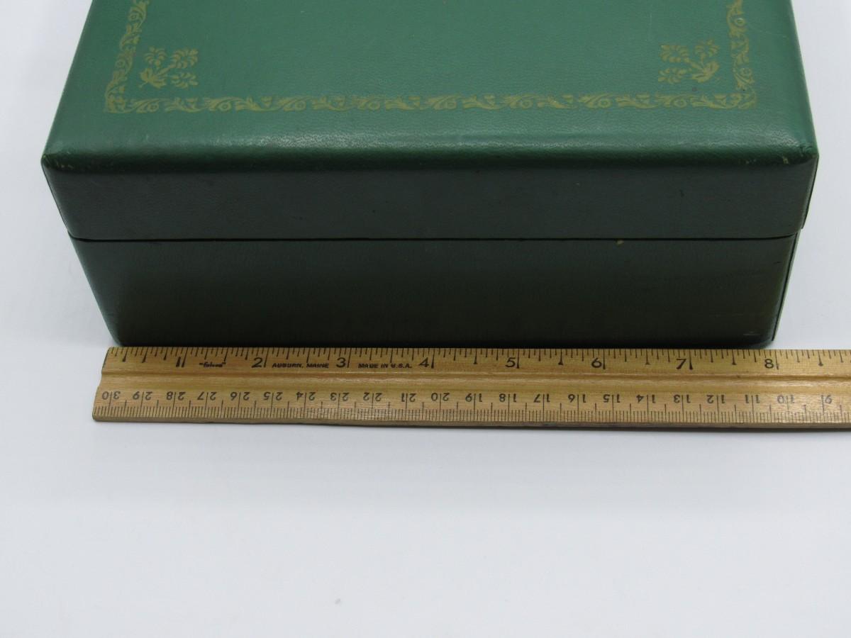There are signs of wear and use to the jewelry box, but there is no significant damage and is in good collectible or useable condition. Does not come with the key.