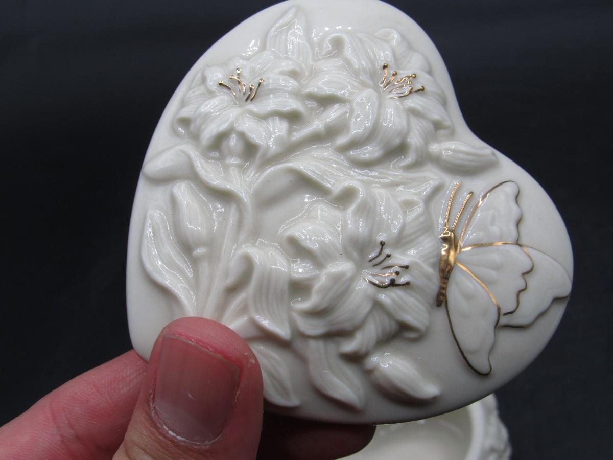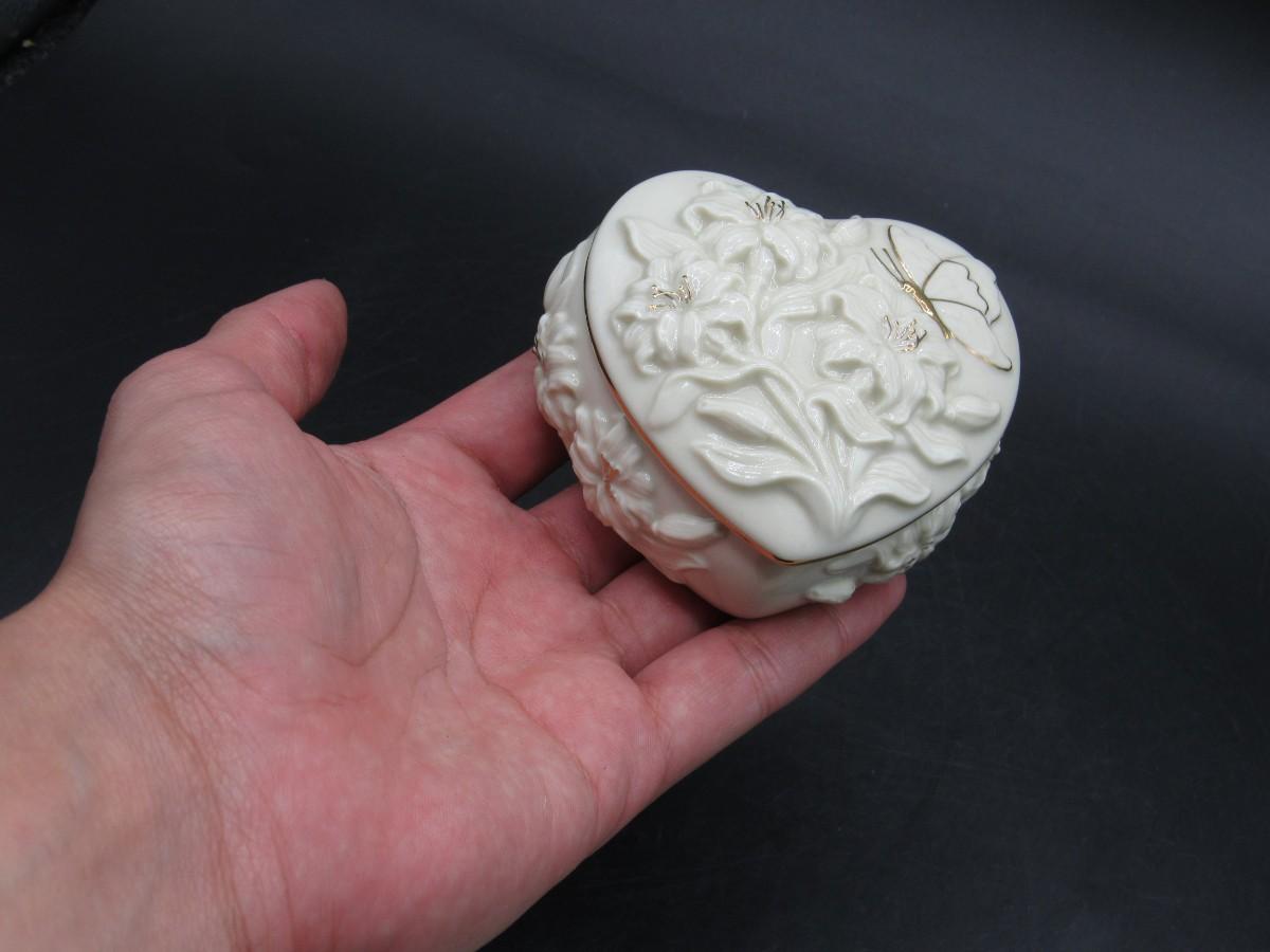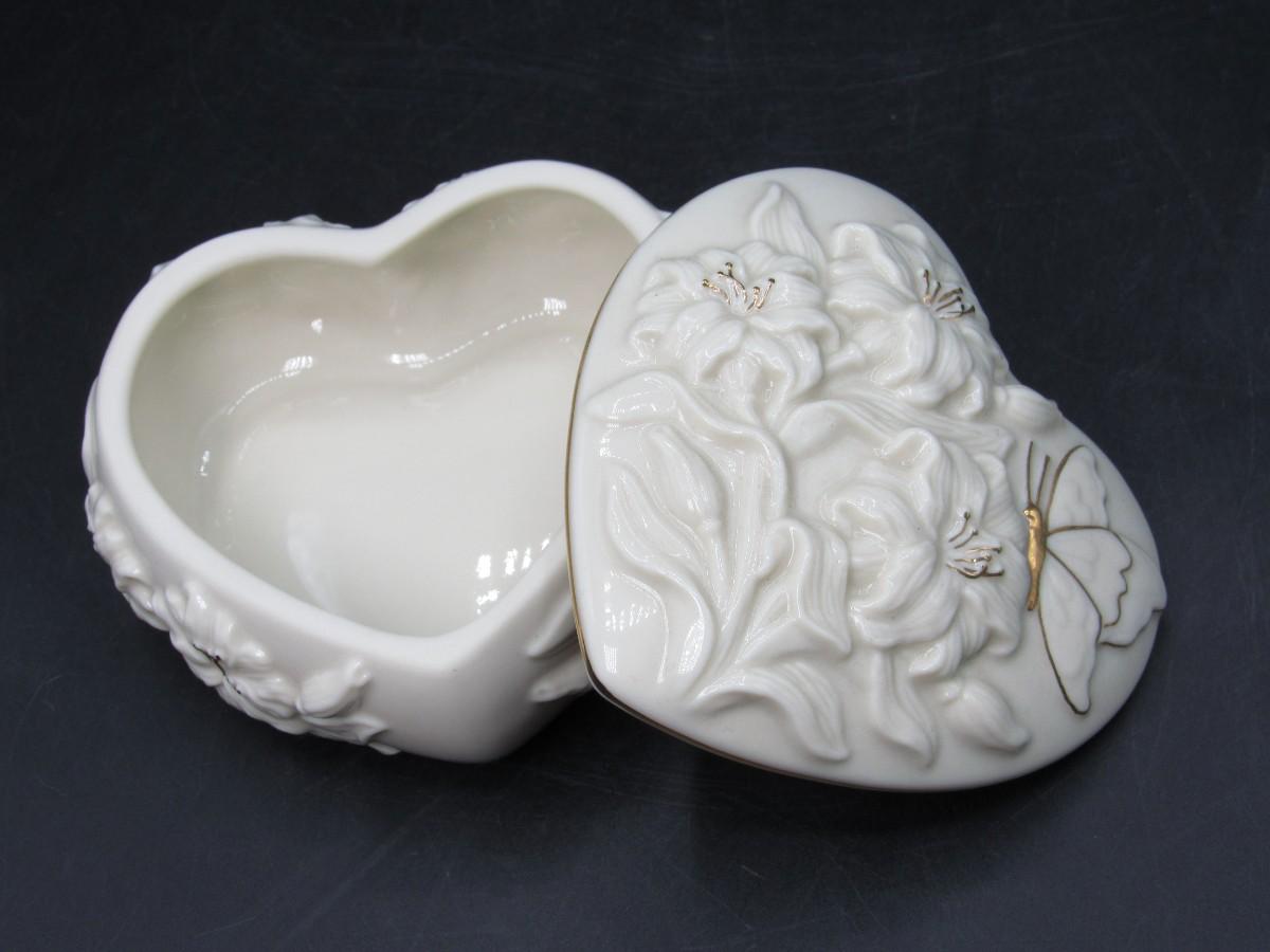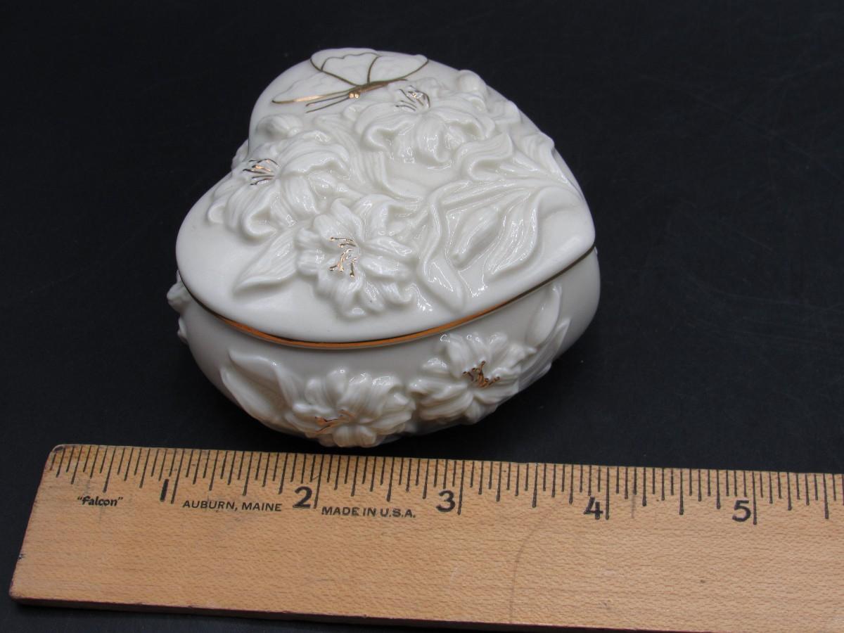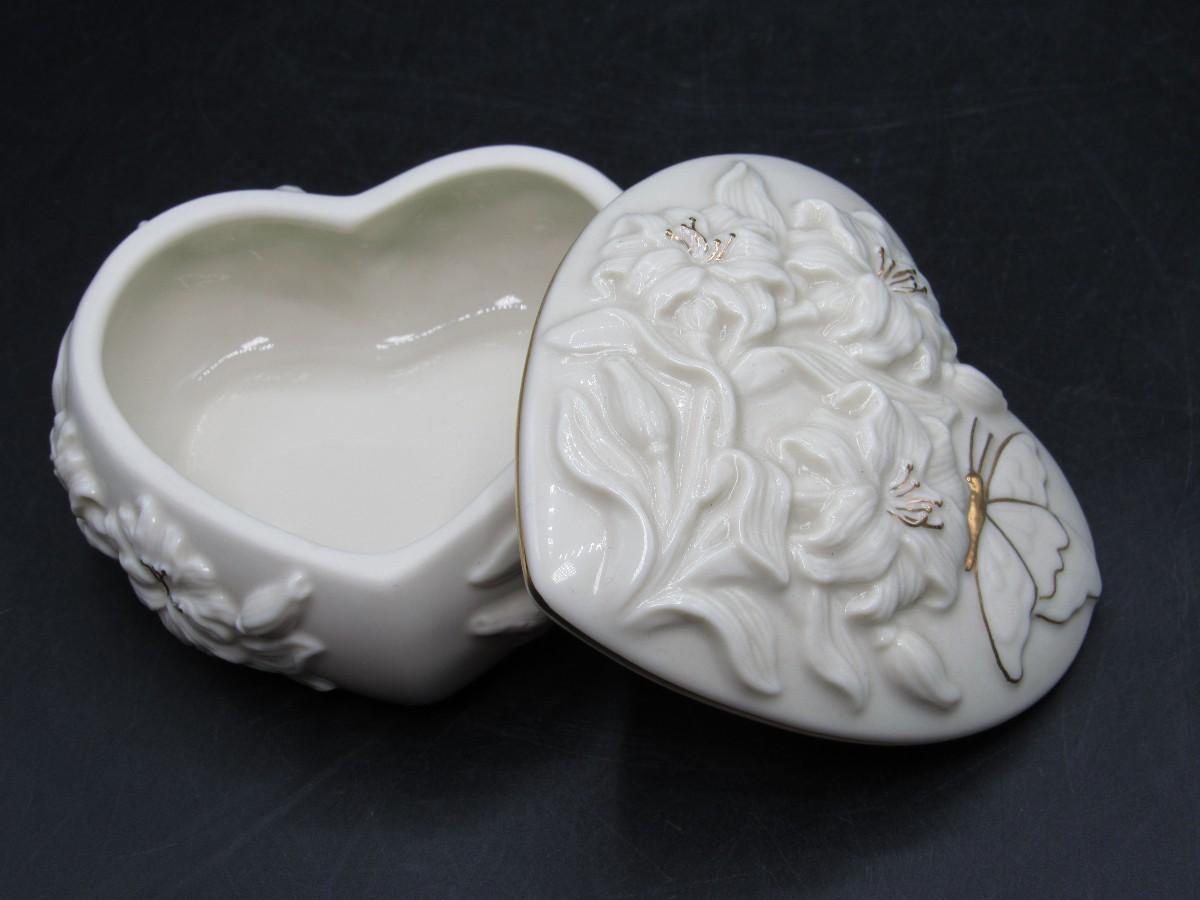 Cute Lenox Heart Shaped Textured Lidded Trinket Jewelry Dish
