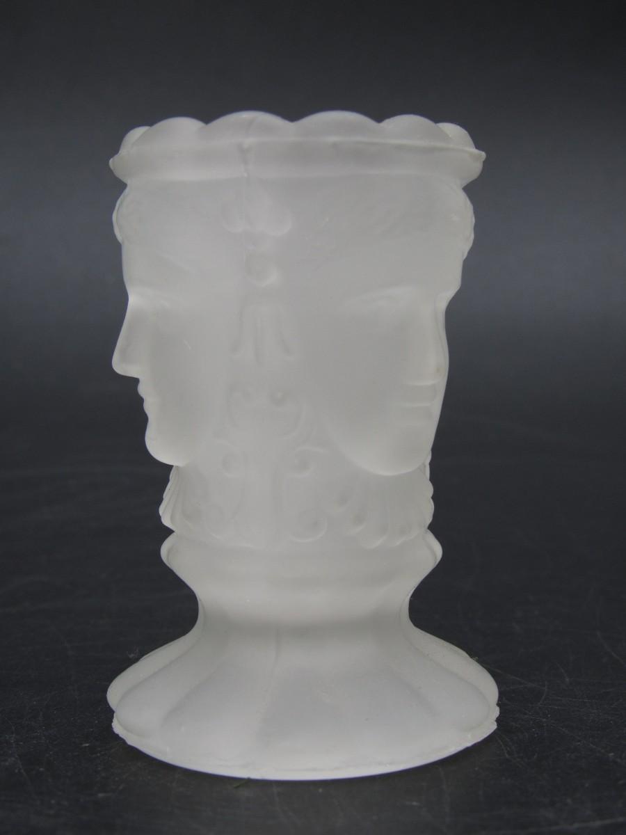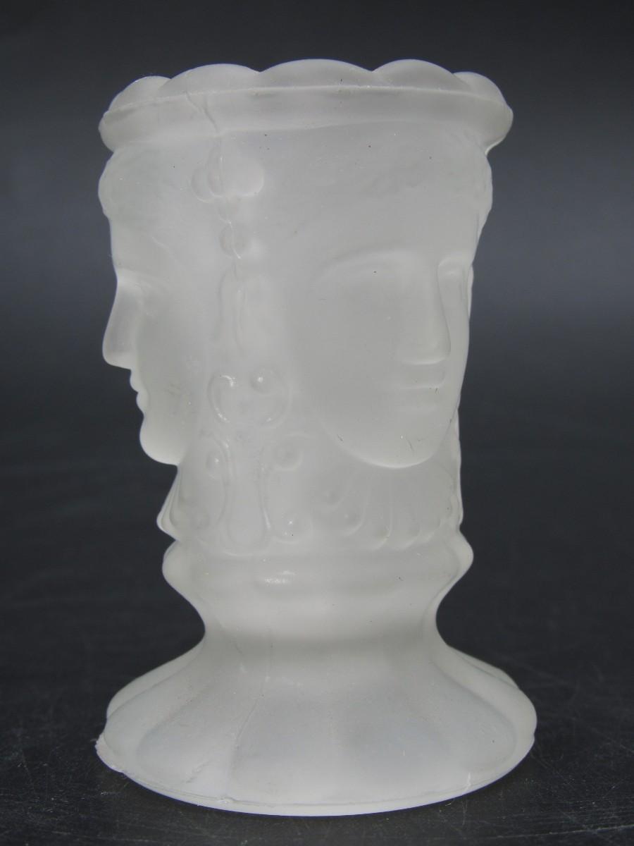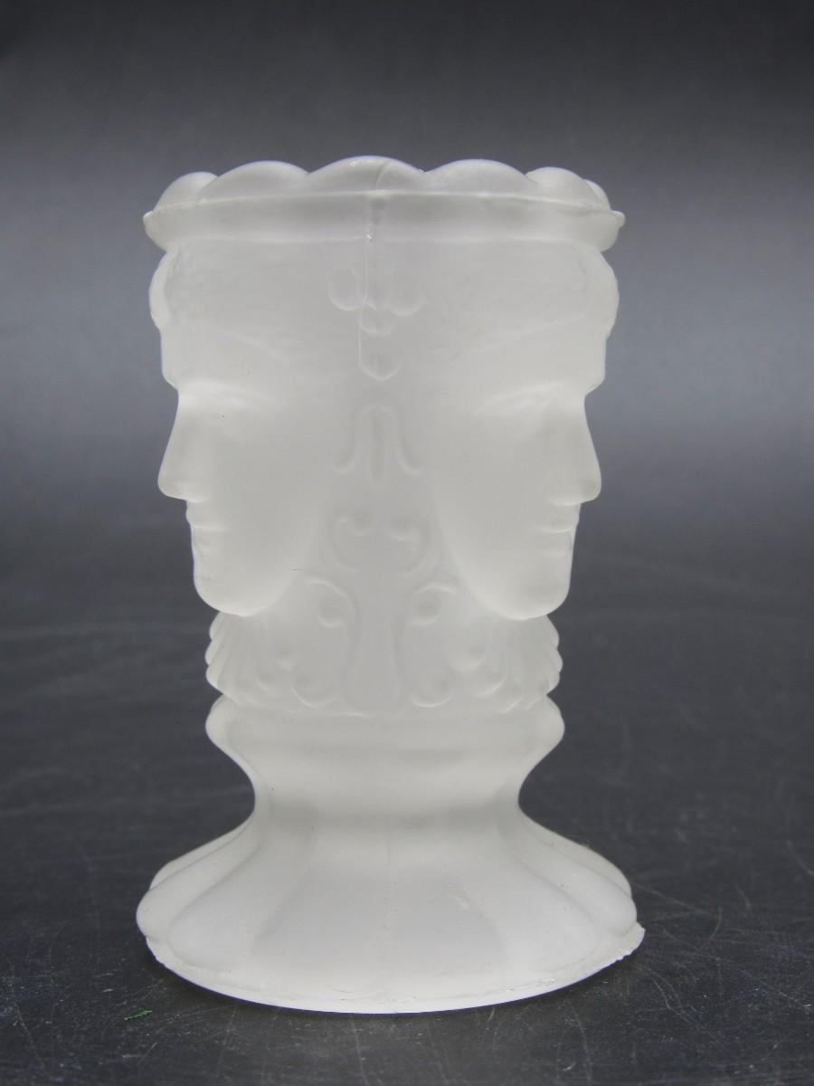Vintage Three Faces Frosted Glass Toothpick Holder