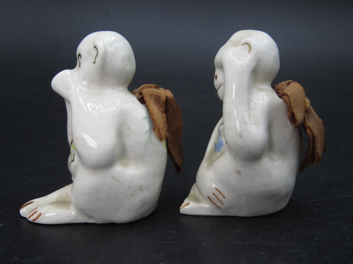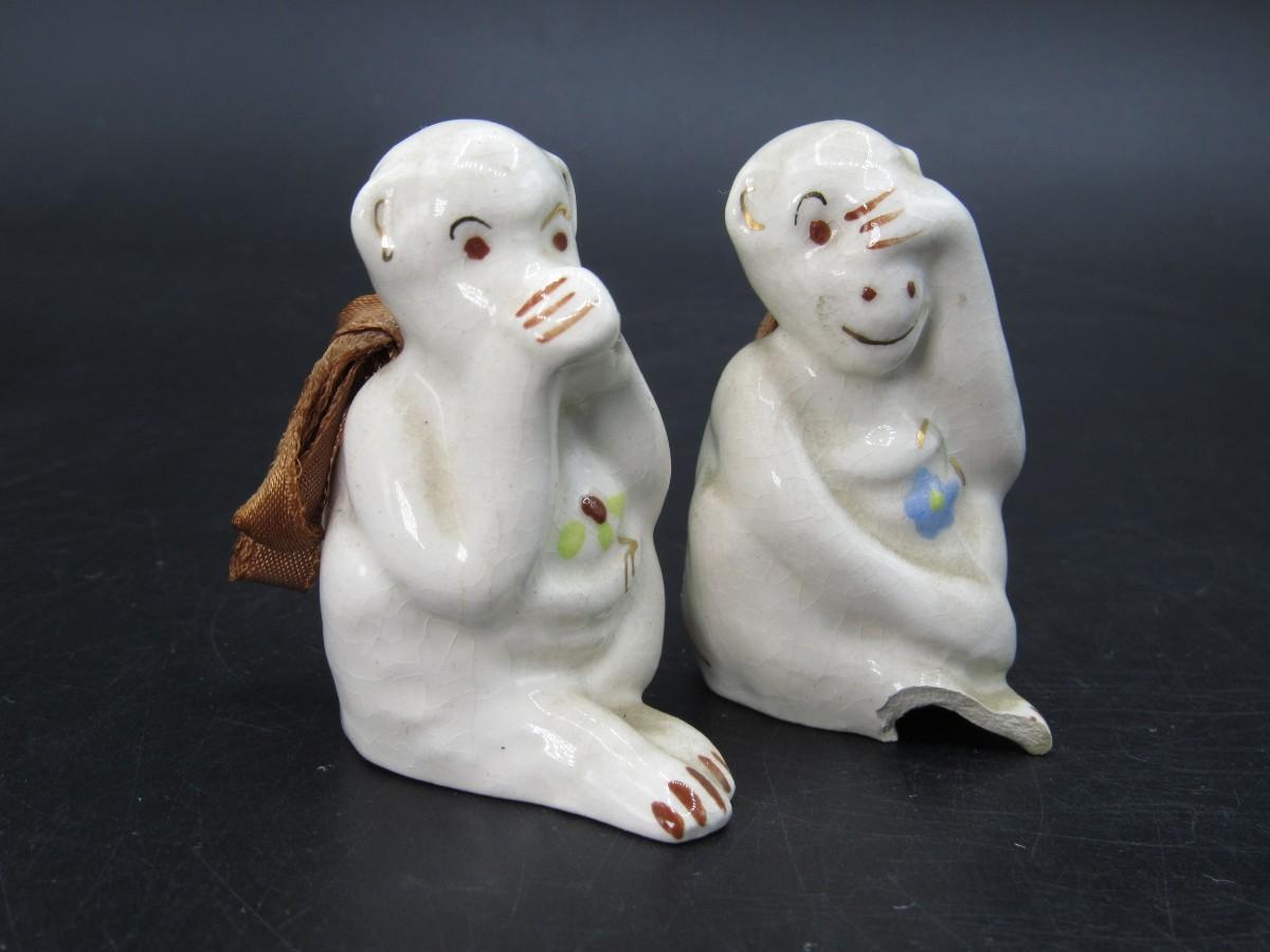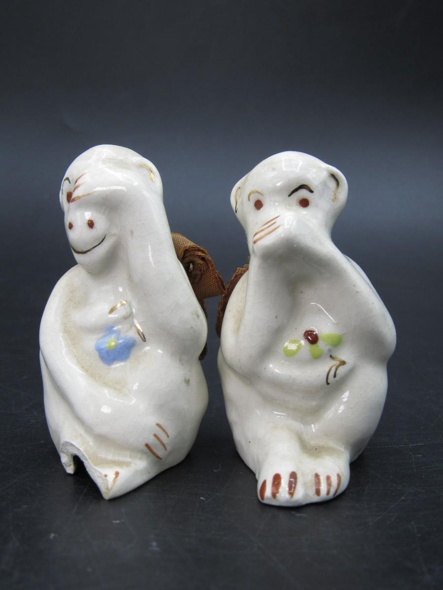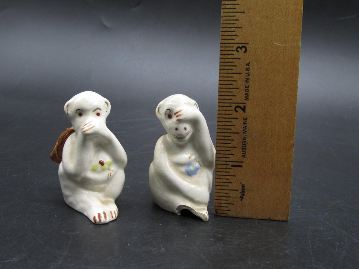 Vintage Ceramic See No Evil and Speak No Evil Monkey Ringers