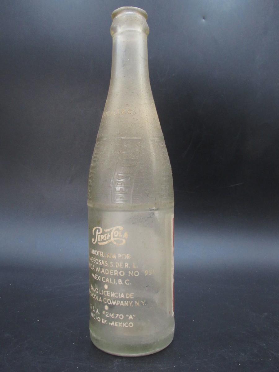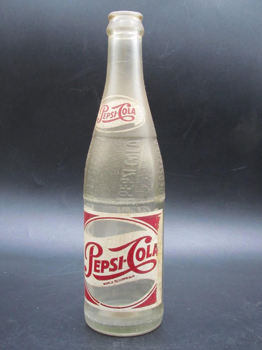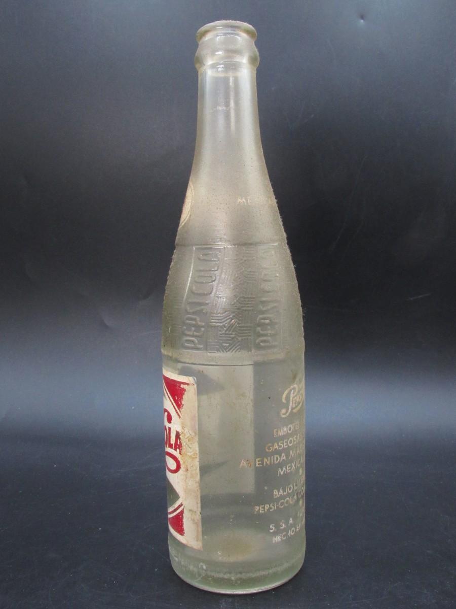Vintage Mexican Spanish Pepsi Cola Textured Printed Graphics on Glass Classic Bottle