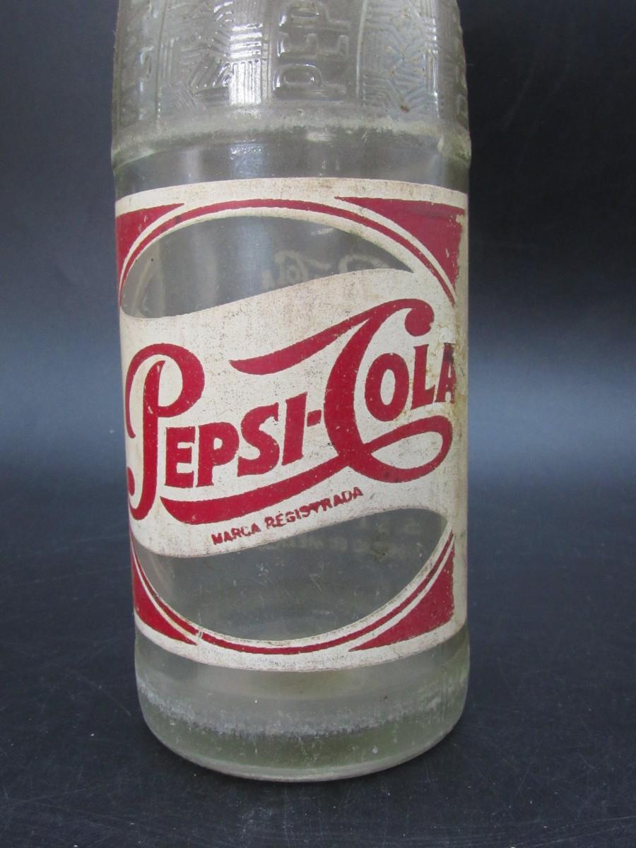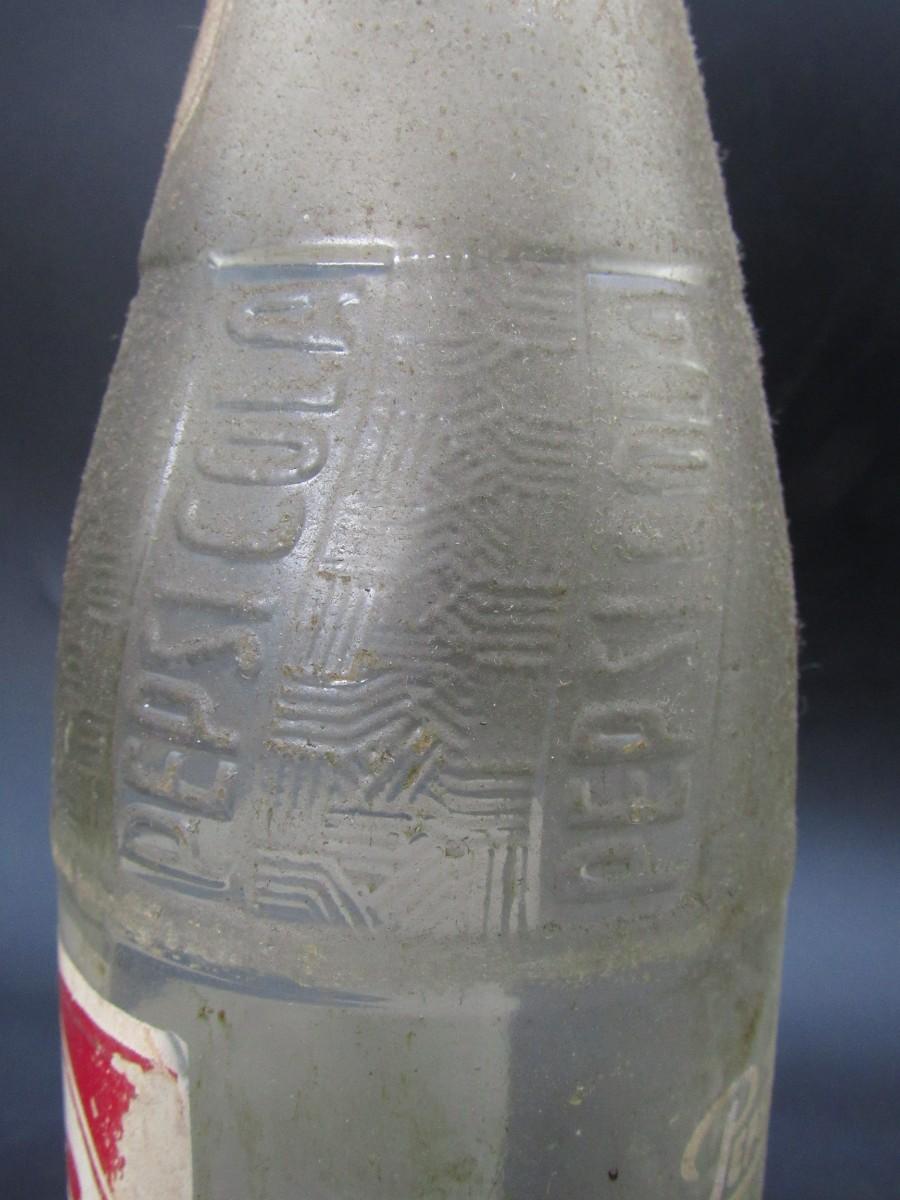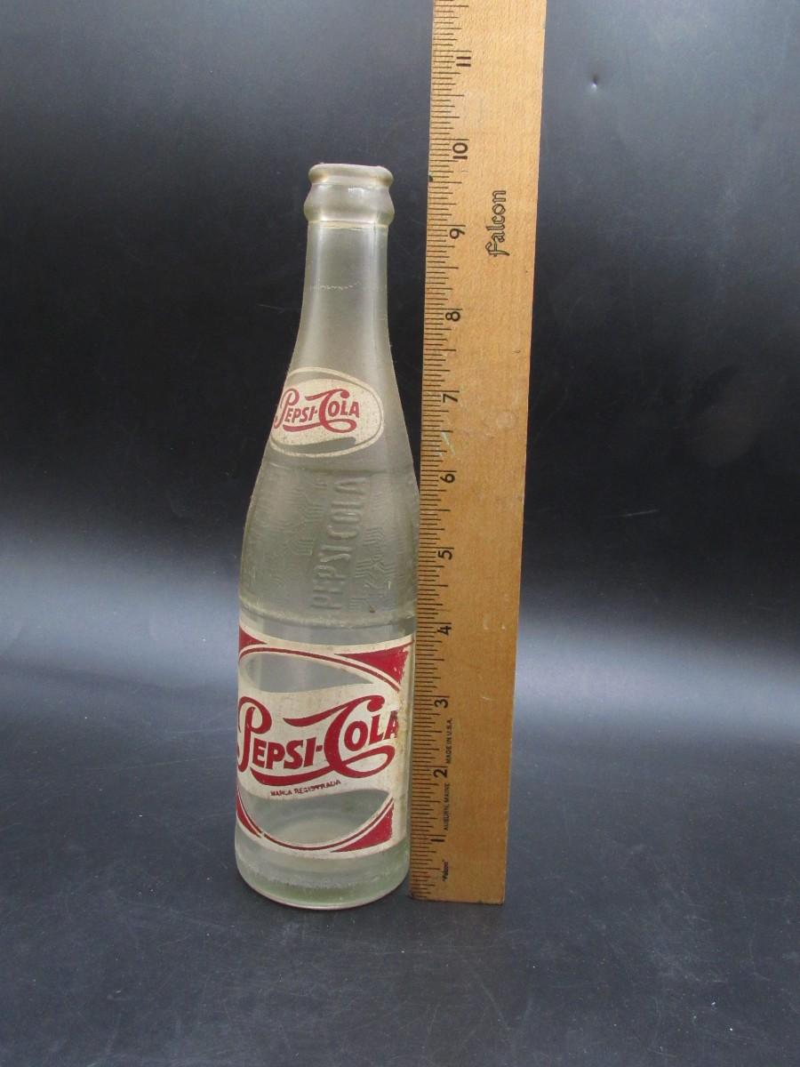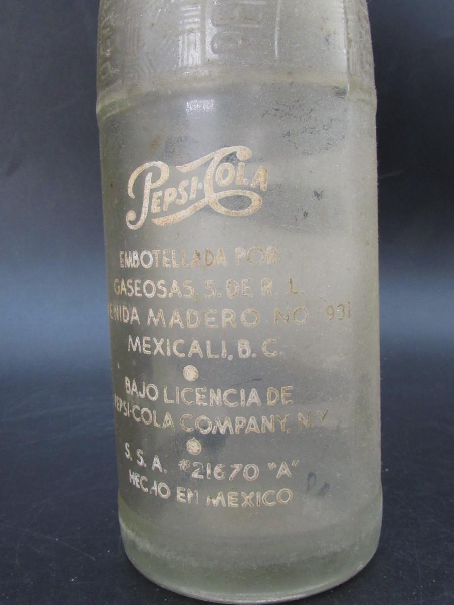 Vintage Mexican Spanish Pepsi Cola Textured Printed Graphics on Glass Classic Bottle