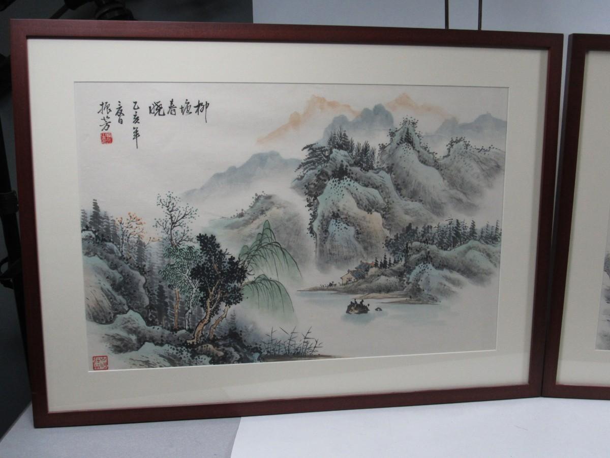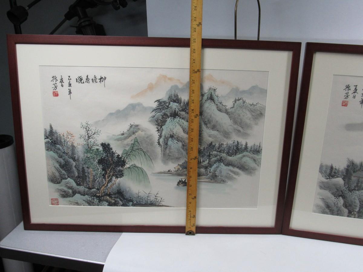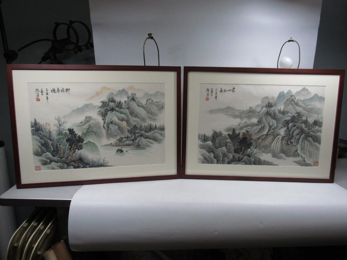 Lot of 2  - Chinese Ink & Watercolor Landscape Painting signed framed