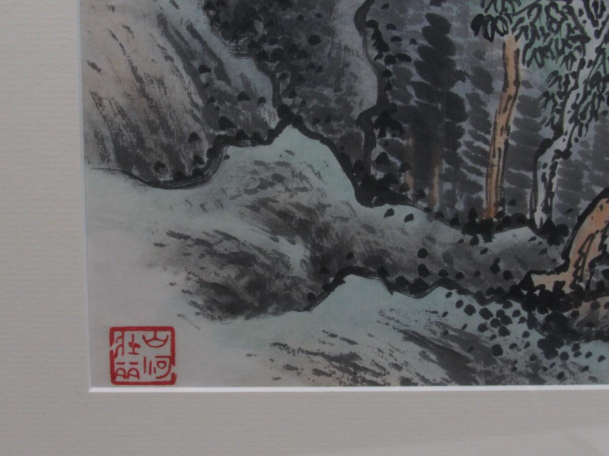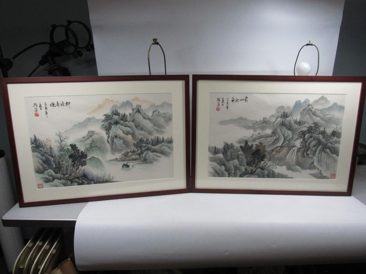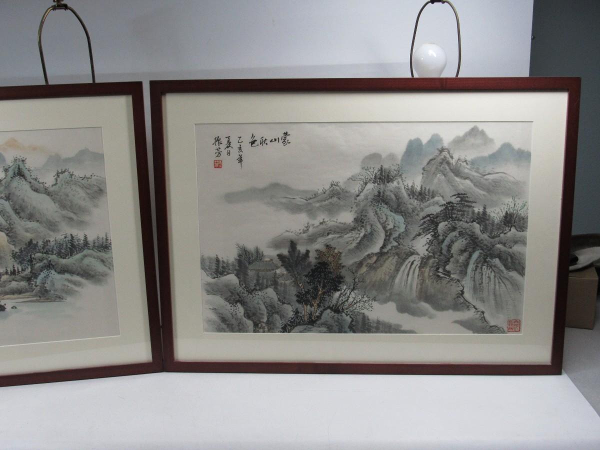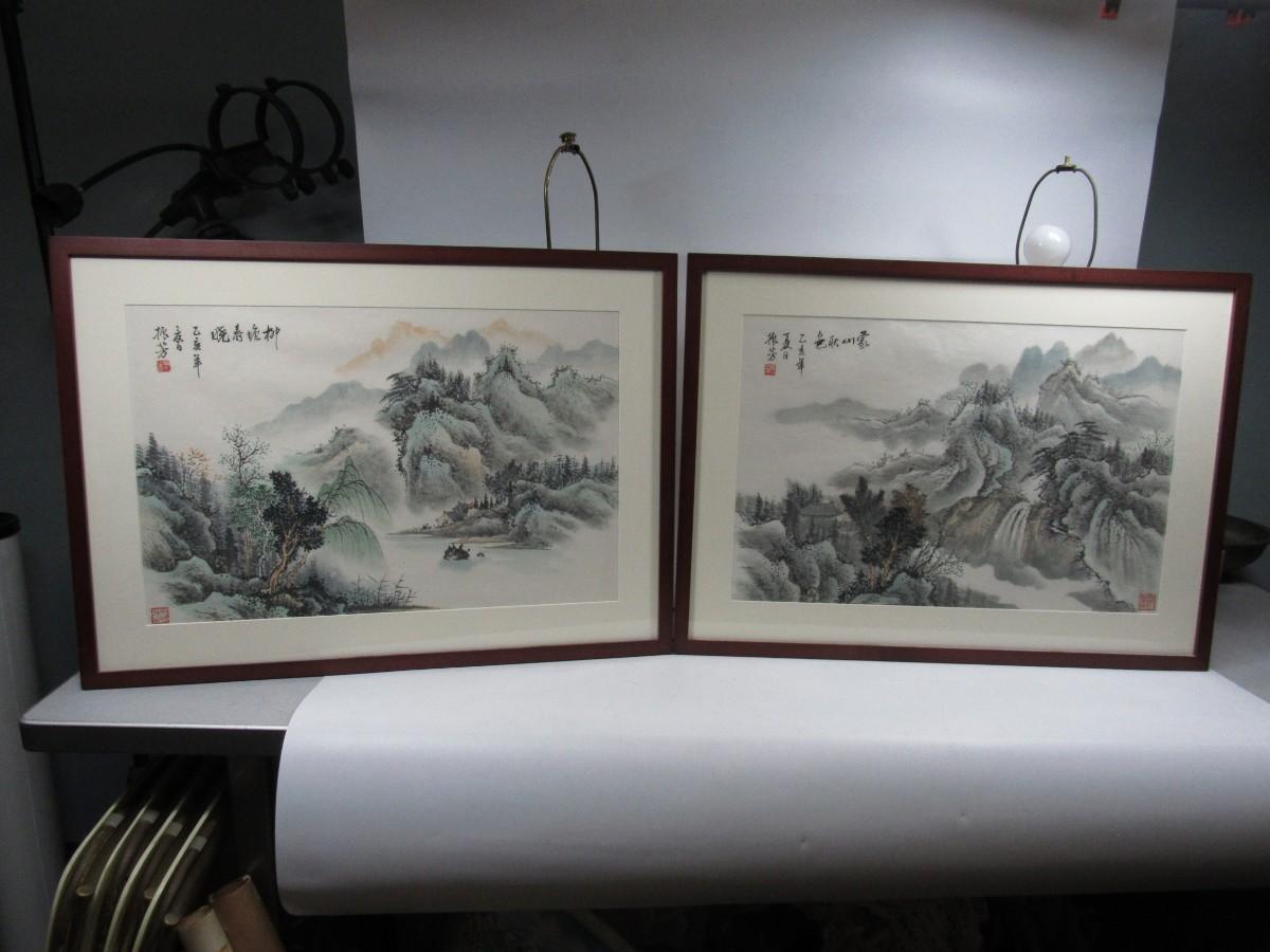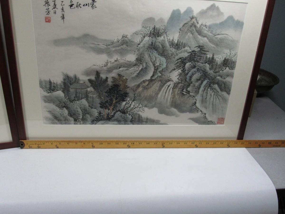 Lot of 2 - Chinese Ink & Watercolor Landscape Painting signed framed
