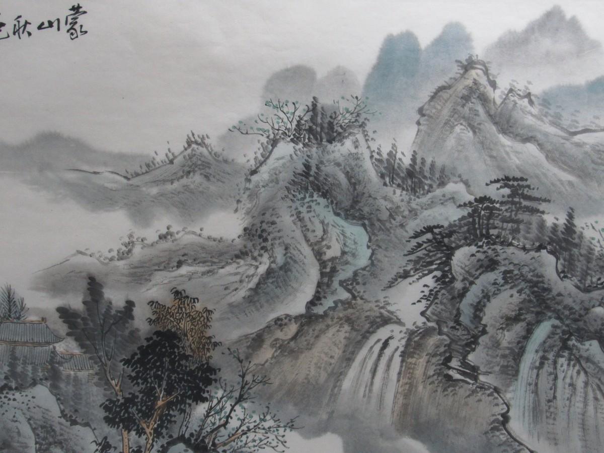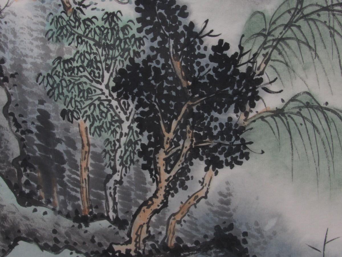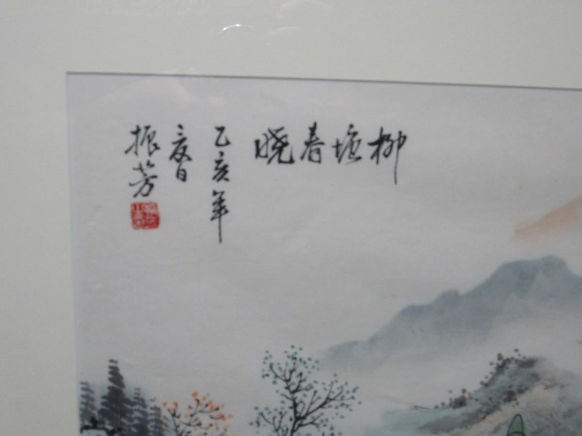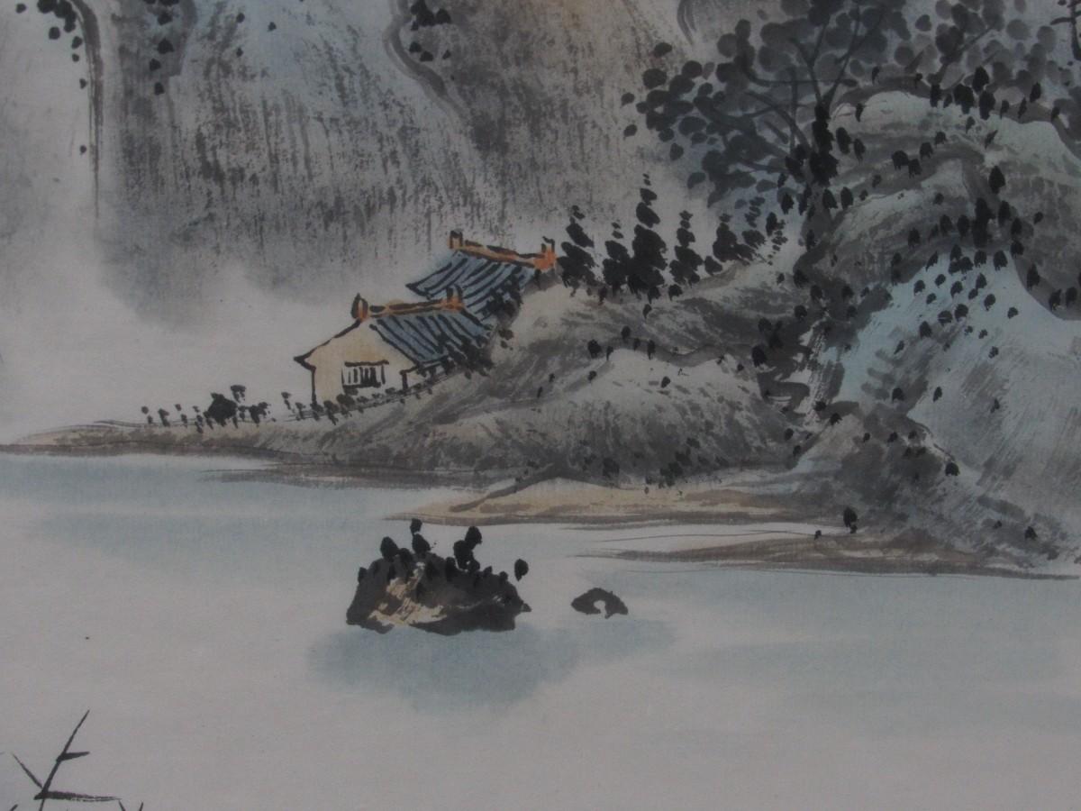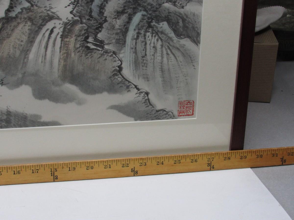 Lot of 2 - Chinese Ink & Watercolor Landscape Painting signed framed