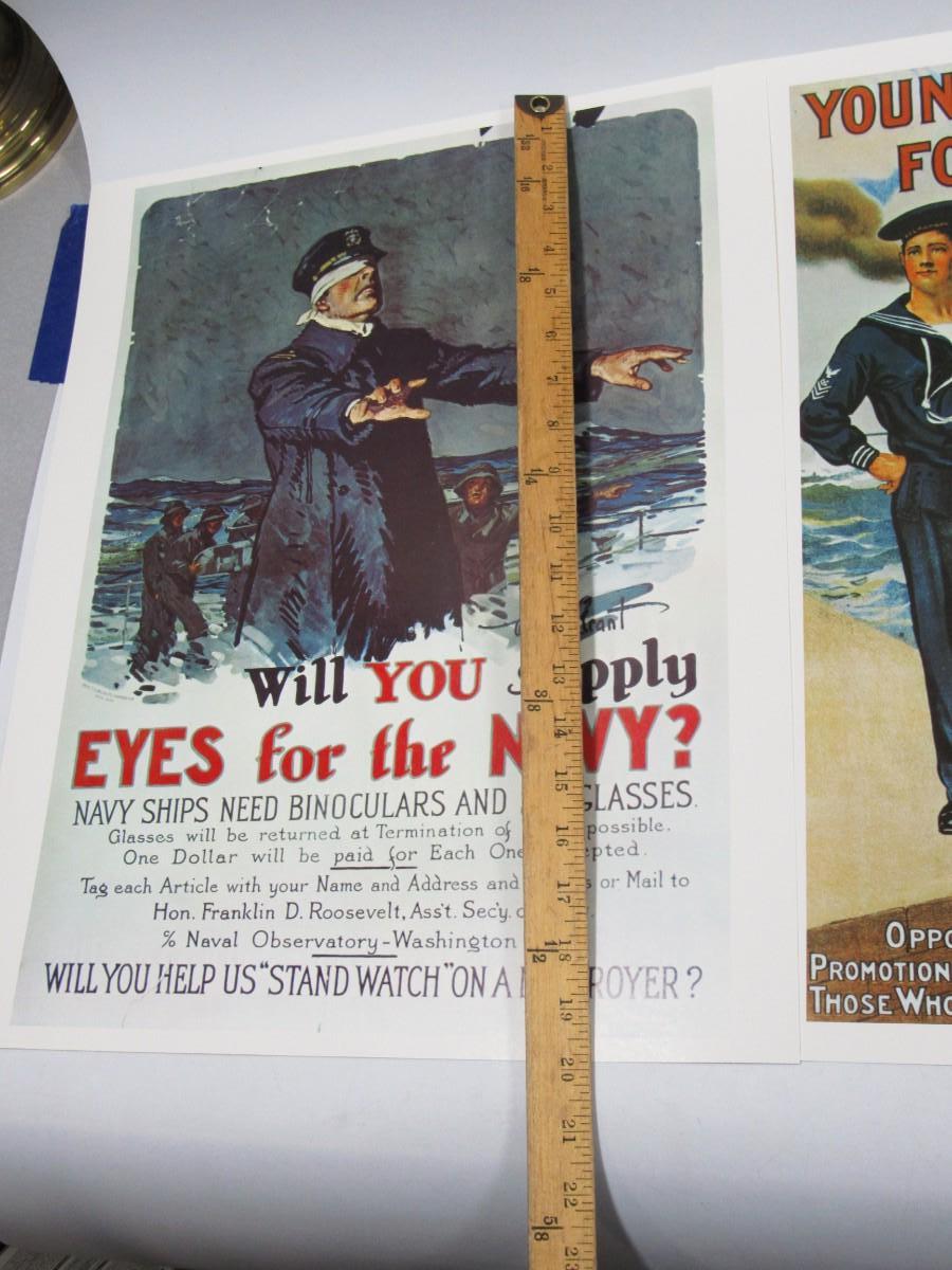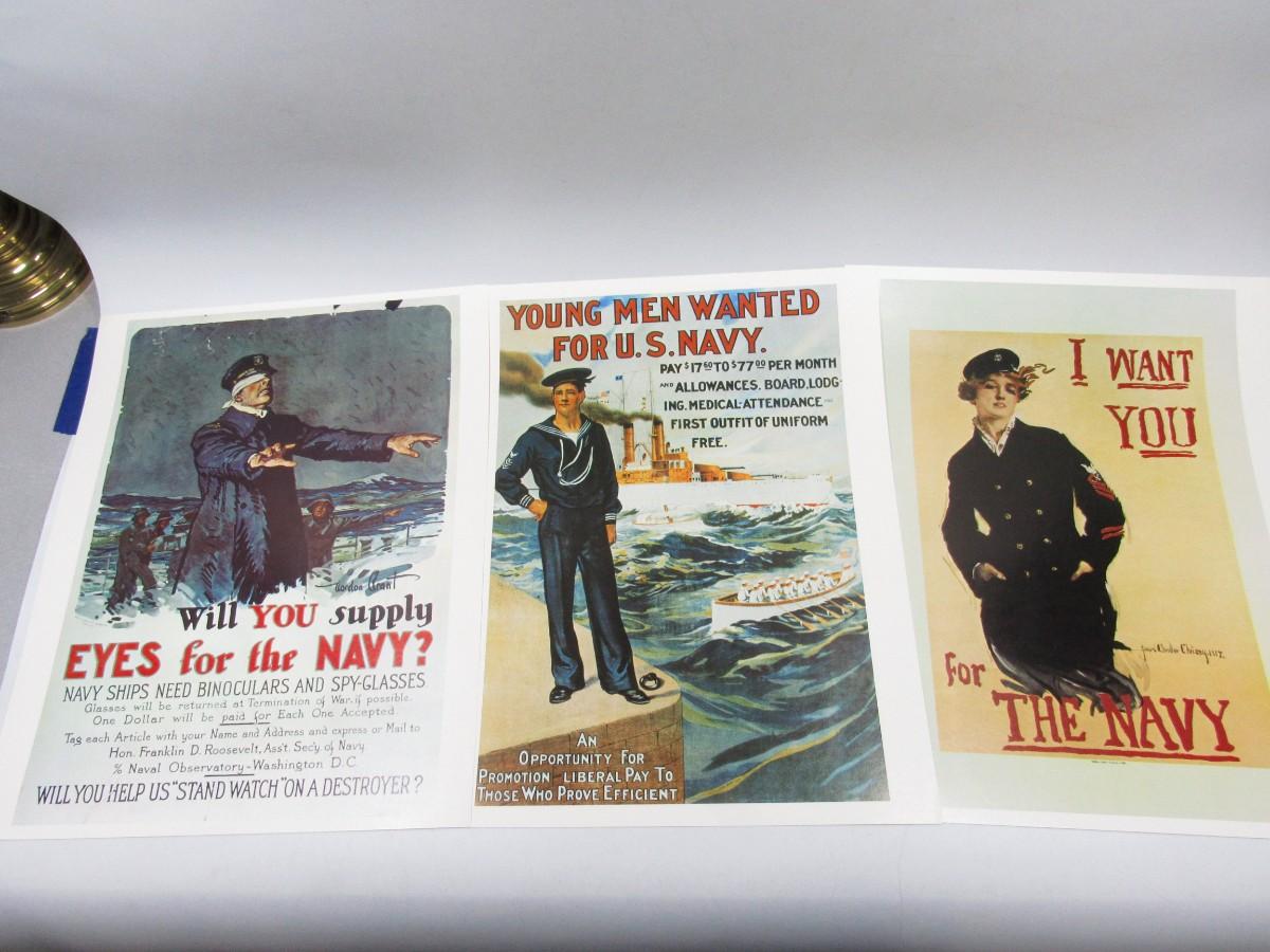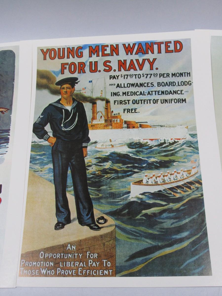 Lot of Reproduction Vintage U.S. Navy Military Posters Young Men Wanted for the Navy & More