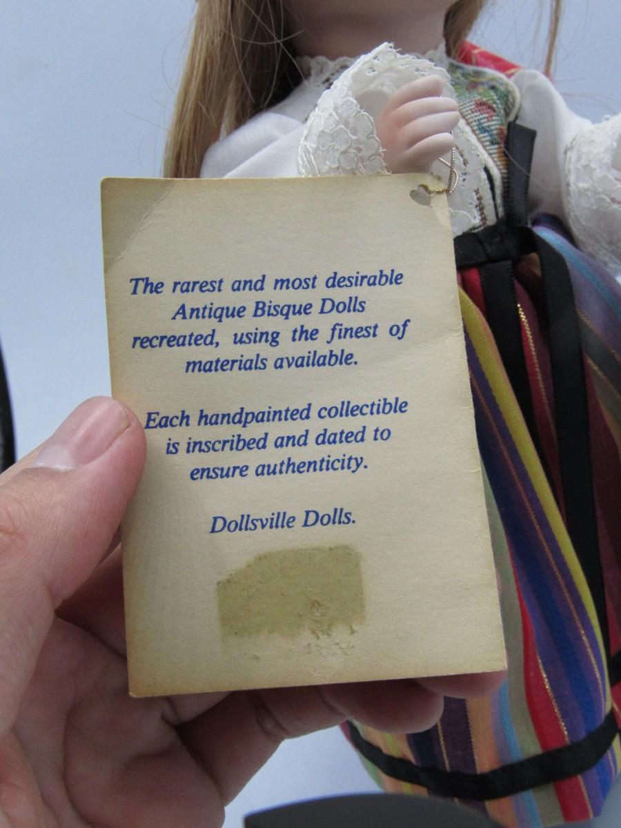 The original tag is still attached to the doll, there is no damage and is in overall good collectible or displayable condition. Check pictures for more details and sizing.