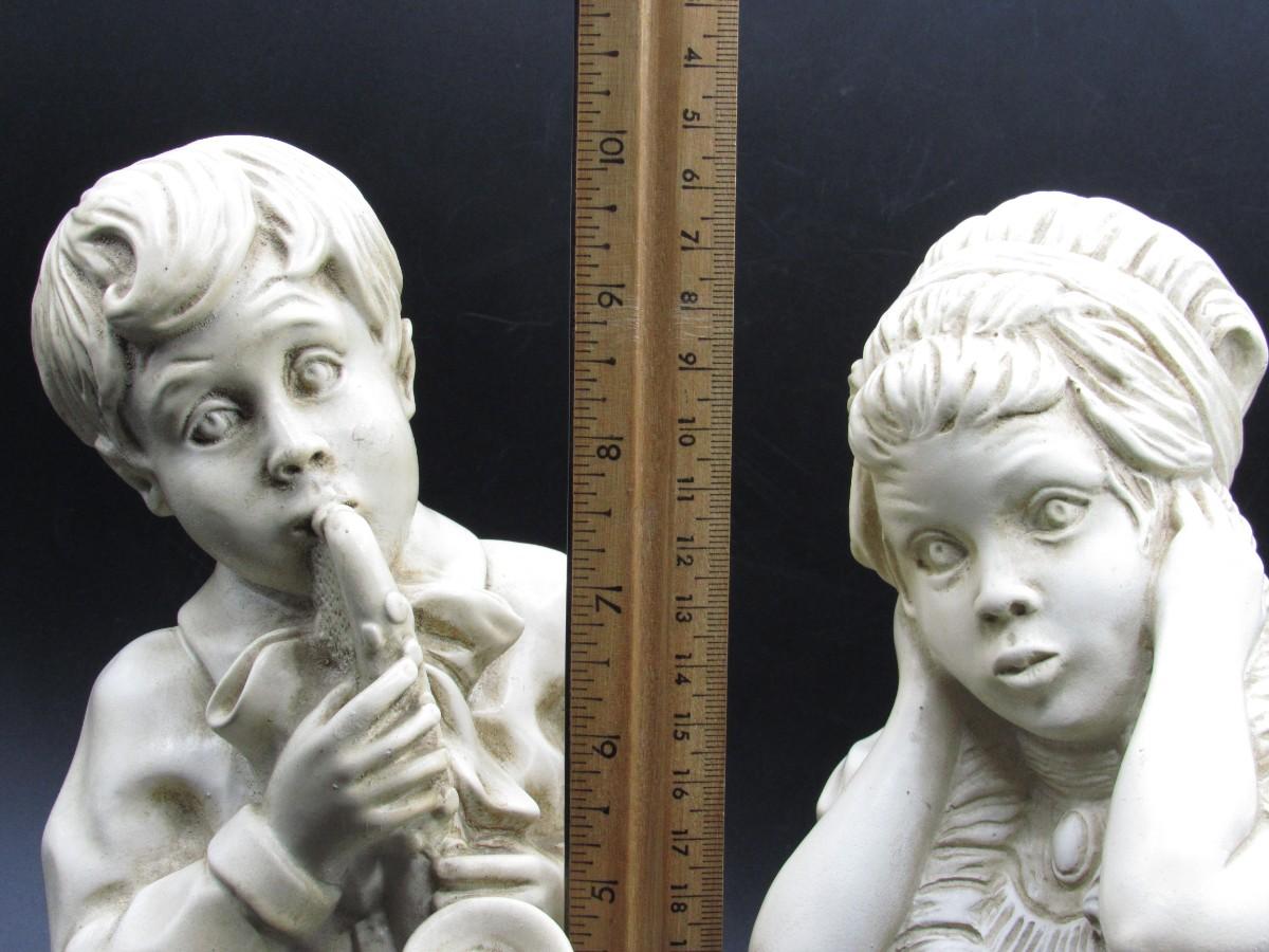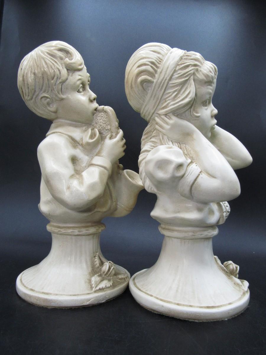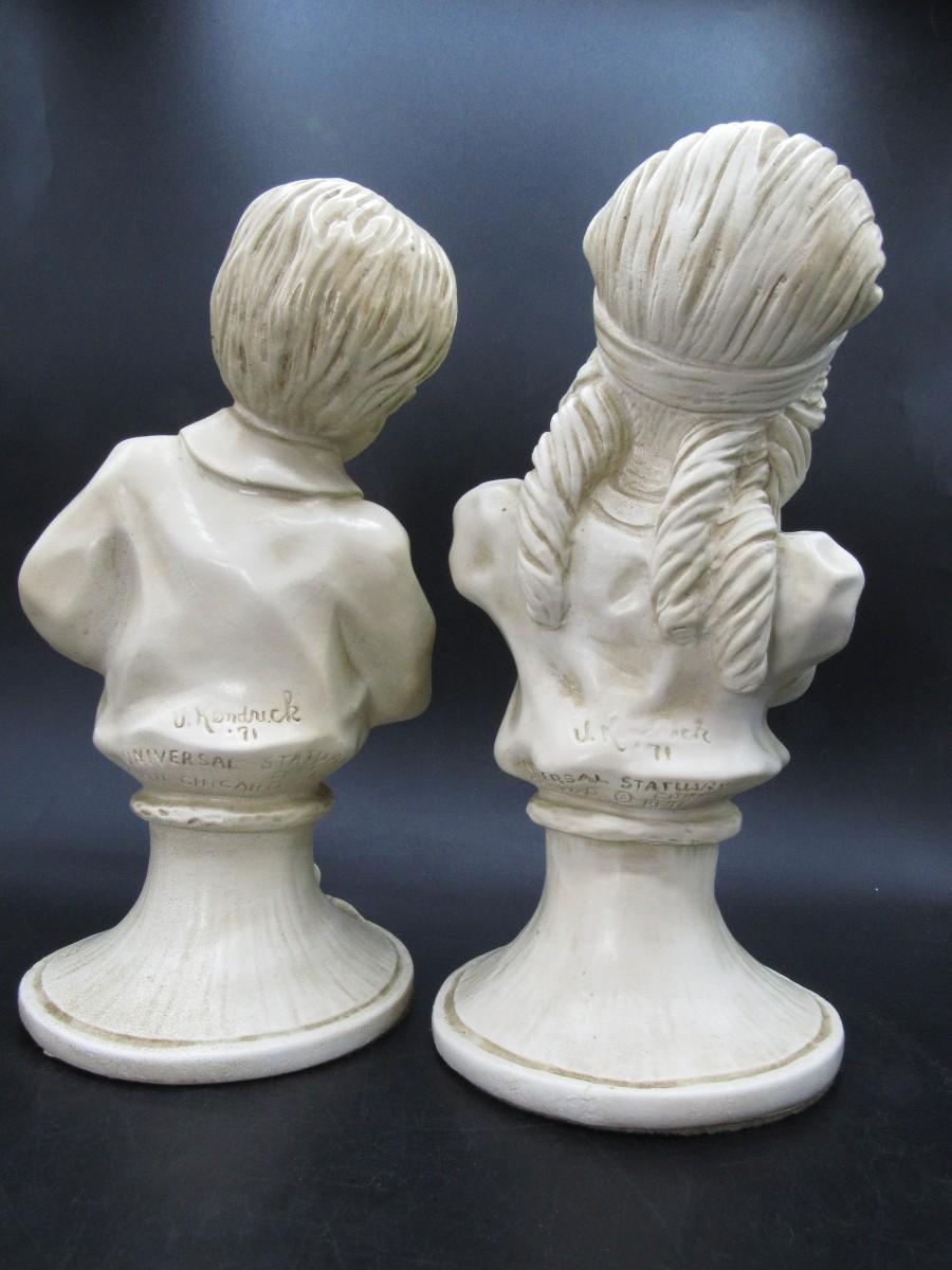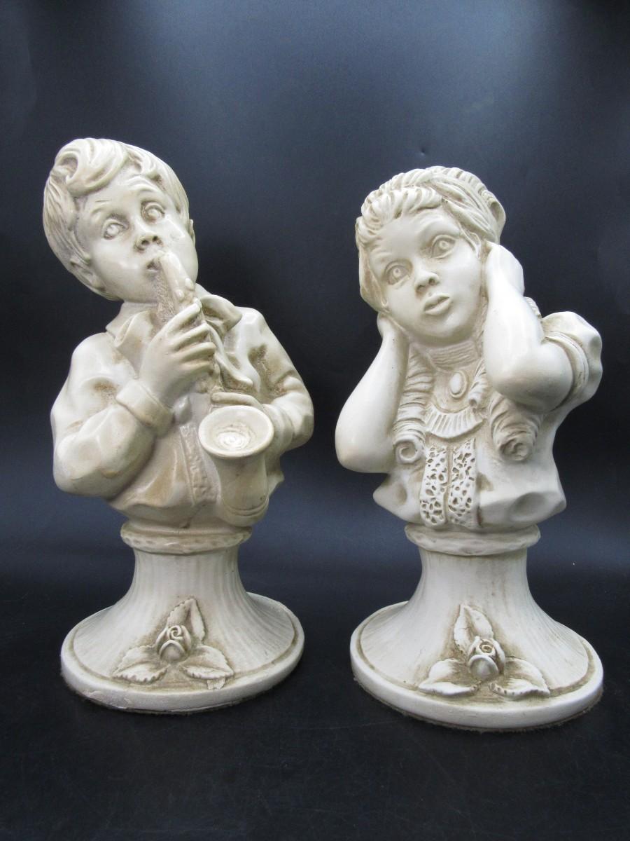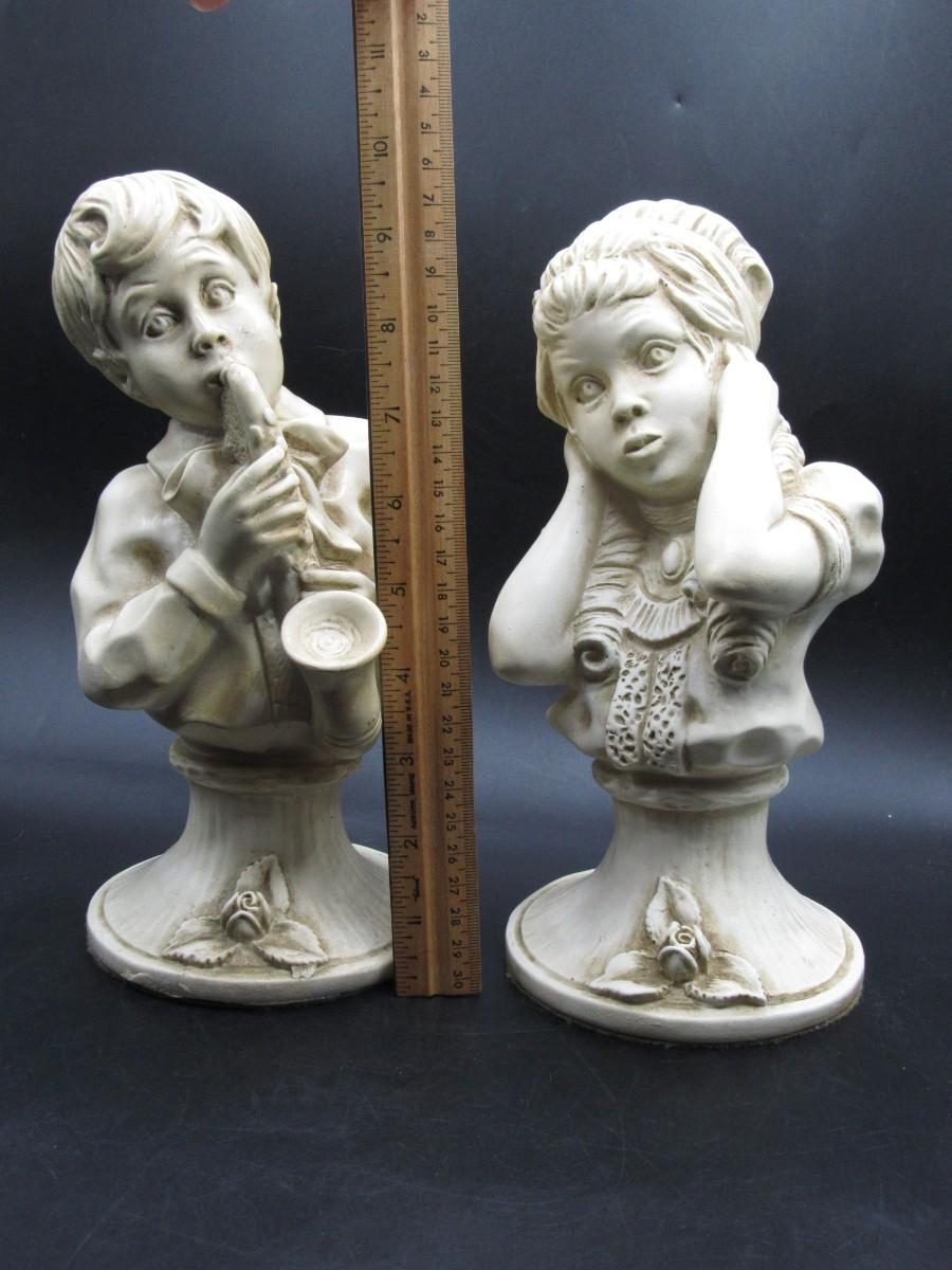 Vintage J. Kendrick Universal Statuary Corp. Chicago Girl Covering Ears & Boy Playing Saxophone Bust Molds