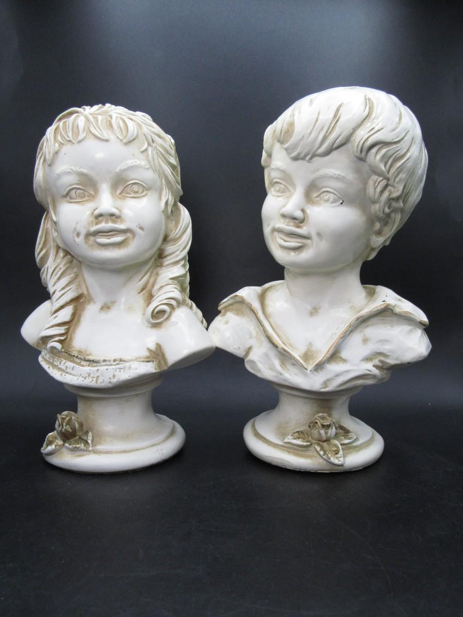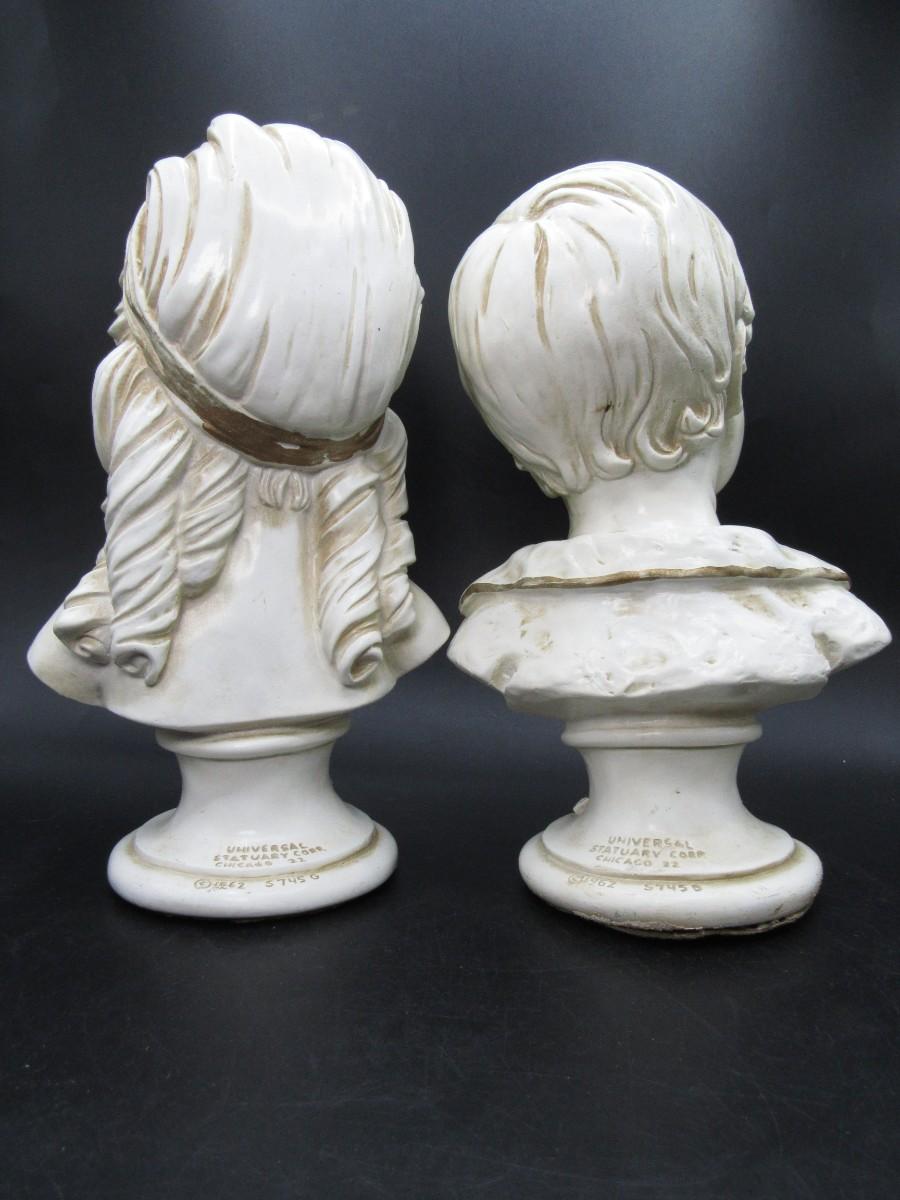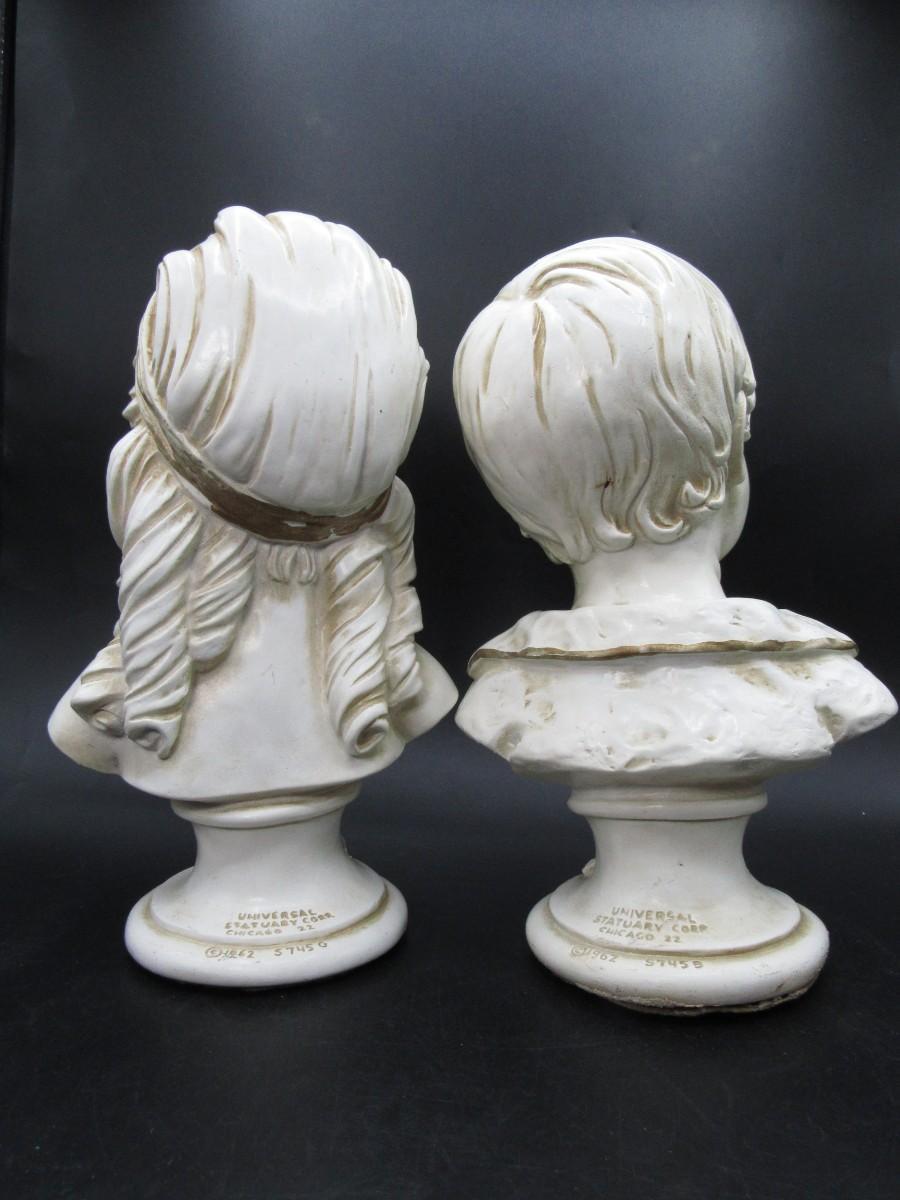 Pair of Vintage Universal Statuary Chicago Mid Century Girl & Boy Bust Head Statue