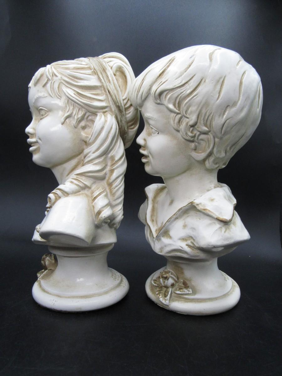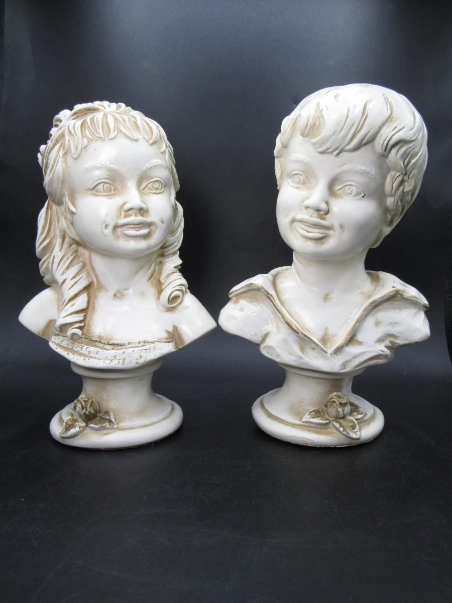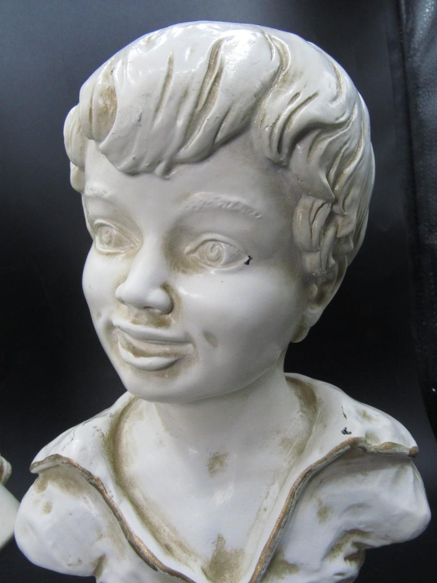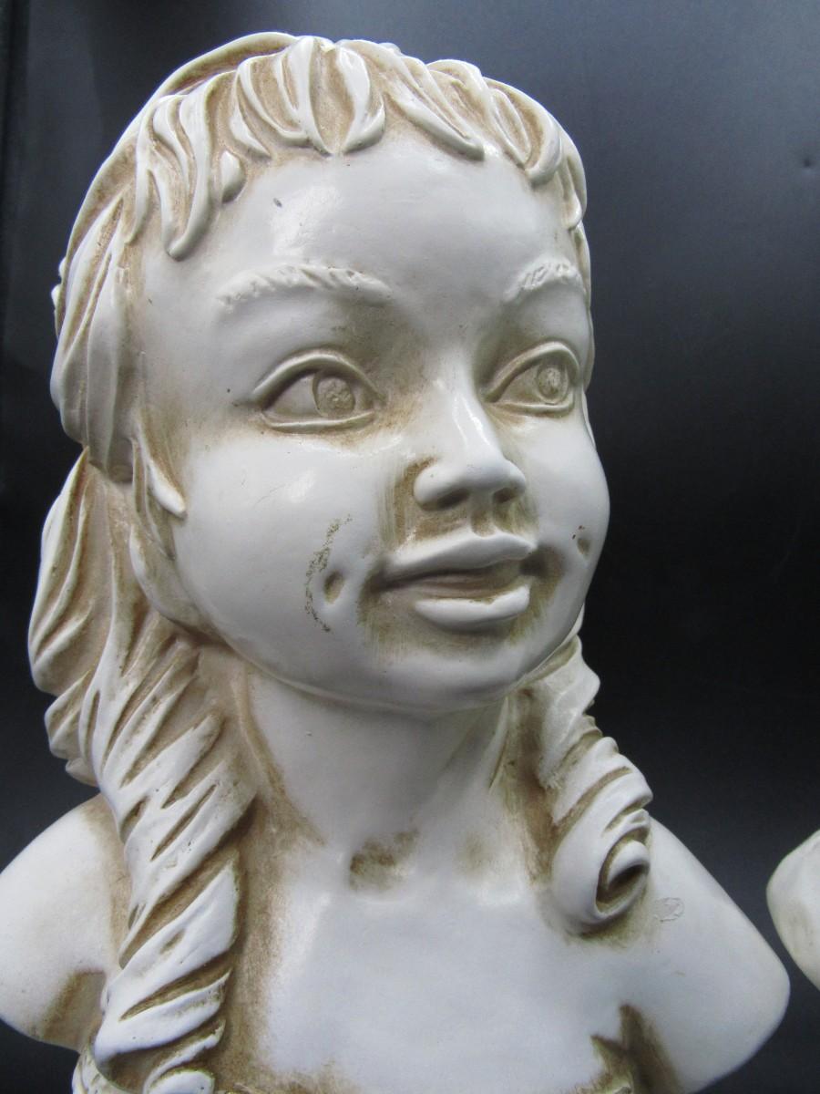 Pair of Vintage Universal Statuary Chicago Mid Century Girl & Boy Bust Head Statue