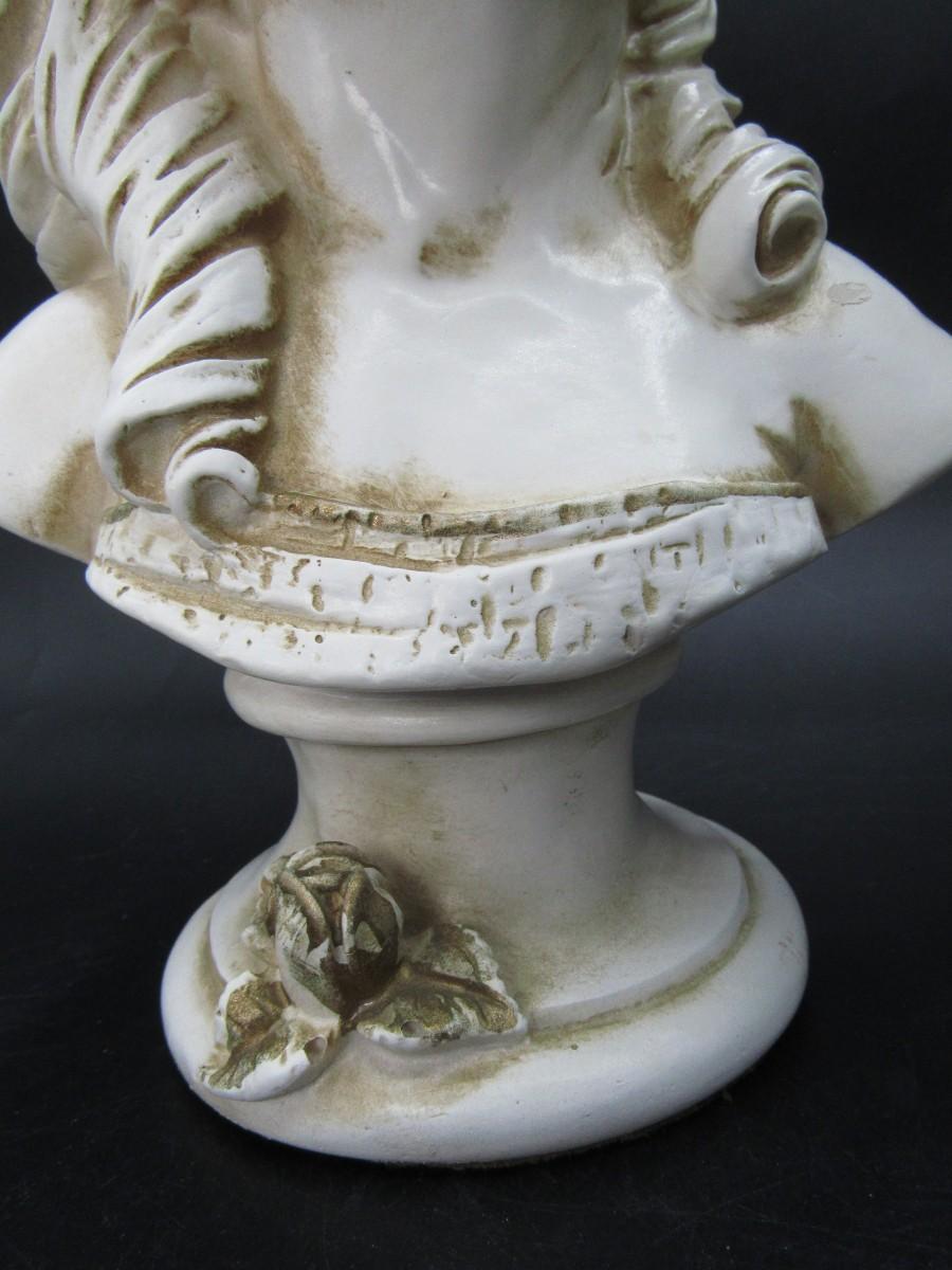 There is no damage to the bust and is in overall good collectible or displayable condition. Check pictures for more details and sizing.