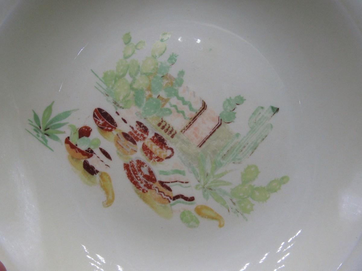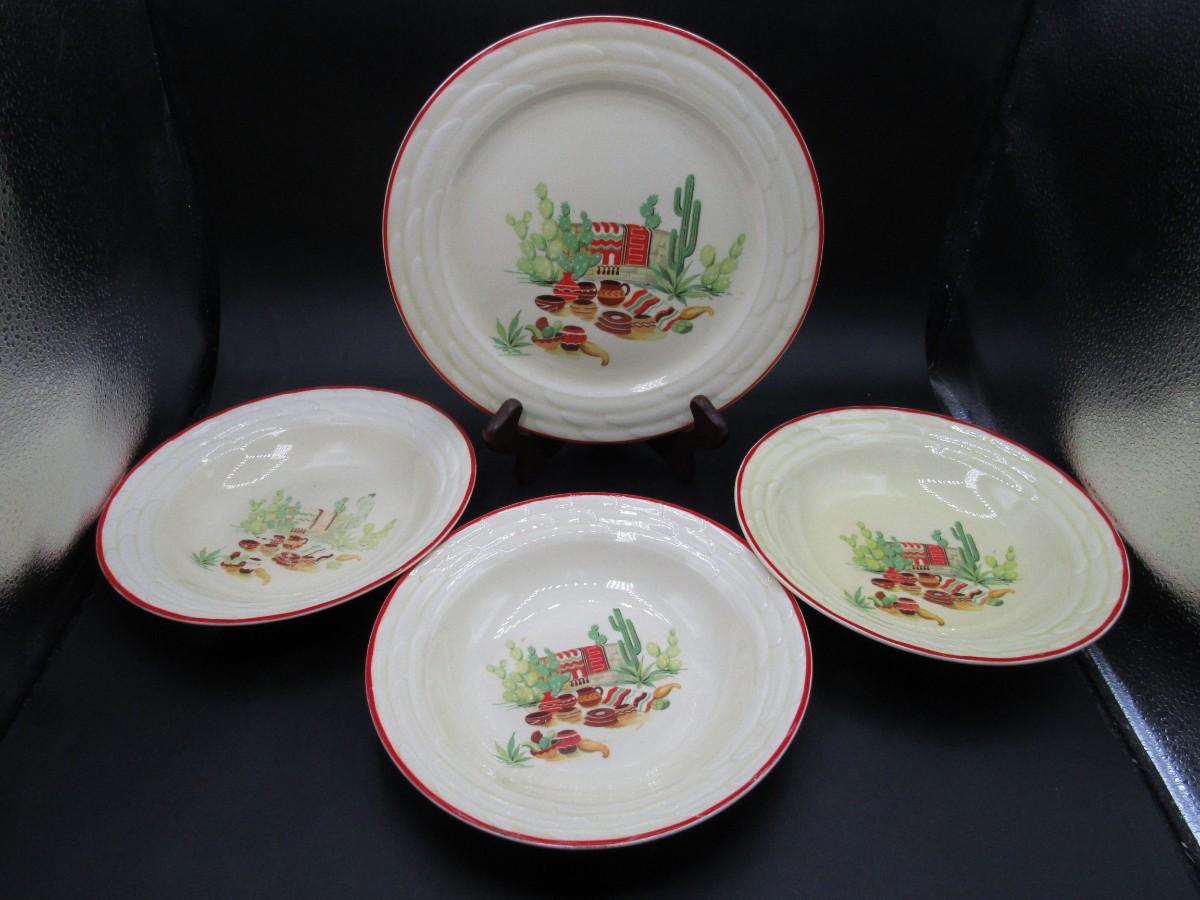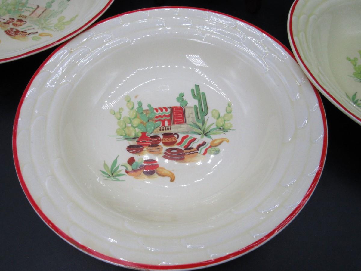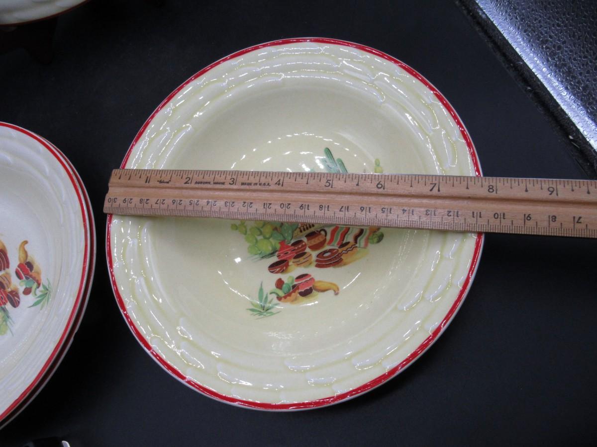 Mexican pottery bowls set of 4, Red Trim, Flowering Cactus, Pots, Desert, Southwest, Vintage
