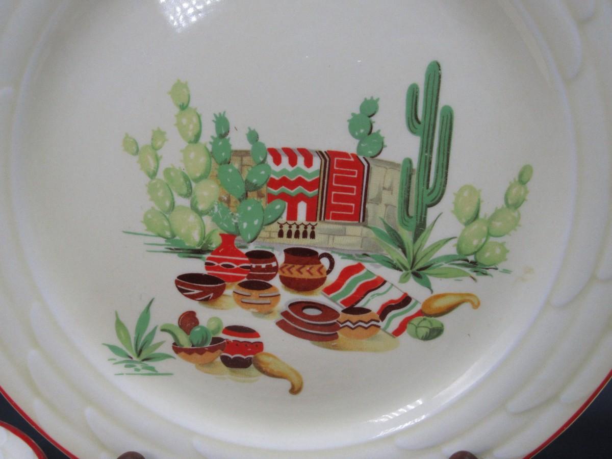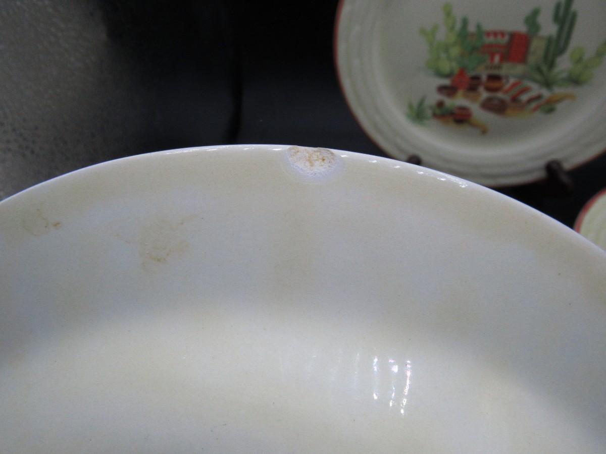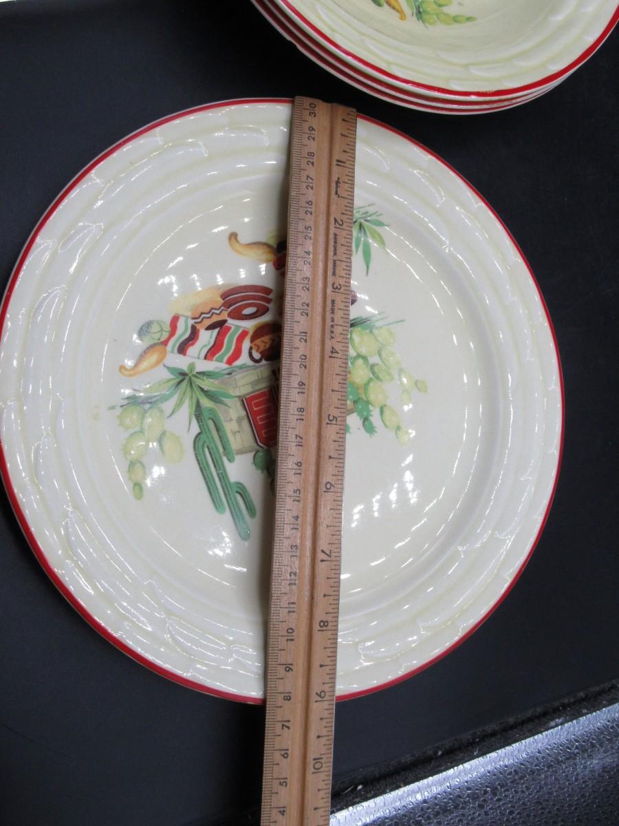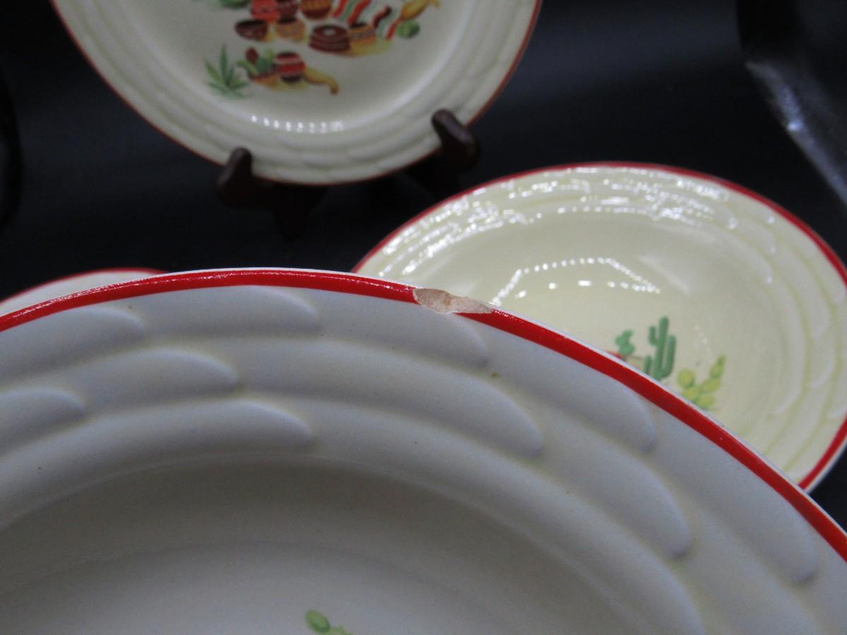 Mexican pottery bowls set of 4, Red Trim, Flowering Cactus, Pots, Desert, Southwest, Vintage