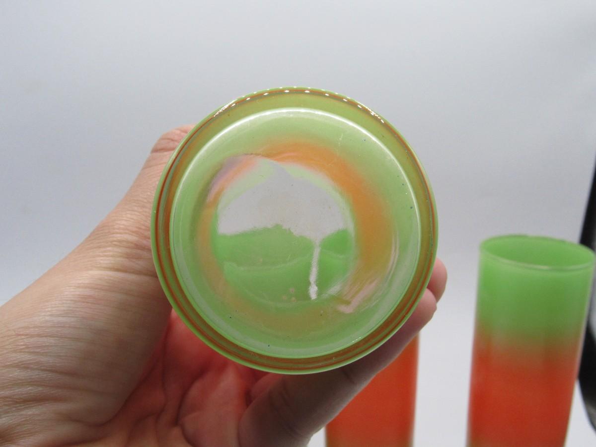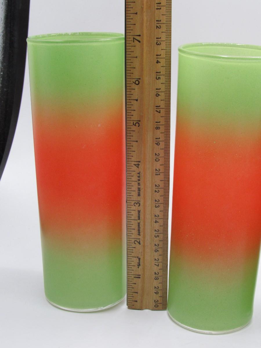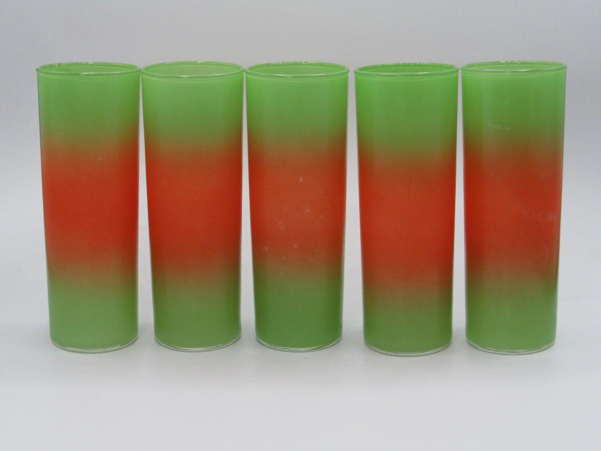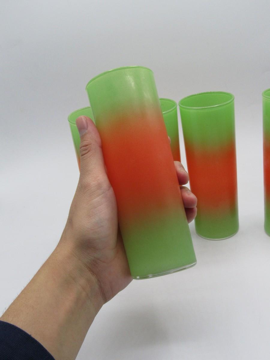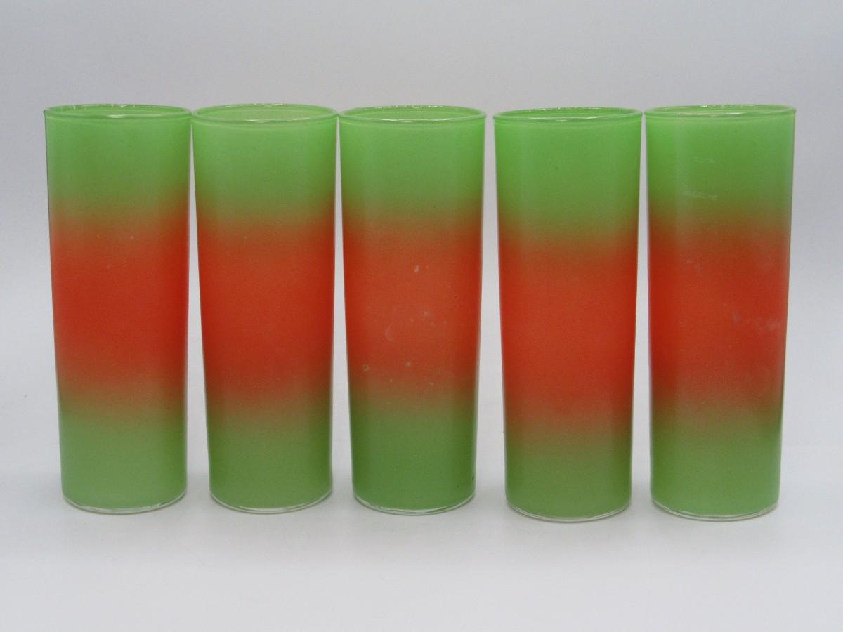 Vintage MCM Blendo Glass Orange & Green Ombre Beverage Barware Set of 5