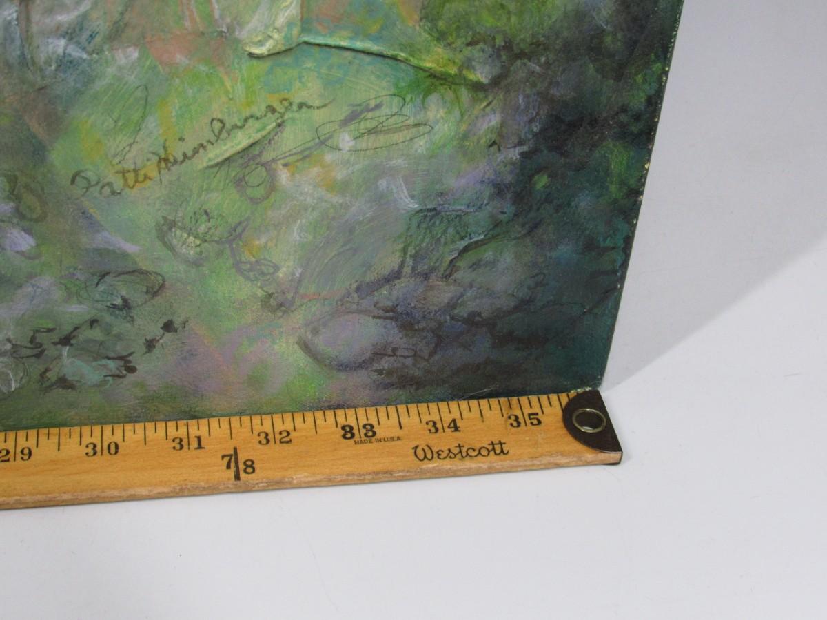 There is no damage to the artwork and is in good collectible or displayable condition. Check pictures for more details and sizing.