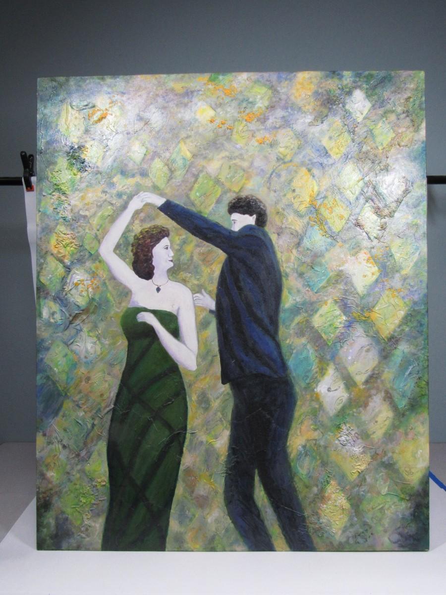 Large Original Artwork by Patti Heimburger Multi Textural Medium Dancing Couple Piece