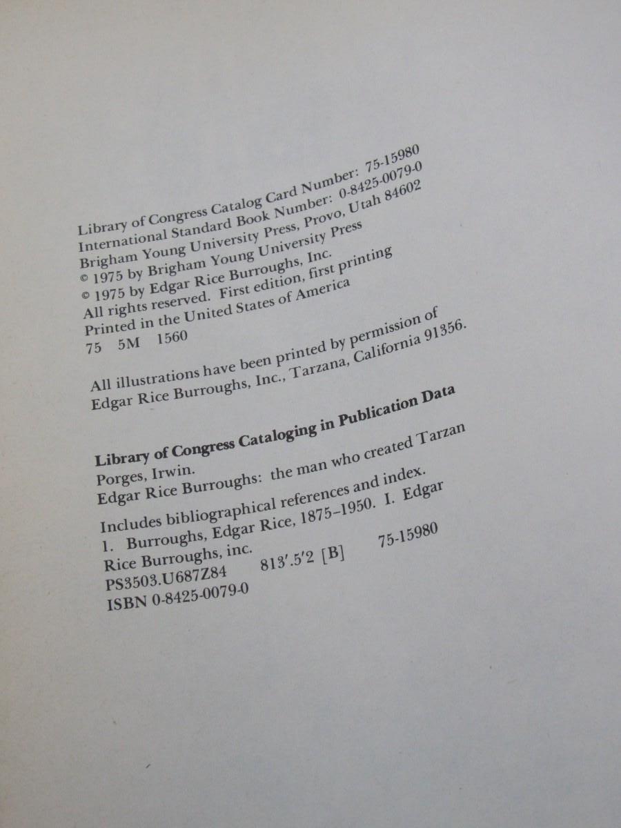 Edgar Rice Burroughs The Man Who Created Tarzan Irwin Porges 1975 Vintage Hardcoverbook