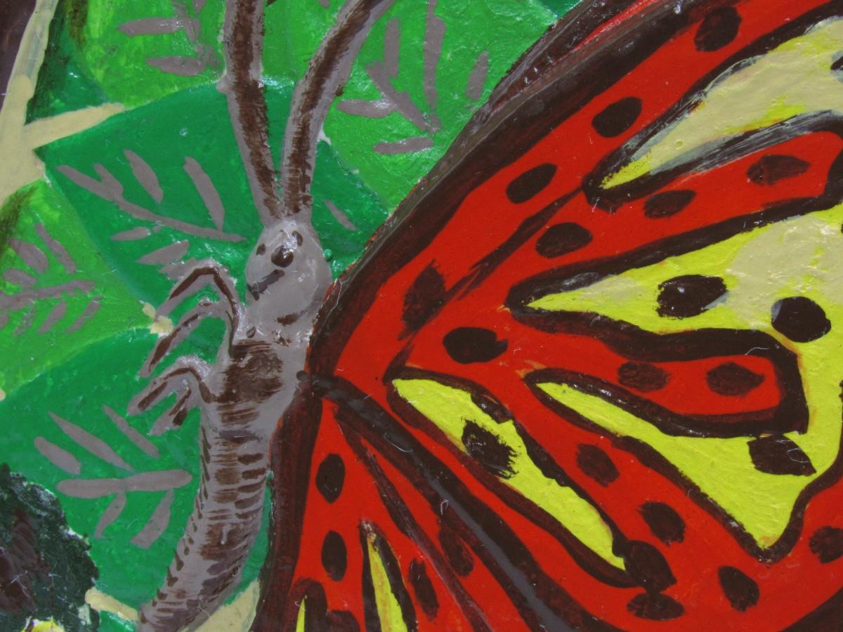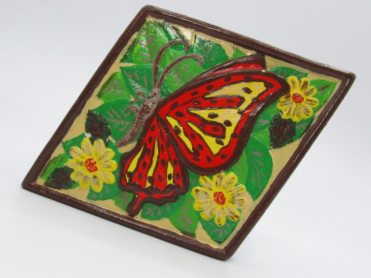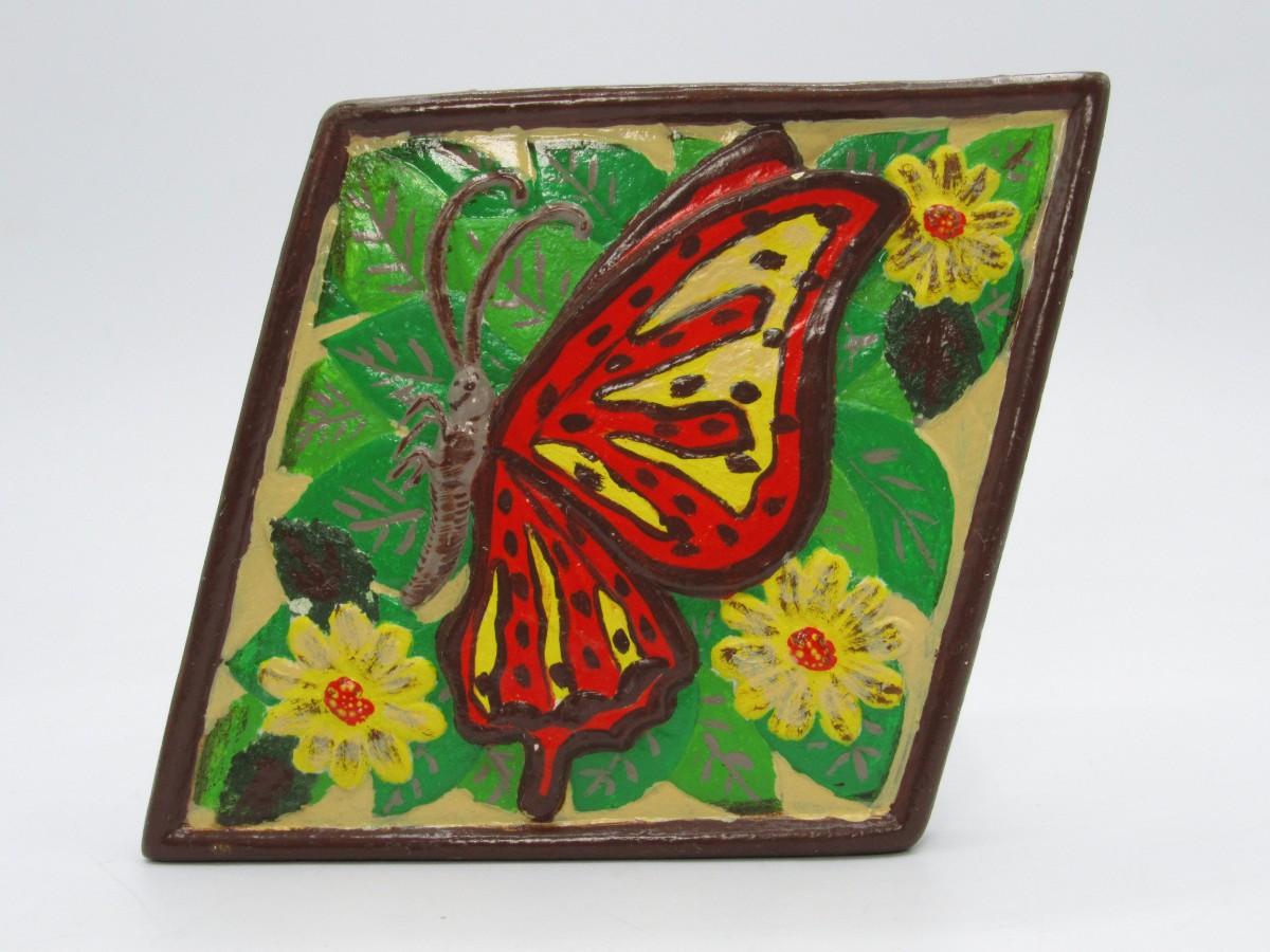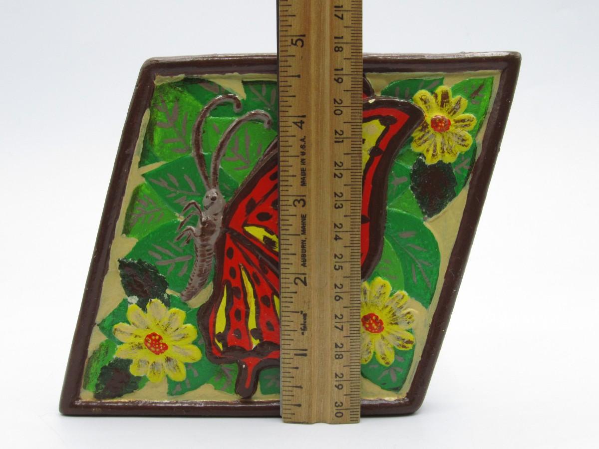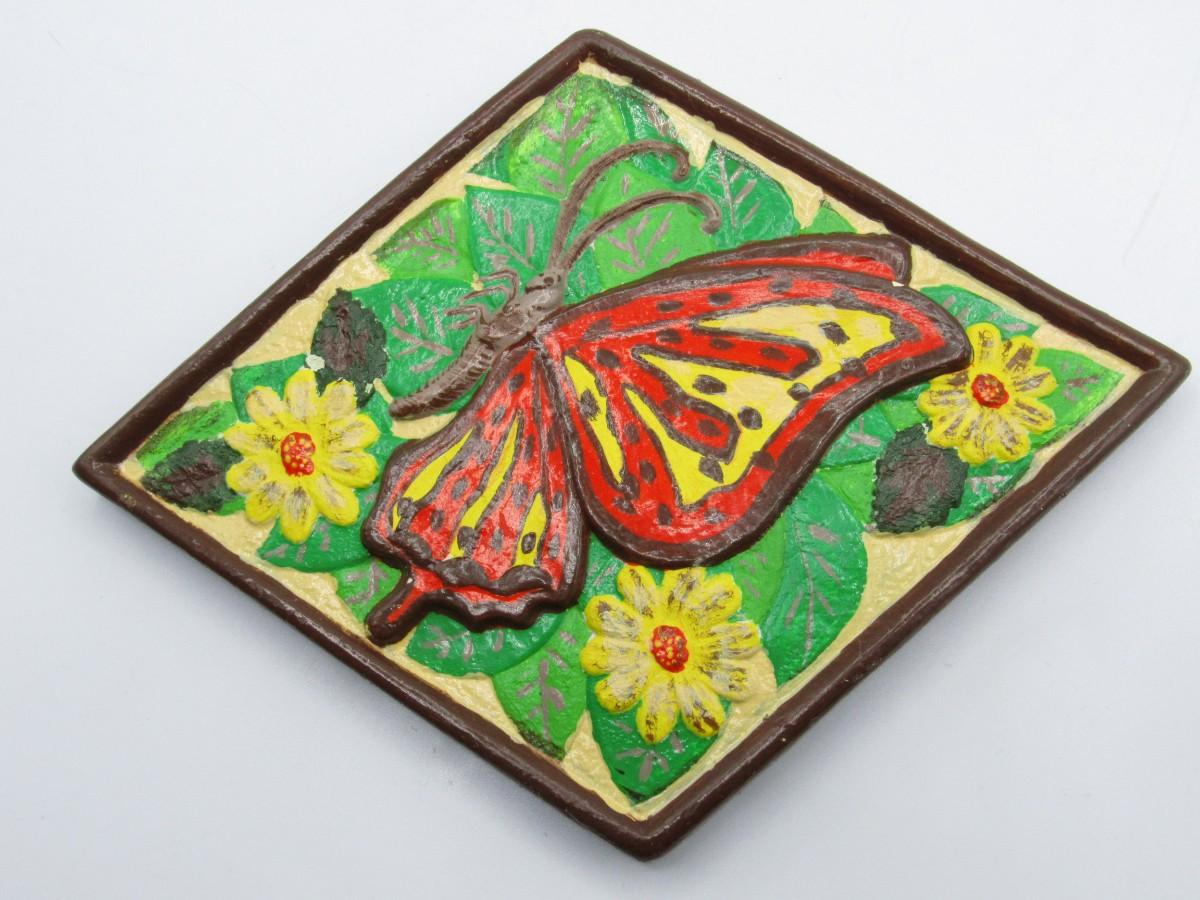 Vintage Groovy Butterfly Diamond Shaped Hanging Ceramic Art