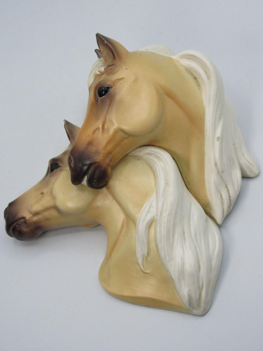 Vintage Norcrest Double Head Wall Plaque Decor Palomino Wild Horses Country