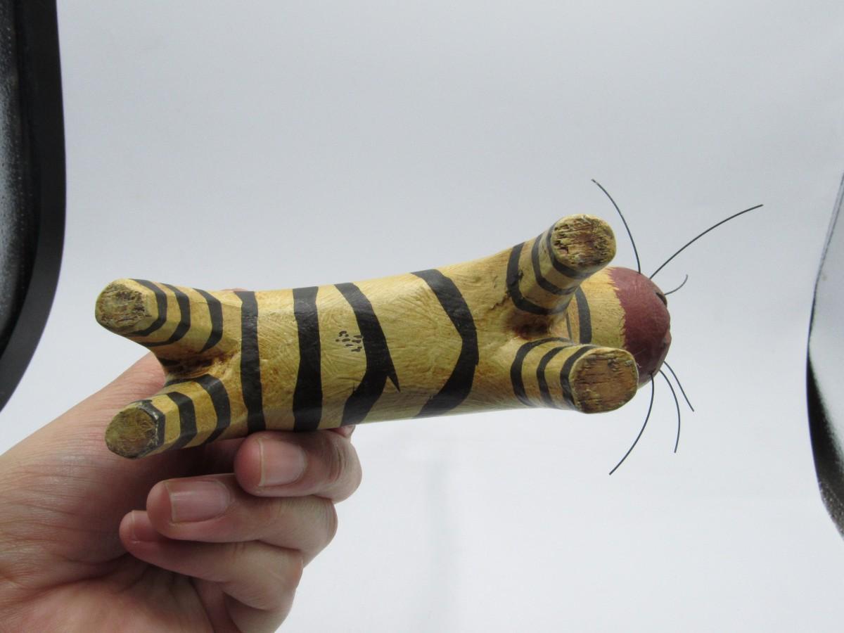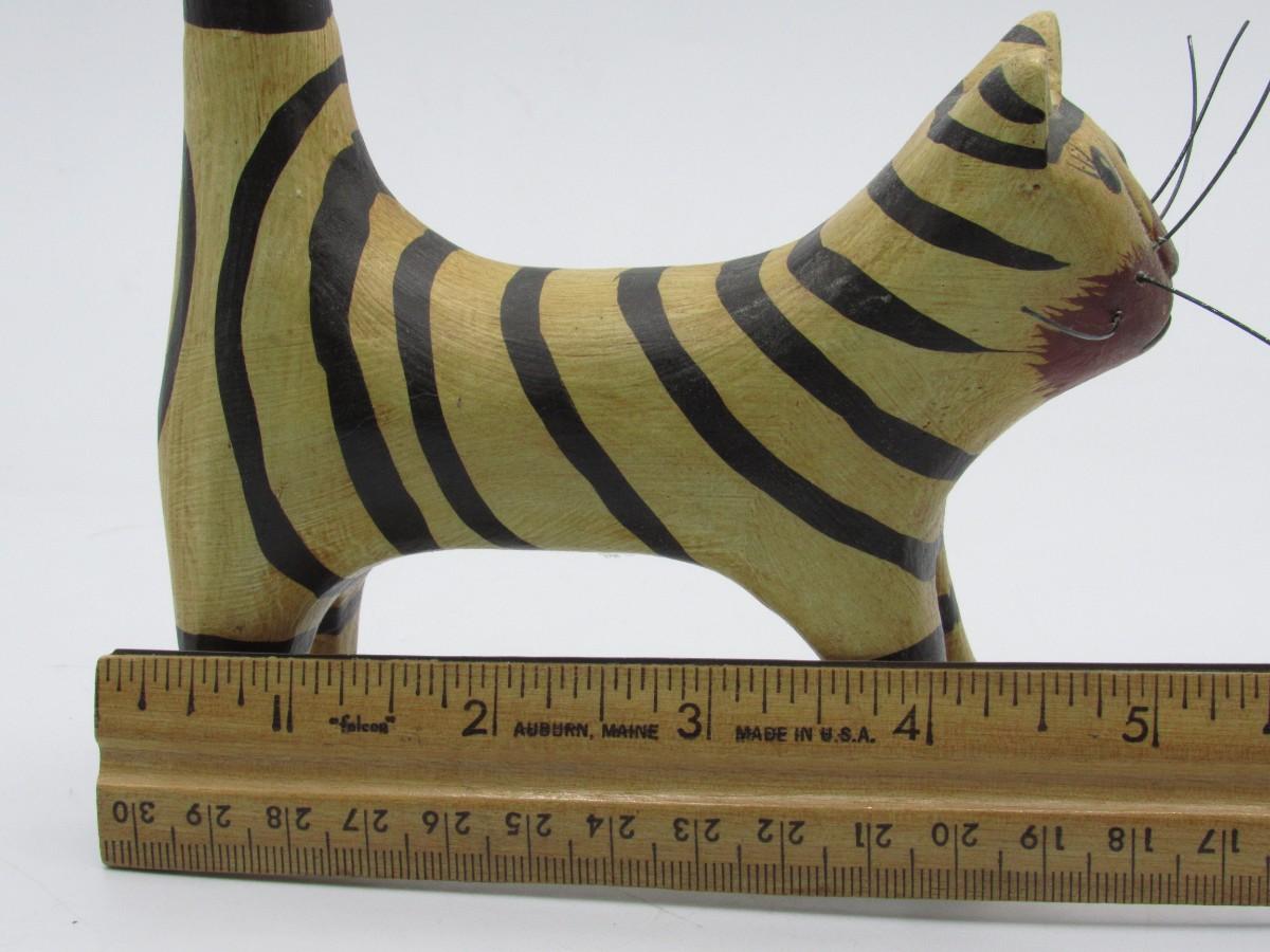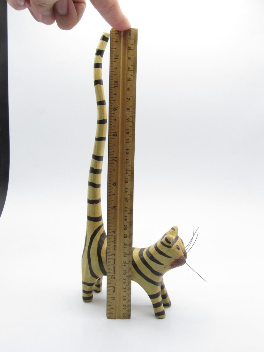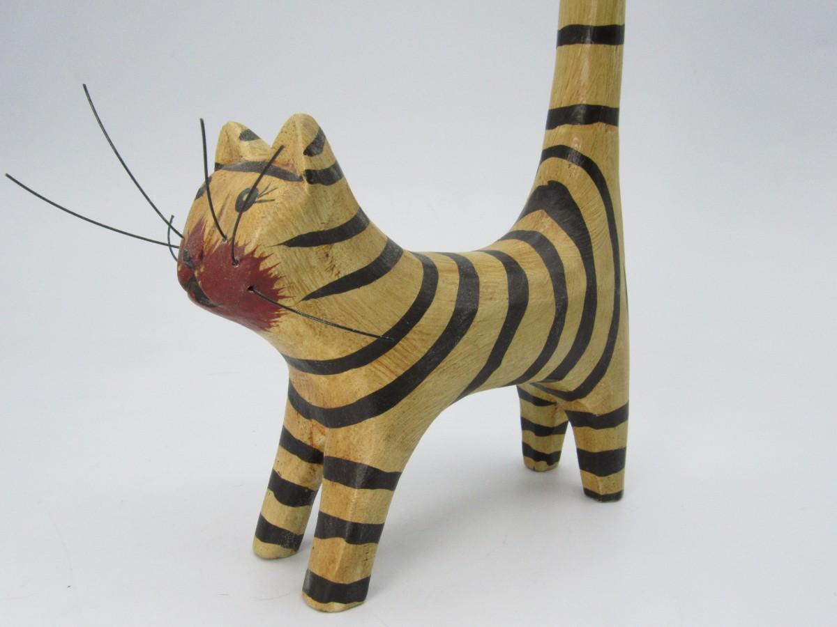 Wooden Carved Swirl Design Ring Holder Long Tail Cat Figurine