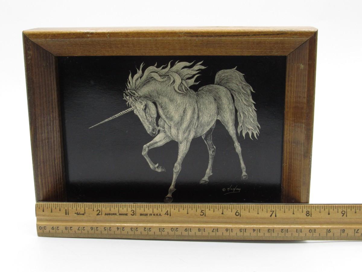 Small Retro HW Hoang White Unicorn Framed Art Print