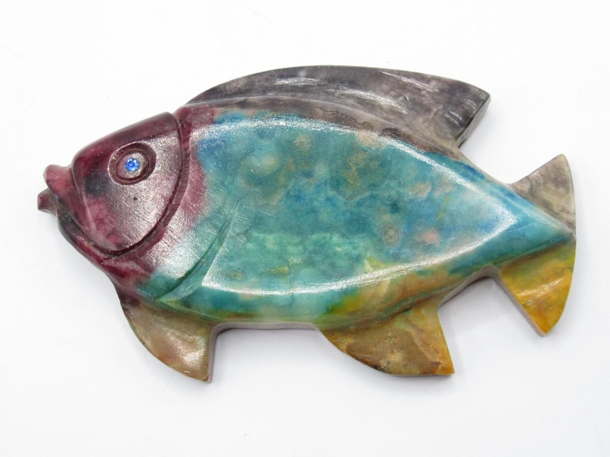 Retro Colorful Stone Carving Hanging Fish Aquatic Decor
