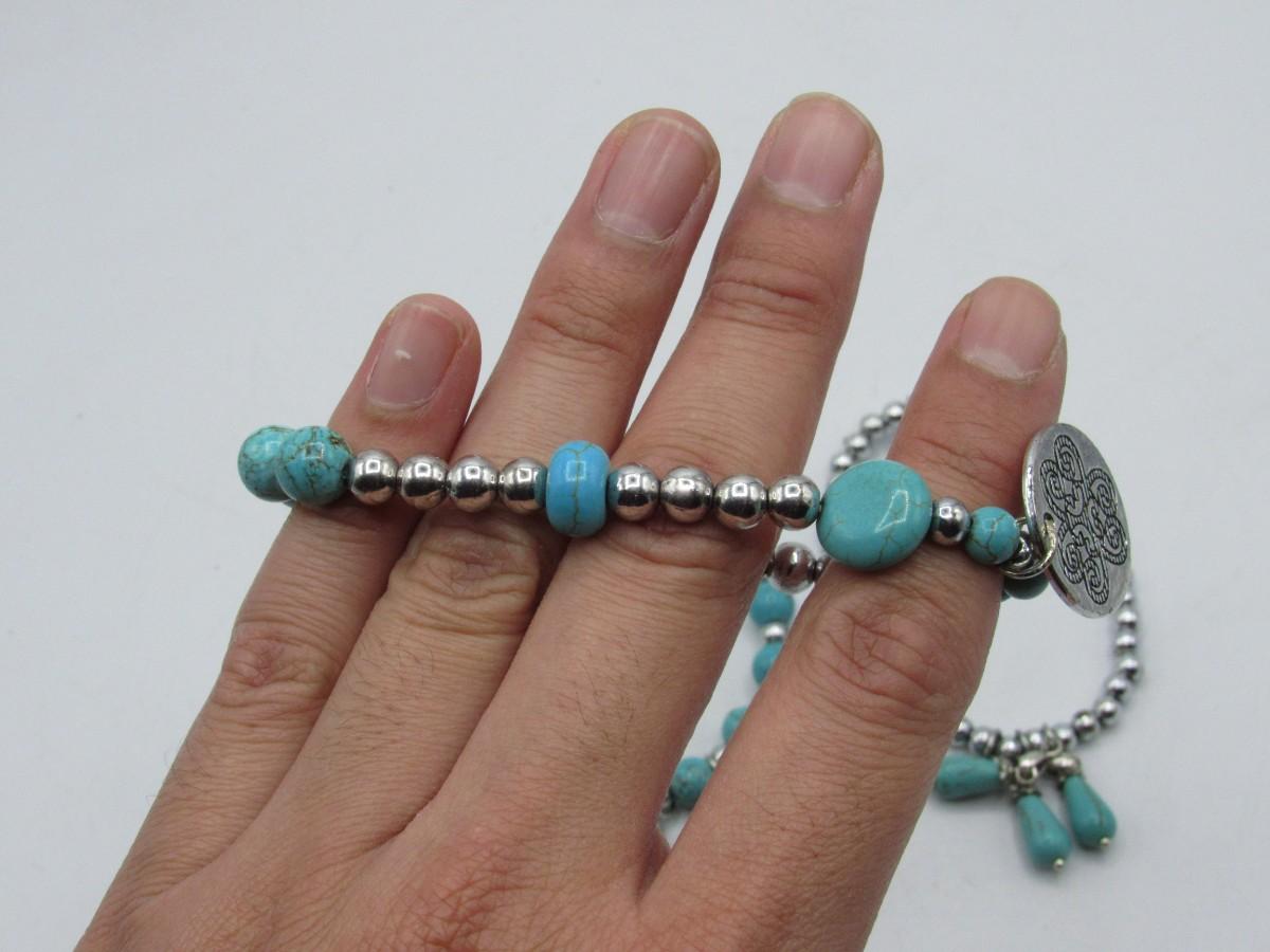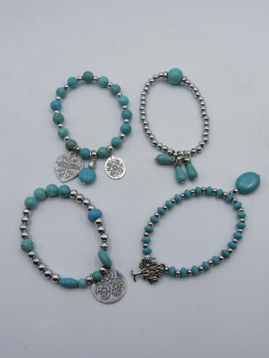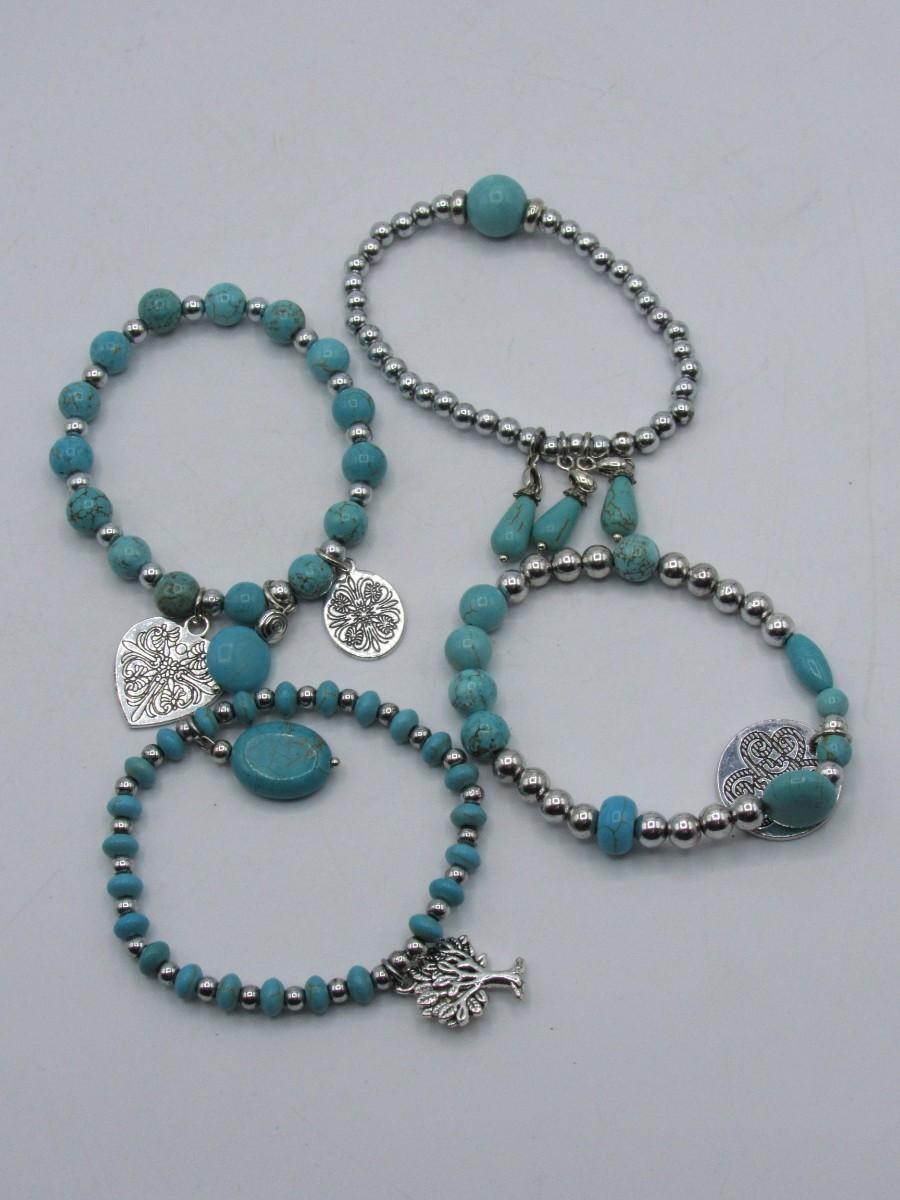 Set of Stretchy Band Turquoise Color Beaded Bracelet Charms