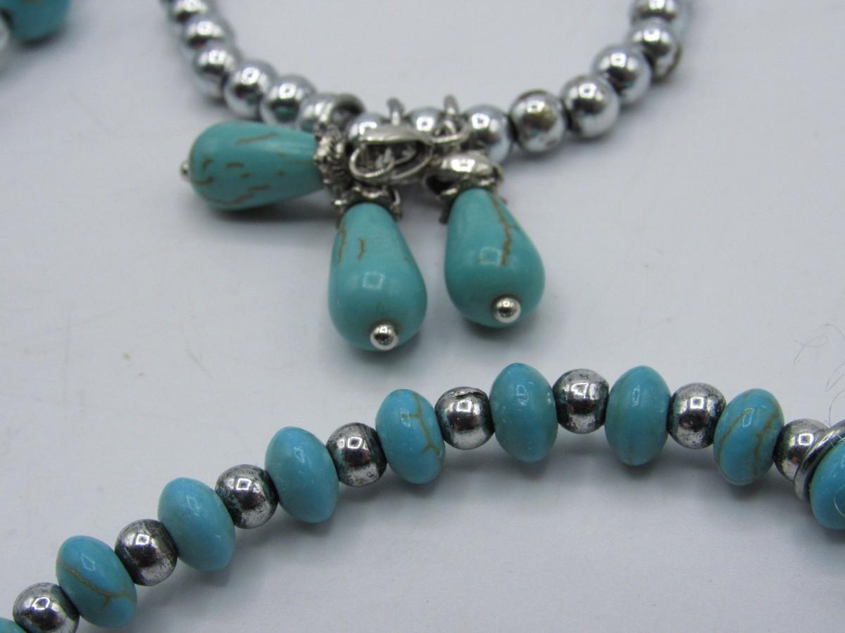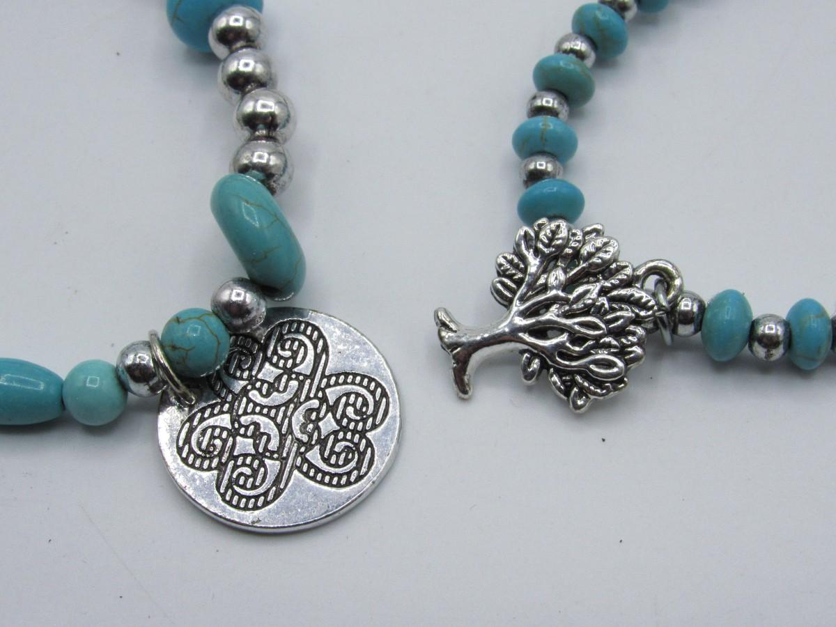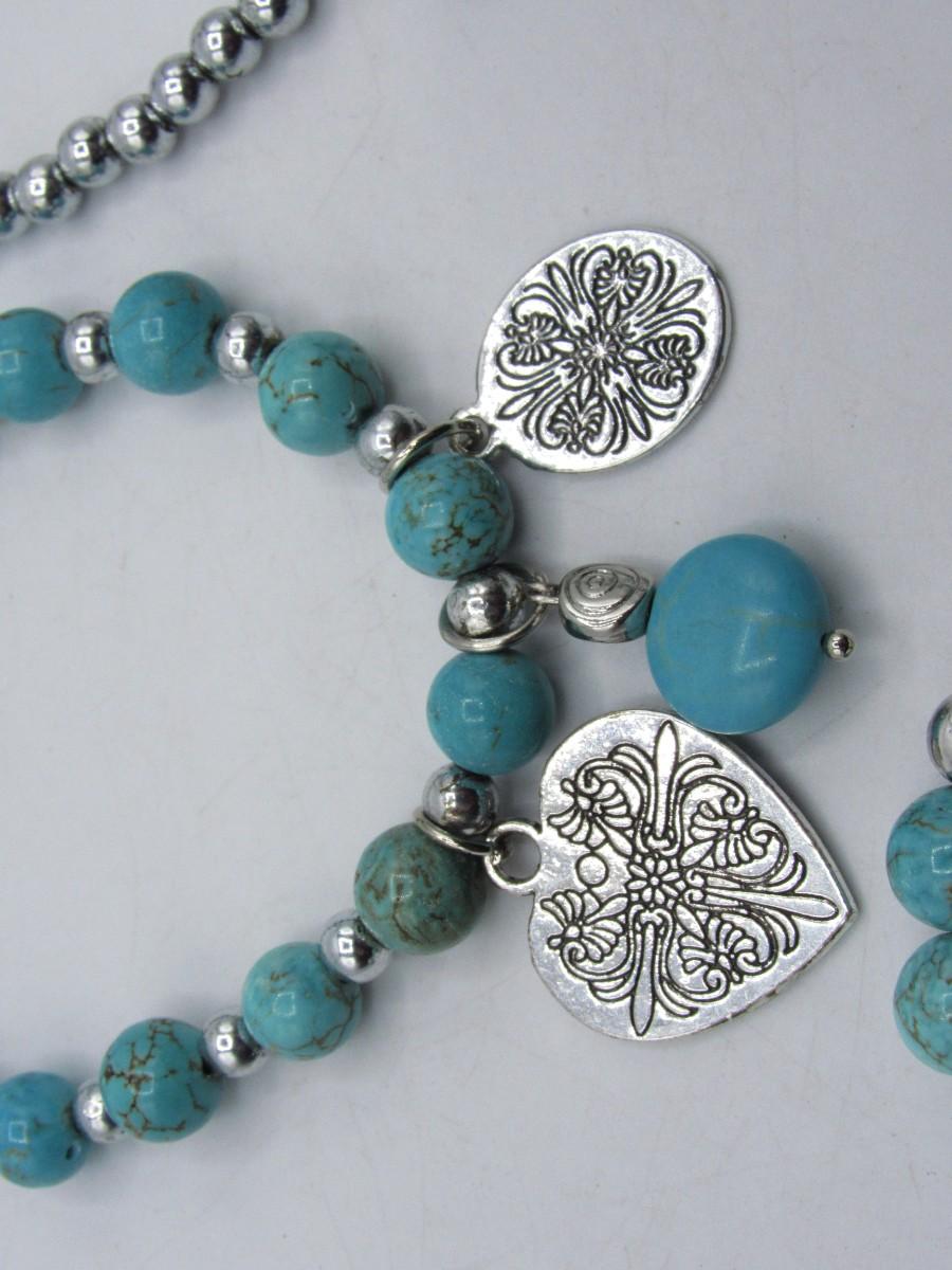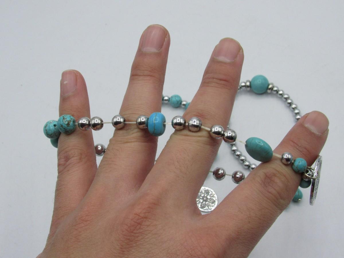 Set of Stretchy Band Turquoise Color Beaded Bracelet Charms