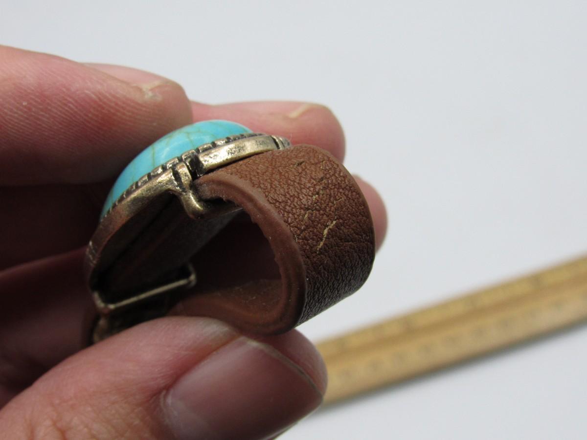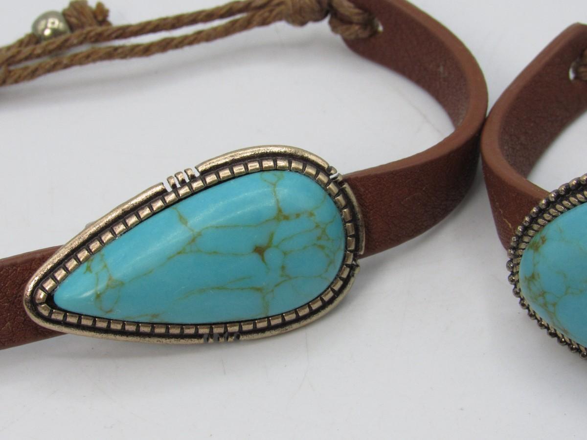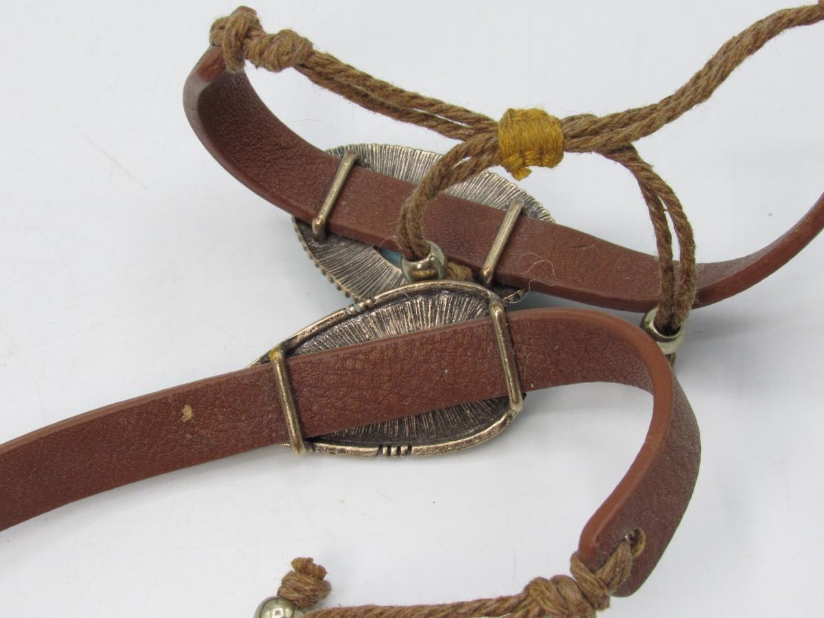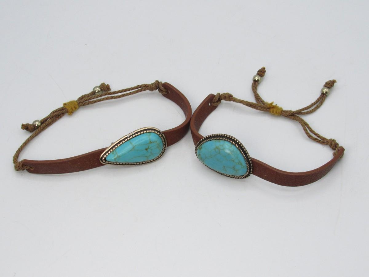 Pair of Leather & Turquoise Southwestern Style Adjustable Bands Bracelets