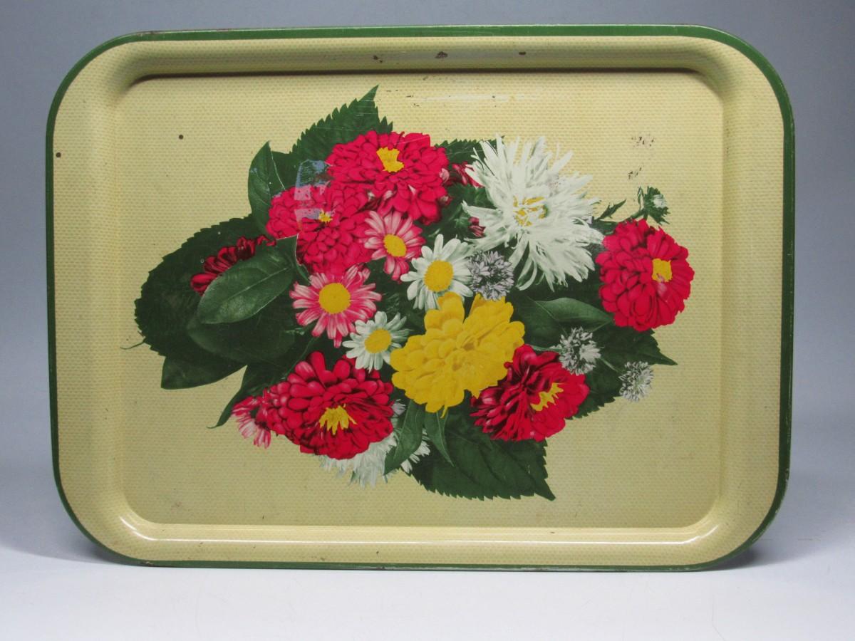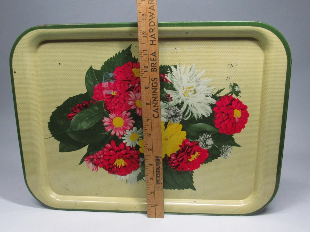 MCM Vintage Tin Metal Groovy Flower Design TV Serving Tray
