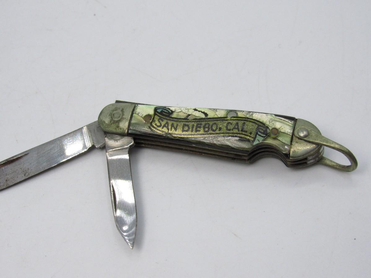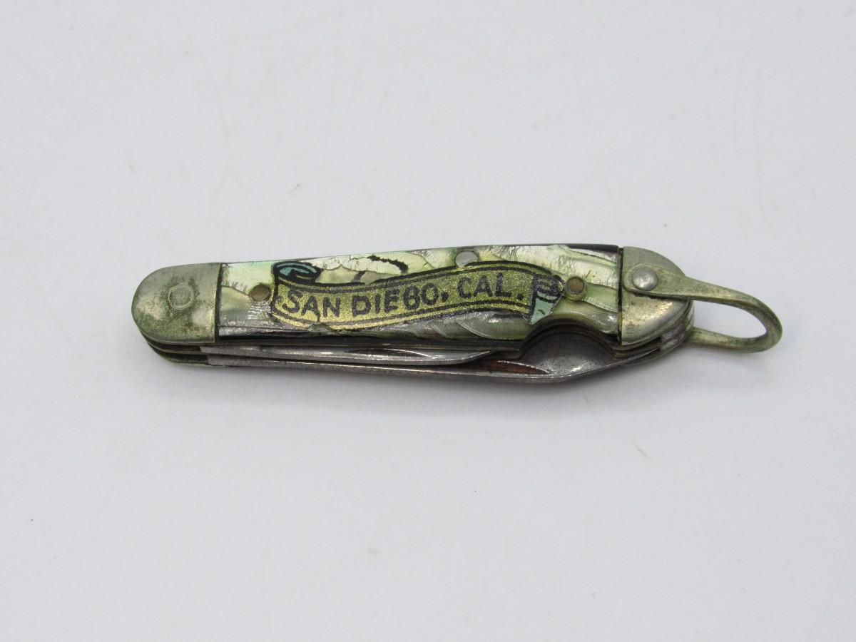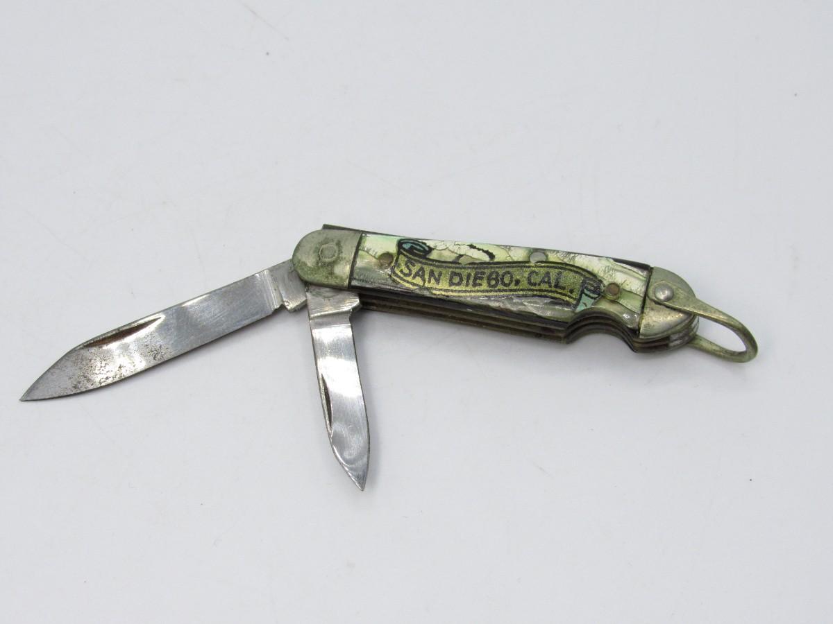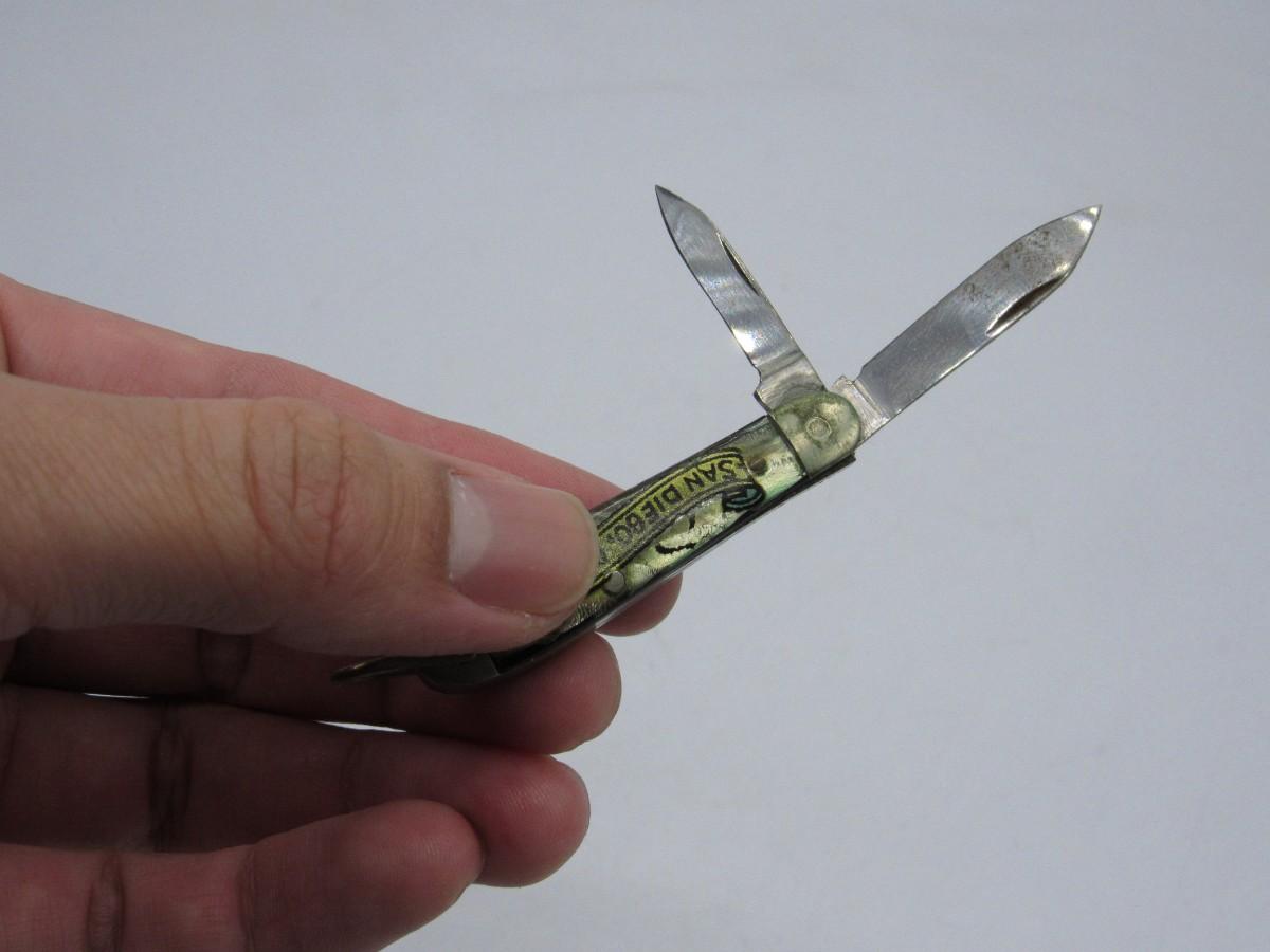 Small Vintage San Diego California Scroll Design Folding Pocket Knife Souvenir