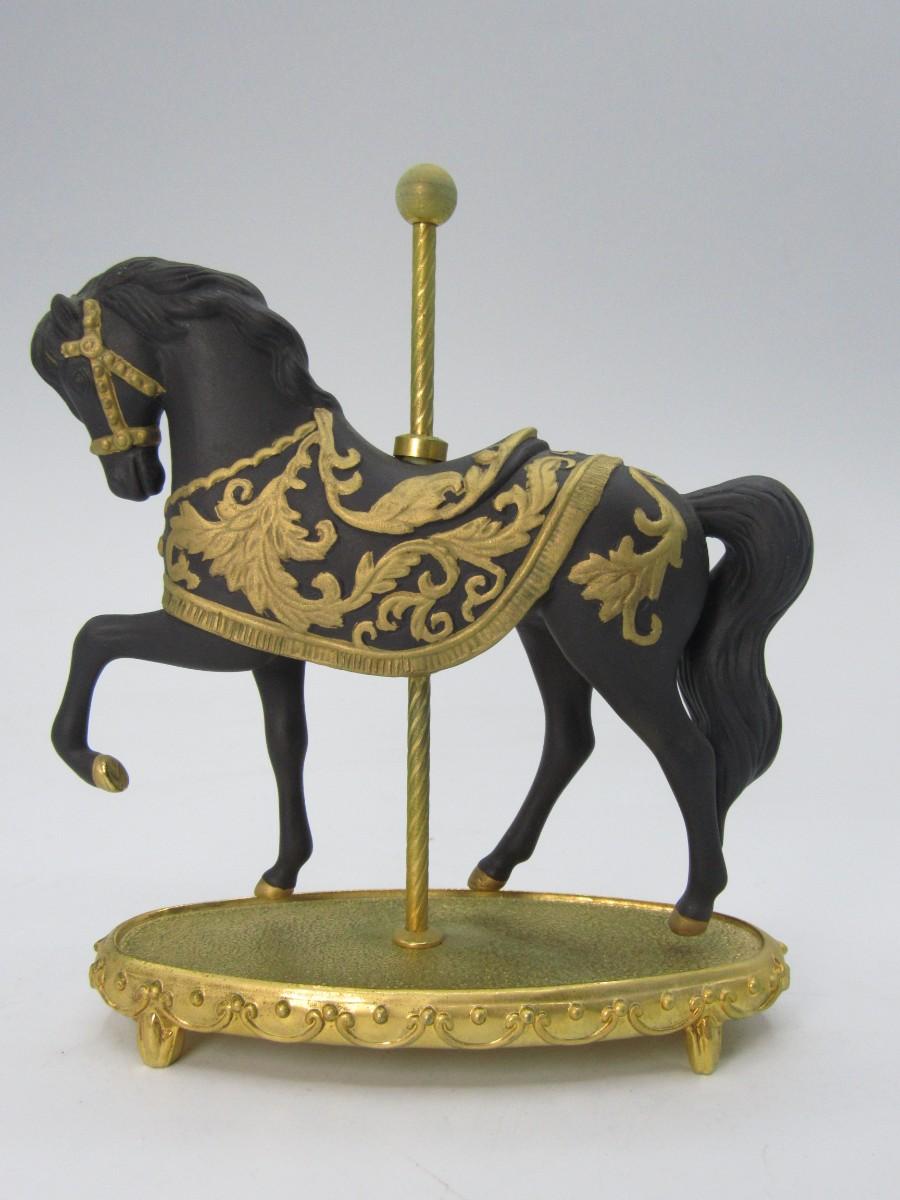 Black & Gold Carousel Horse Crafted in Thailand Retro Style Collectible Figurine