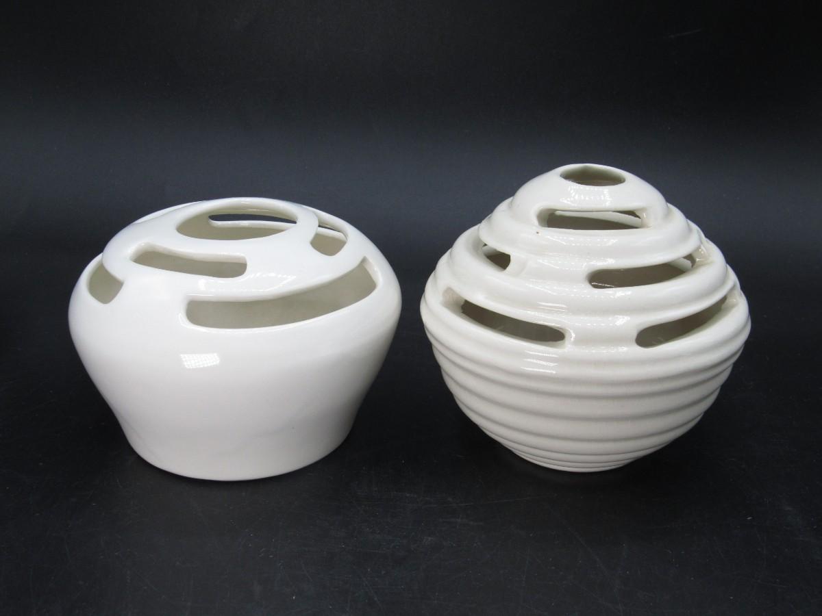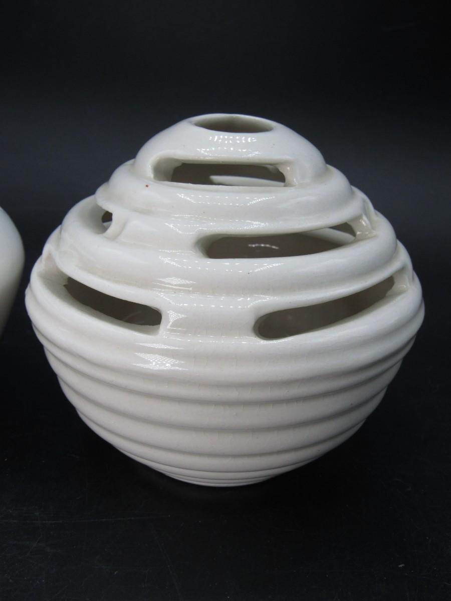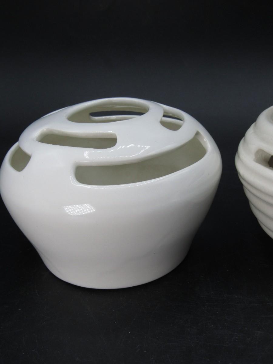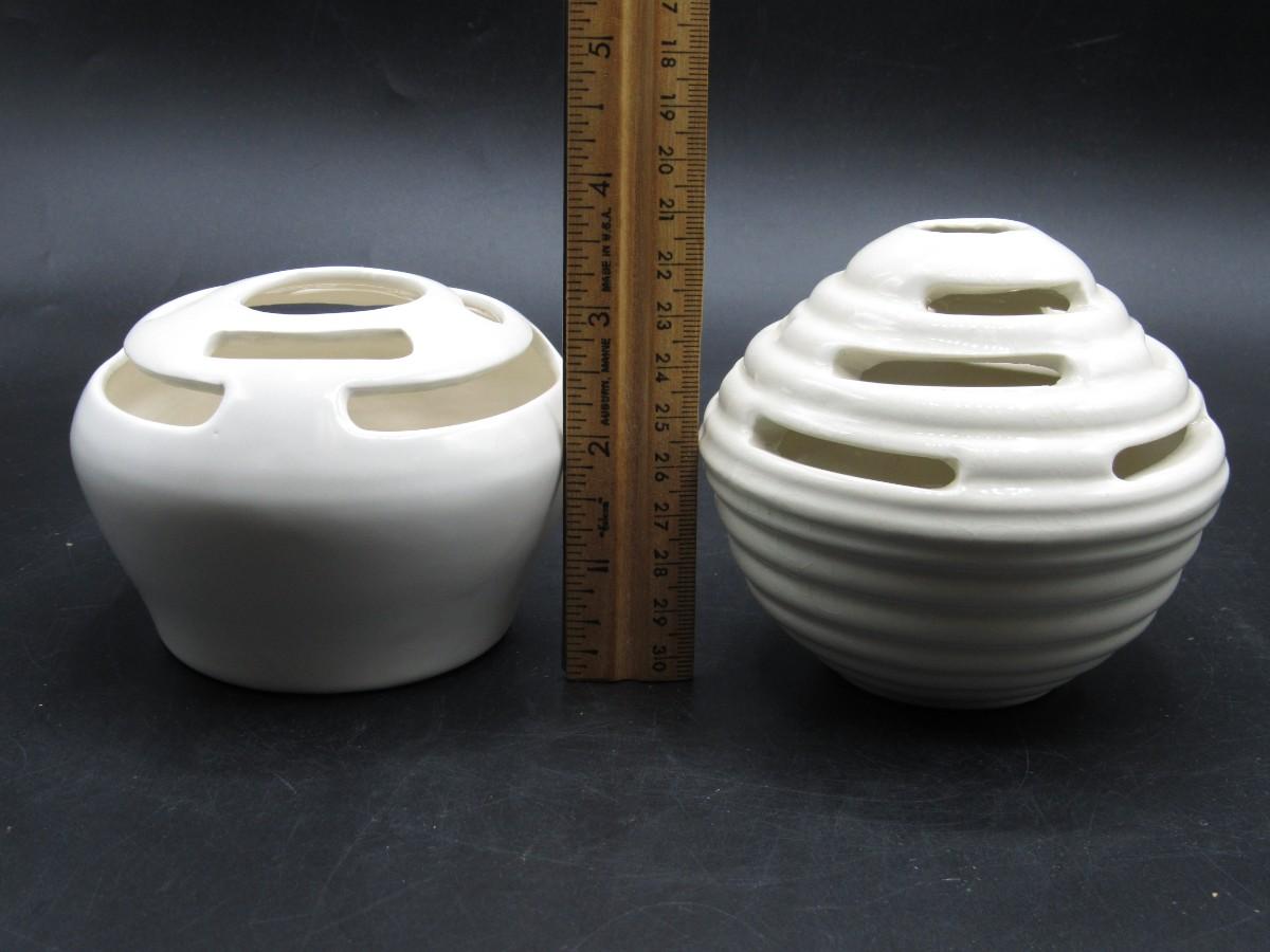 Flower Frog Ceramic Pottery Vase MCM Mid-century design white and cream