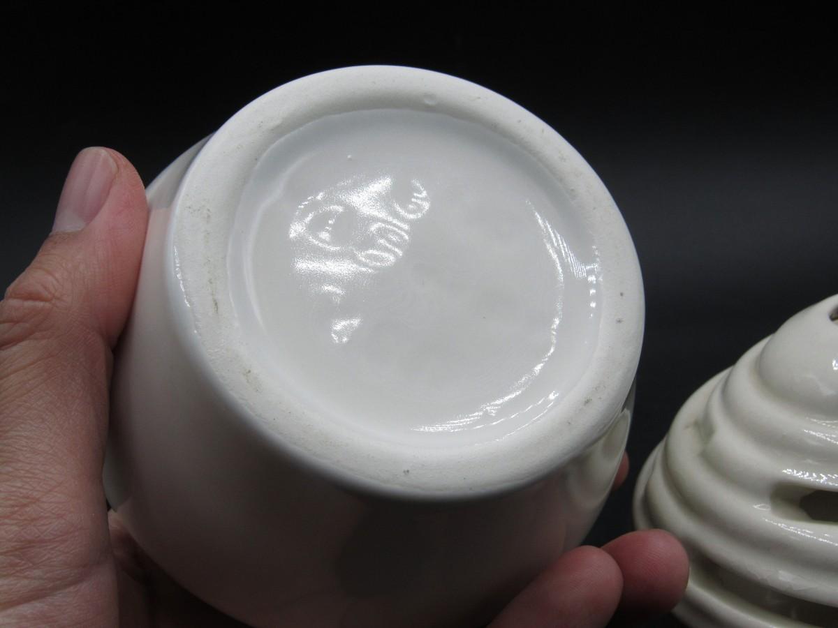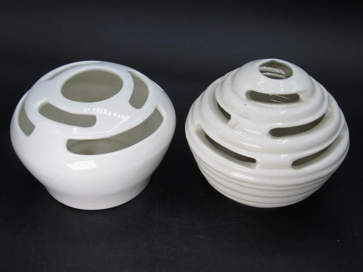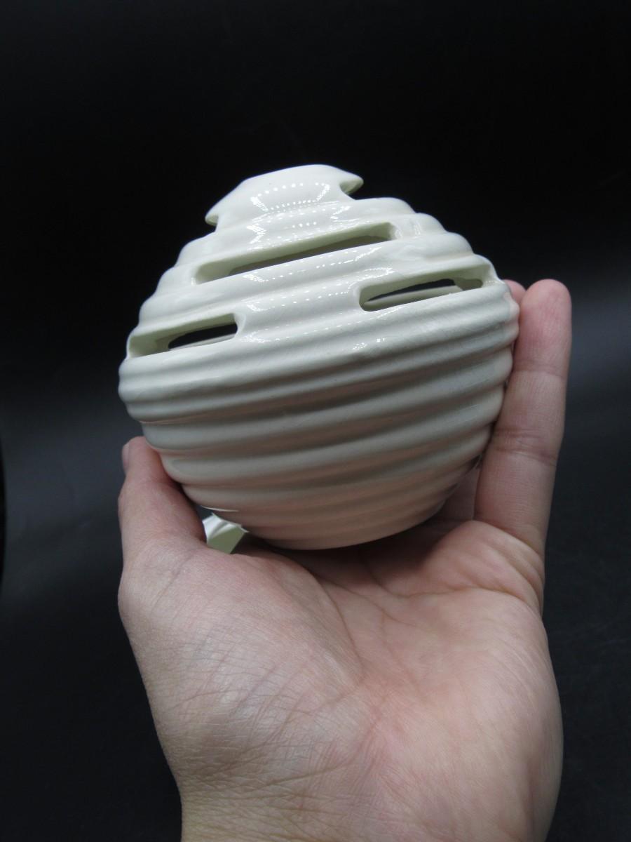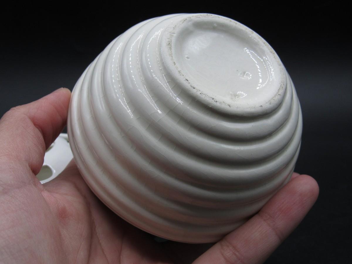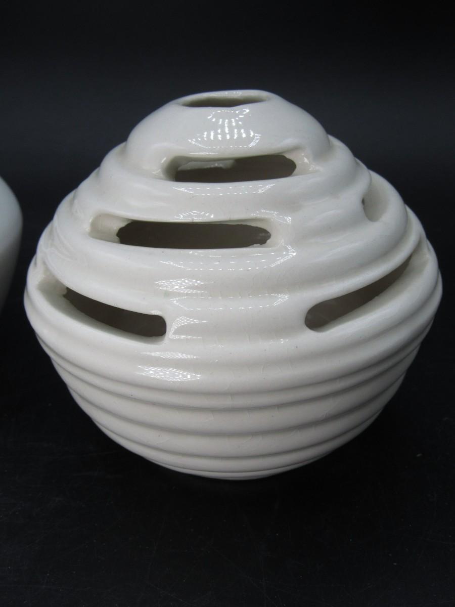 Flower Frog Ceramic Pottery Vase MCM Mid-century design white and cream