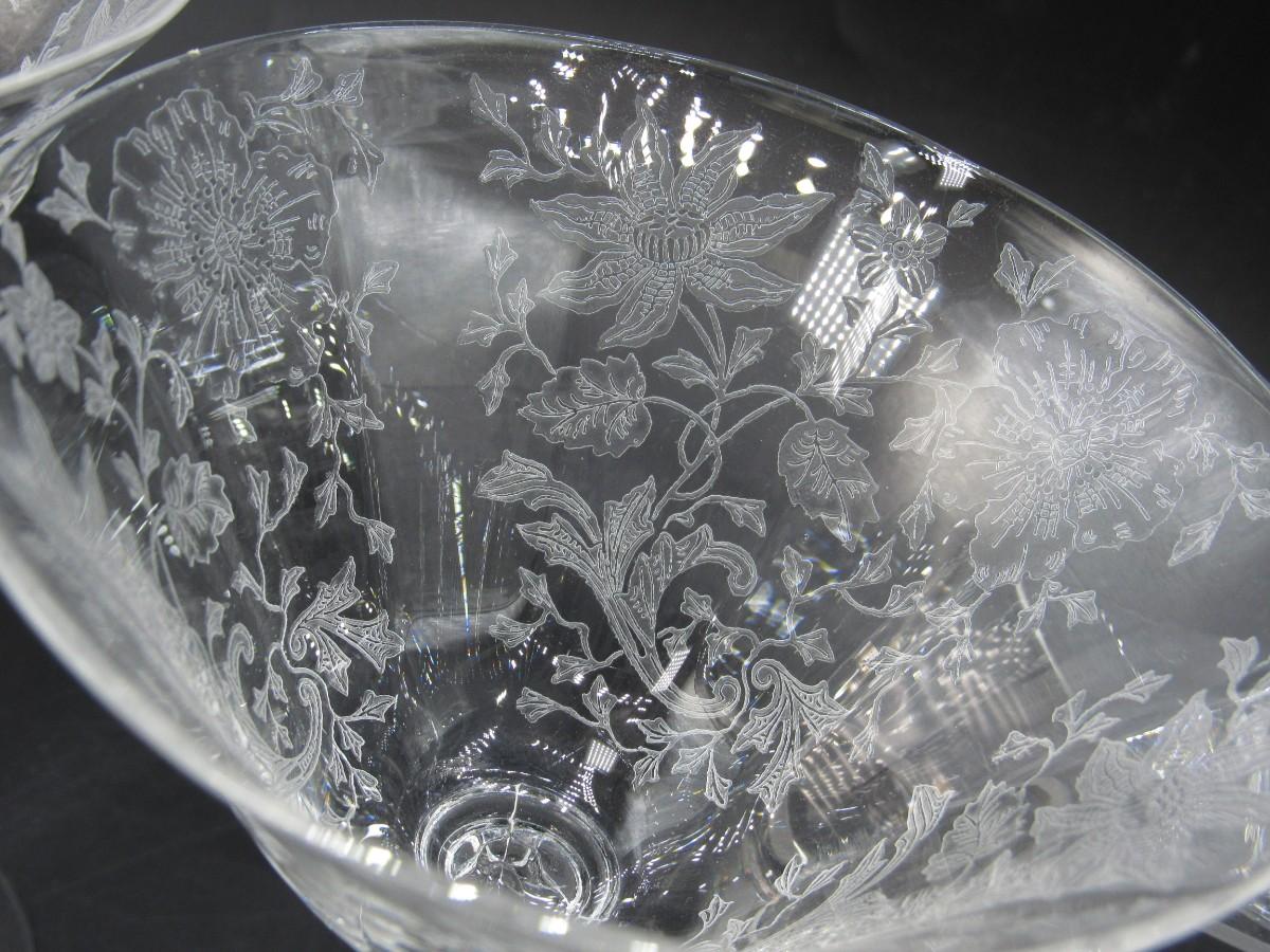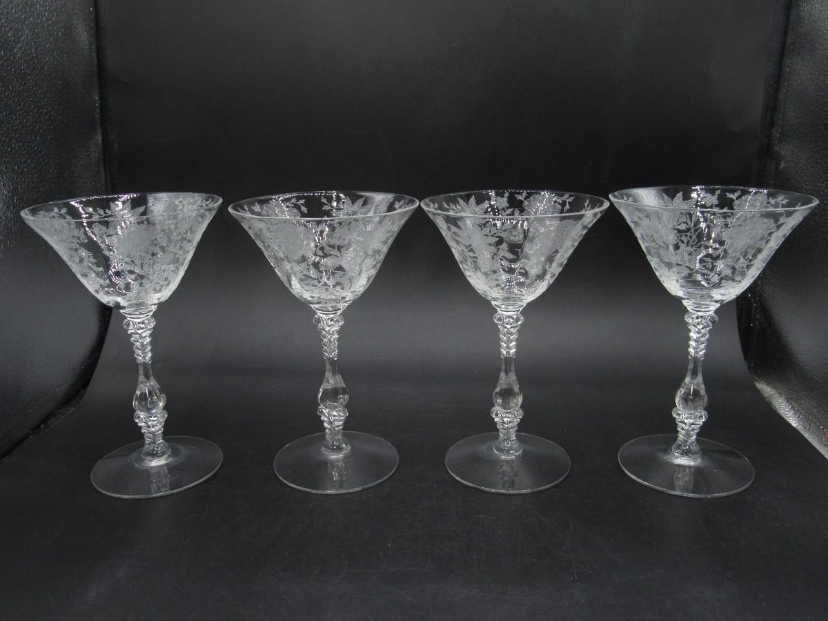 Lot of Vintage Cambridge Wildflower Pattern Martini Drinking Crystal Glasses