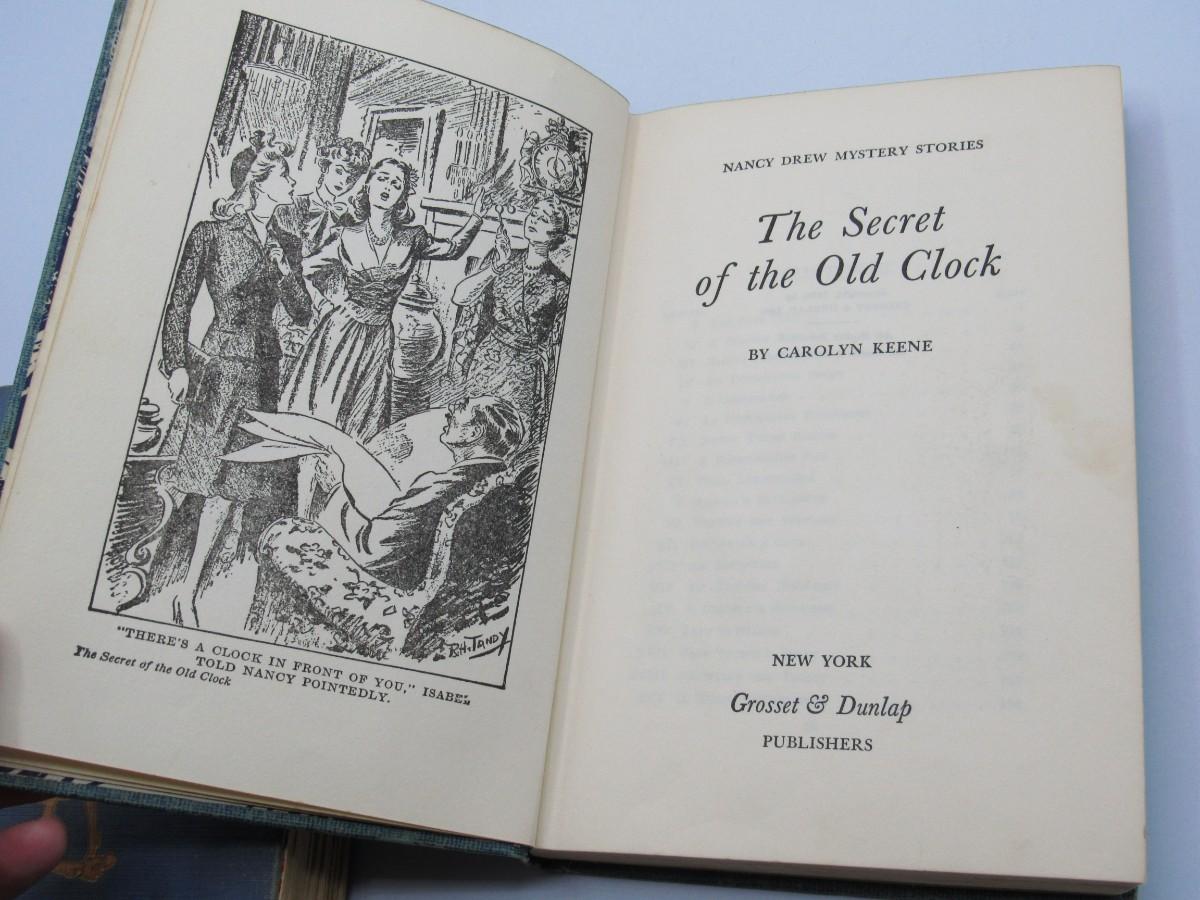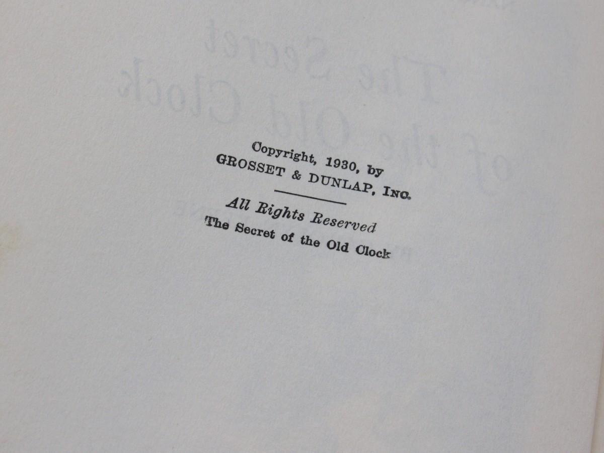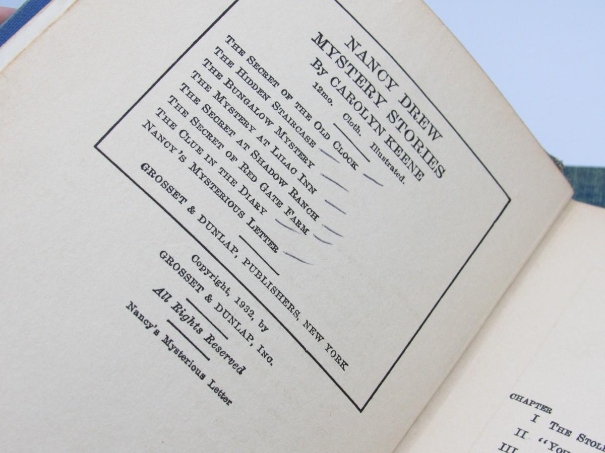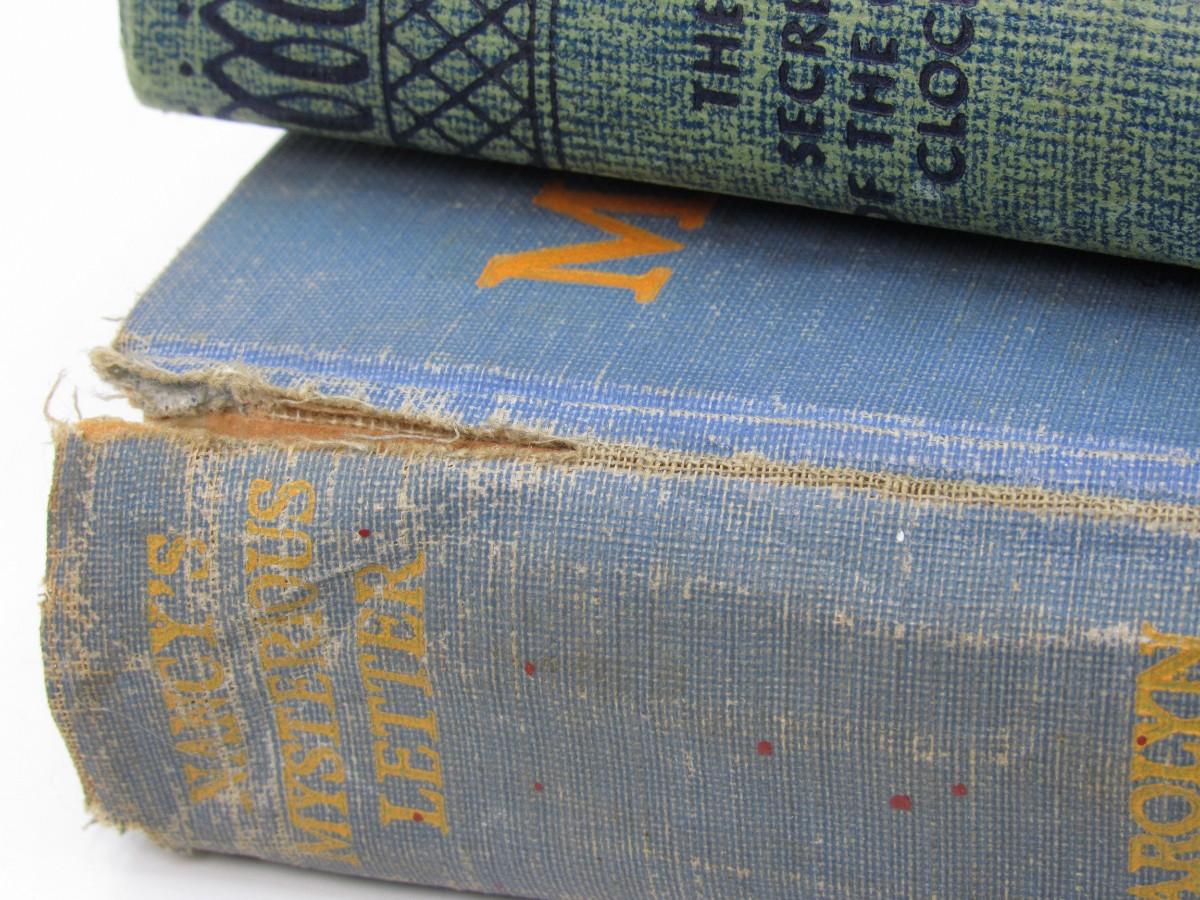 Nancy's Mysterious Letter (1932) and The Secret of the Old Clock (1930), both written by Carolyn Keene. Some yellowing of the printed pages and slight damage to the binding of Nancy's Mysterious Letter. The Secret of the Old Clock is in better condition.