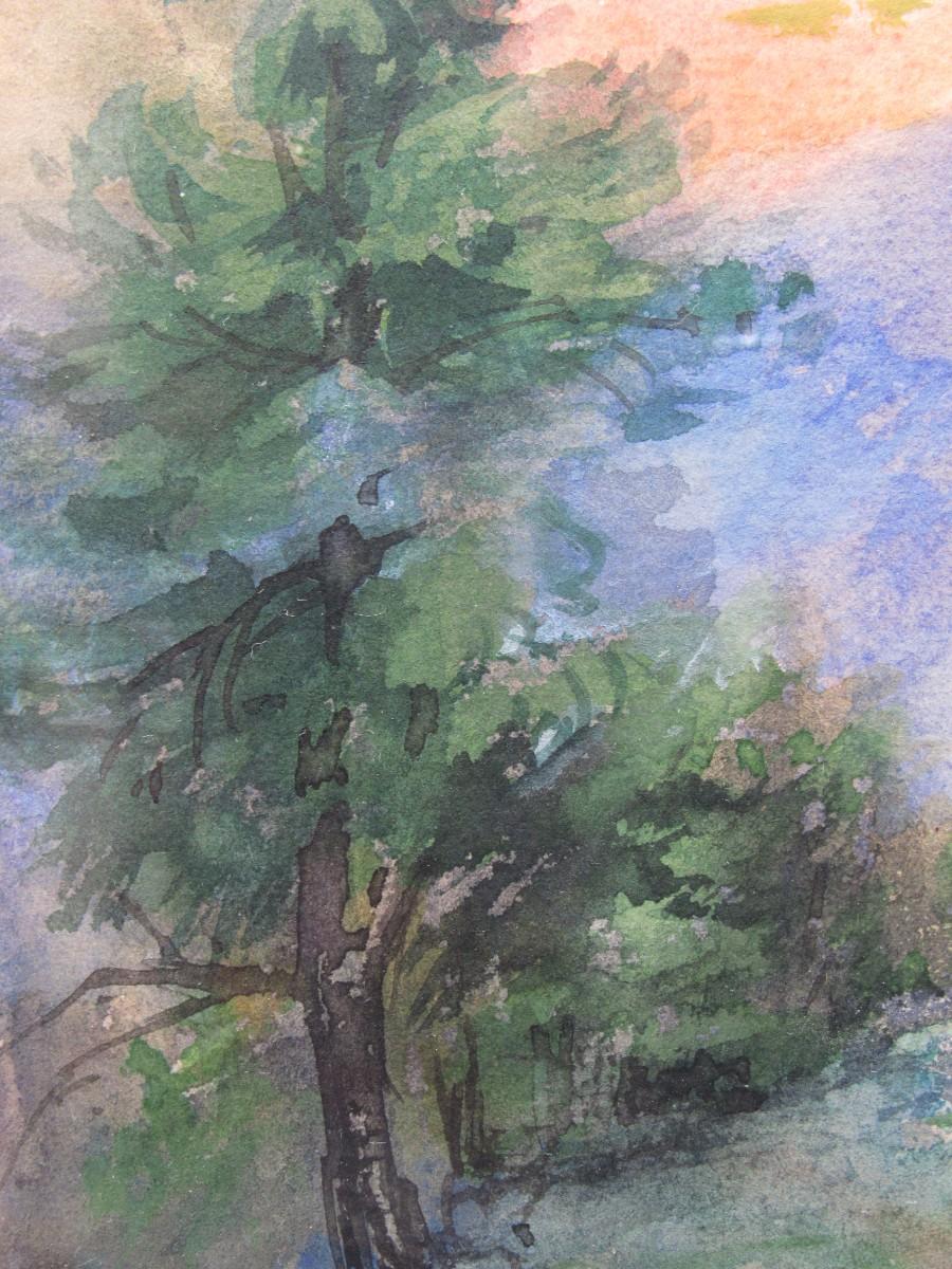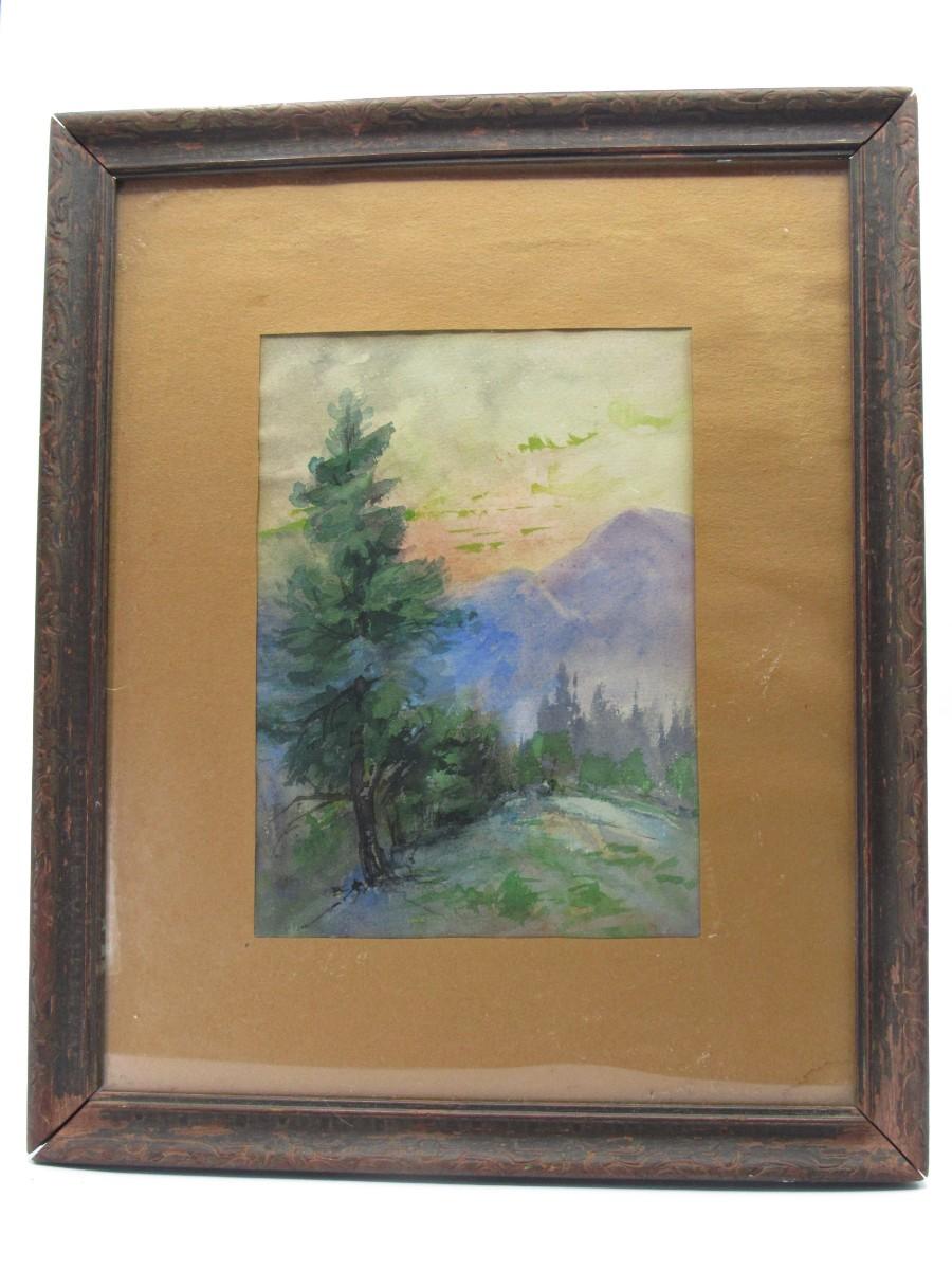 Vintage Framed Wild Wilderness Watercolor Landscape Art