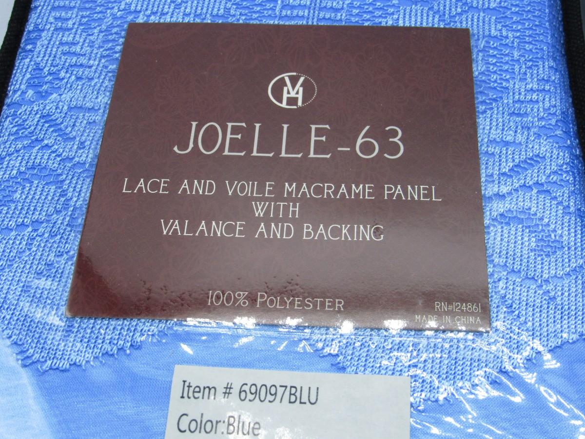 Pair of Joelle-63 Blue Lace & Voile Marame Panel with Valance and Backing