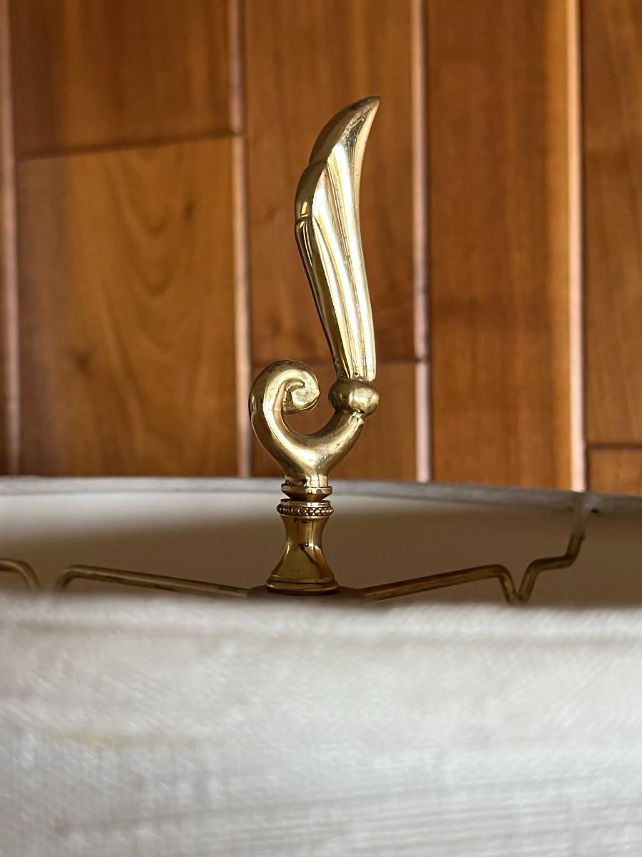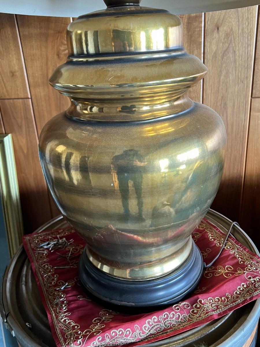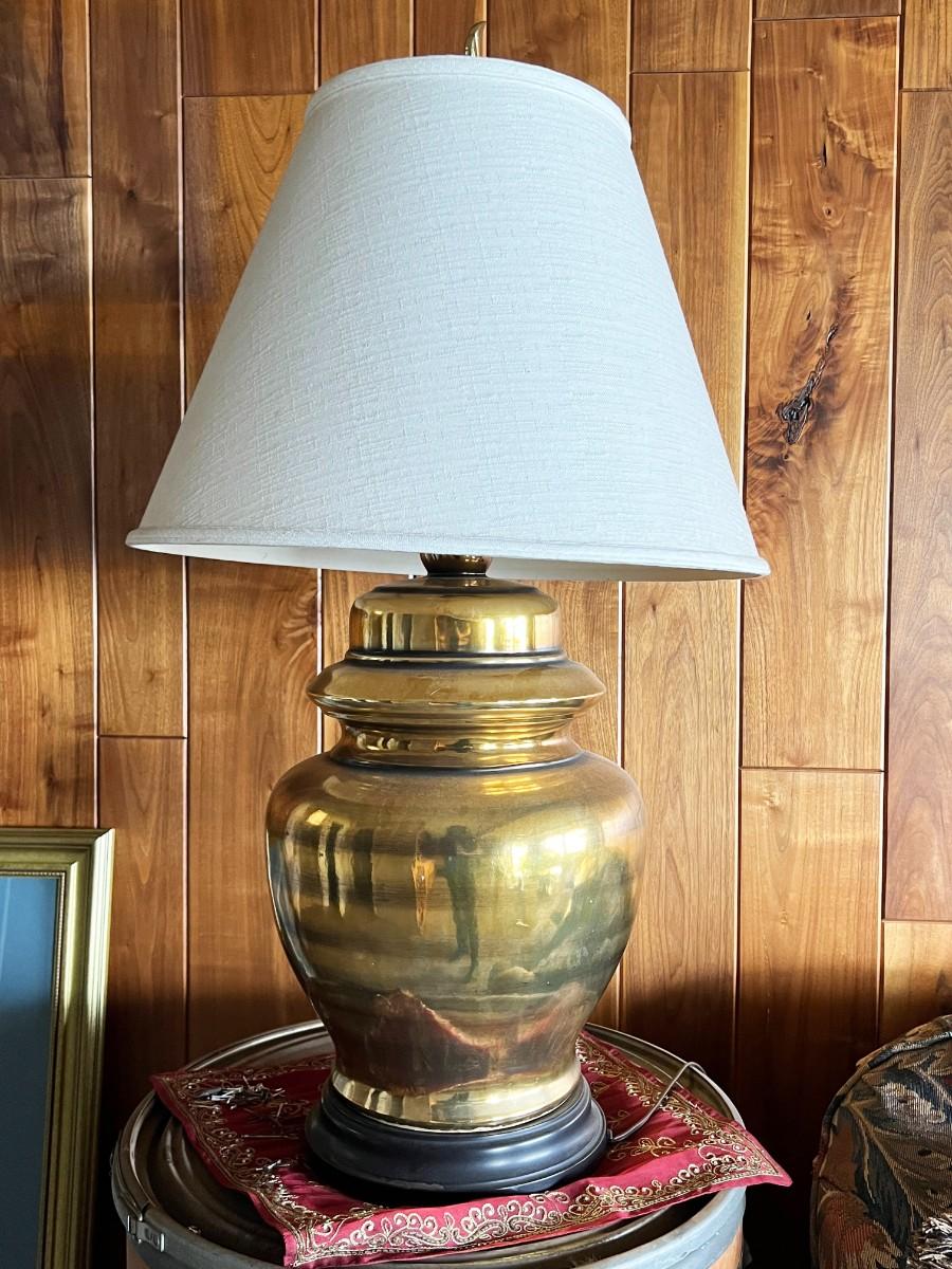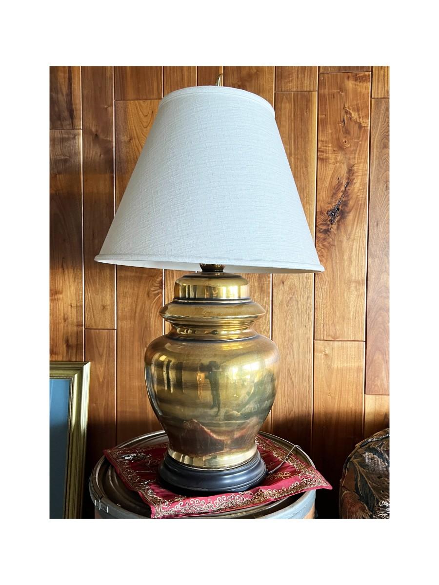 Vintage Wide Brass Table Lamp. In good vintage condition. About 36" size.