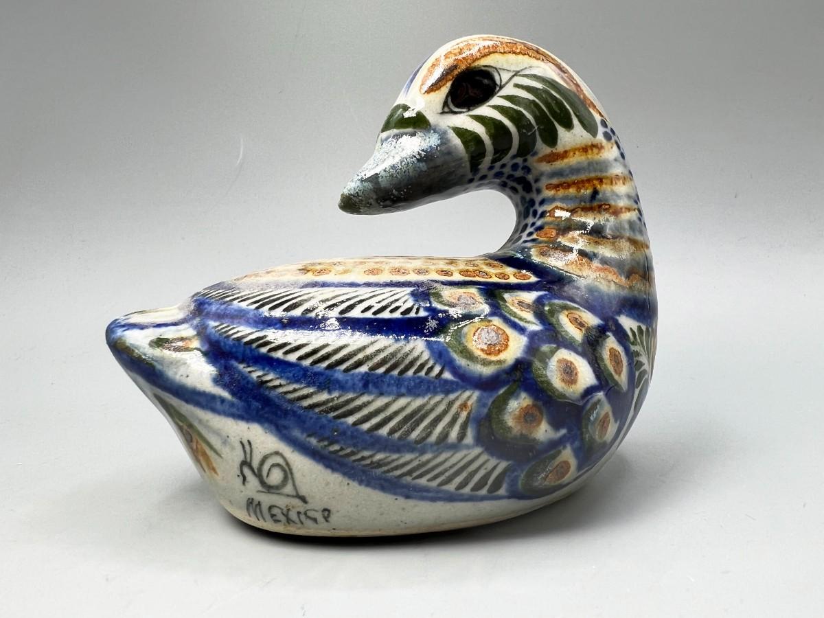 Vintage Made in Mexico Ceramic Patterned Mallard Duck Folk Art Decor