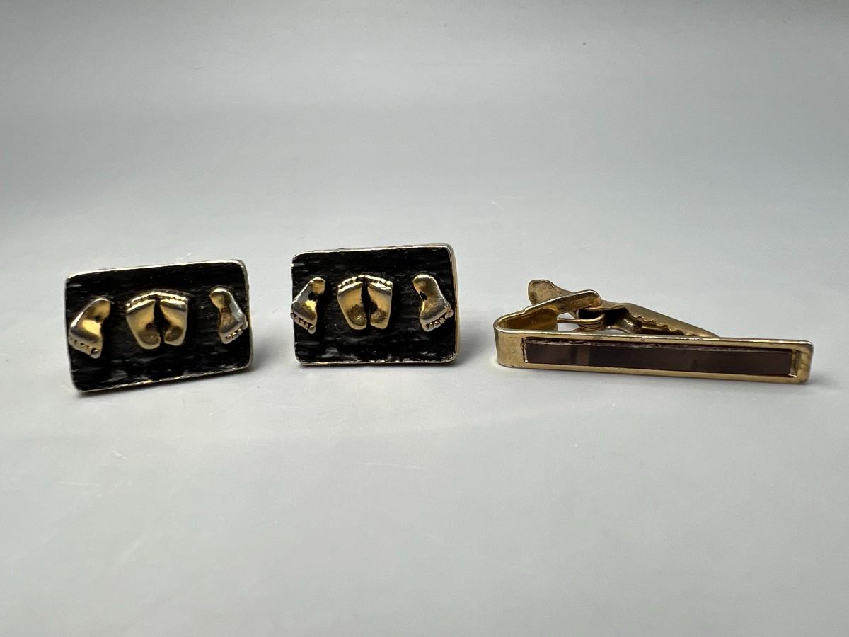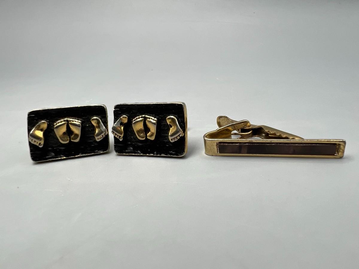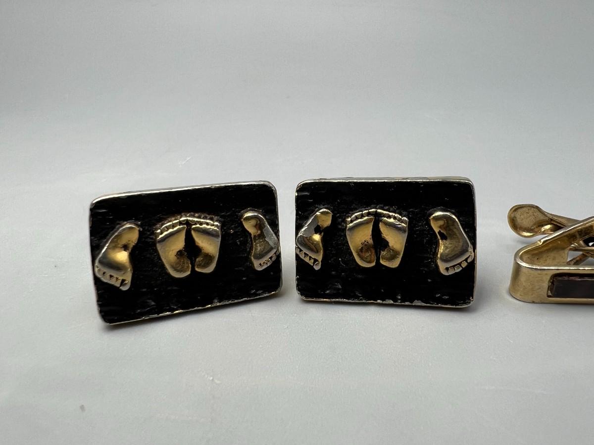 Vintage Risque Love Making Feet Metal Cufflinks & Retro Tie Clip