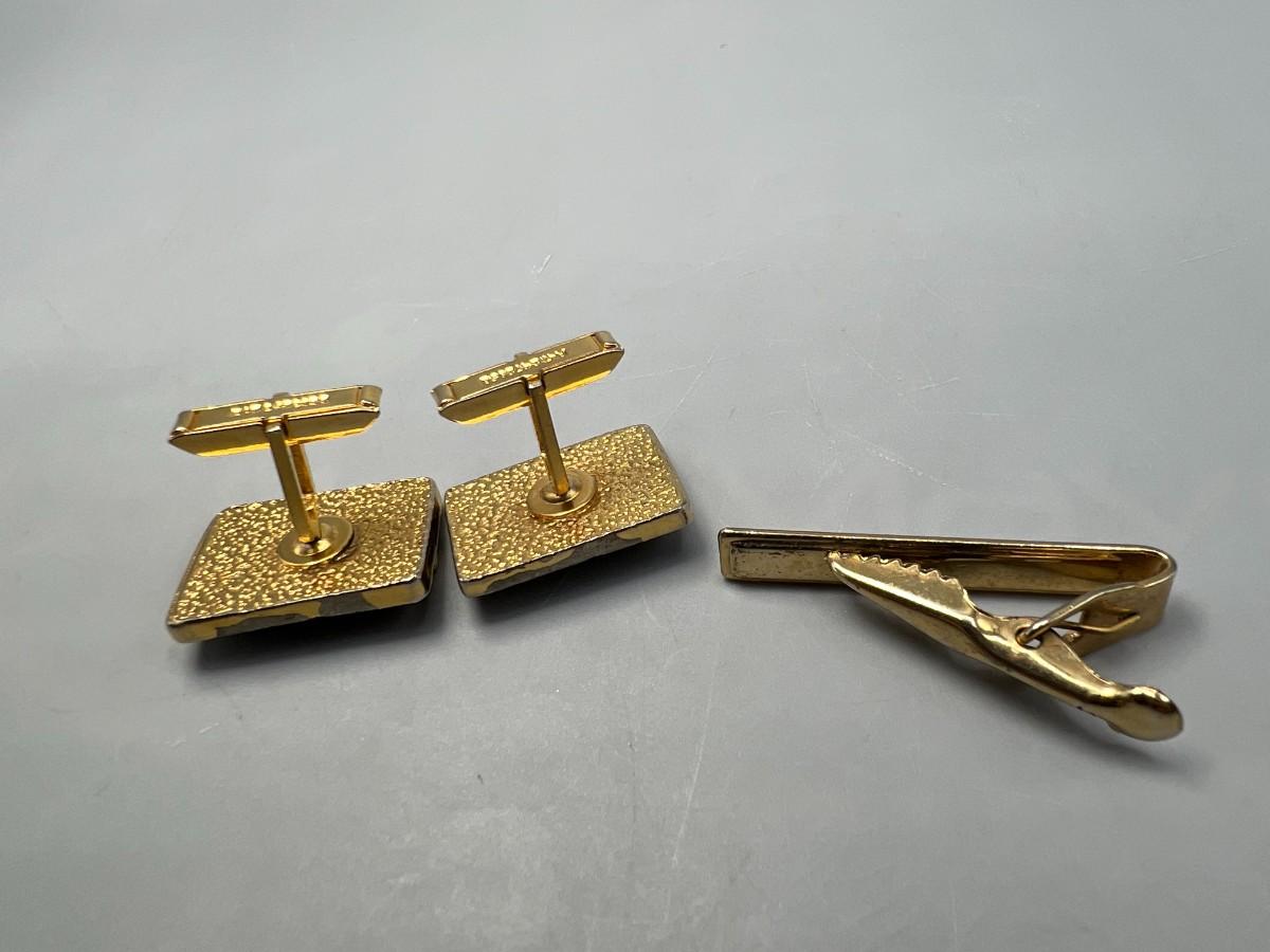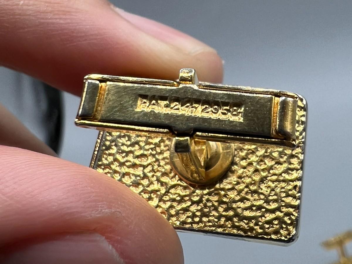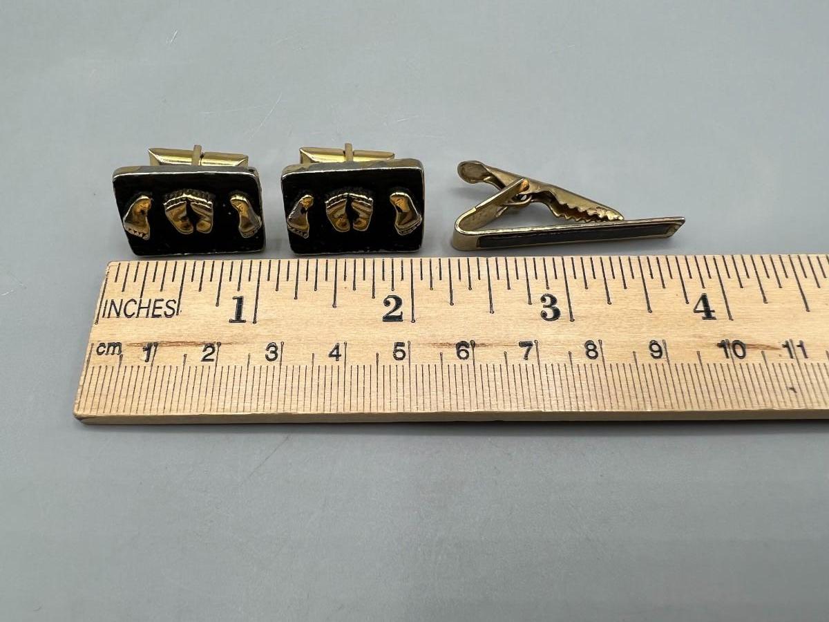 There is some vintage wear to the cuff links, but there is no other significant damage and is in overall good collectible or wearable condition. Check pictures for more details and for sizing.