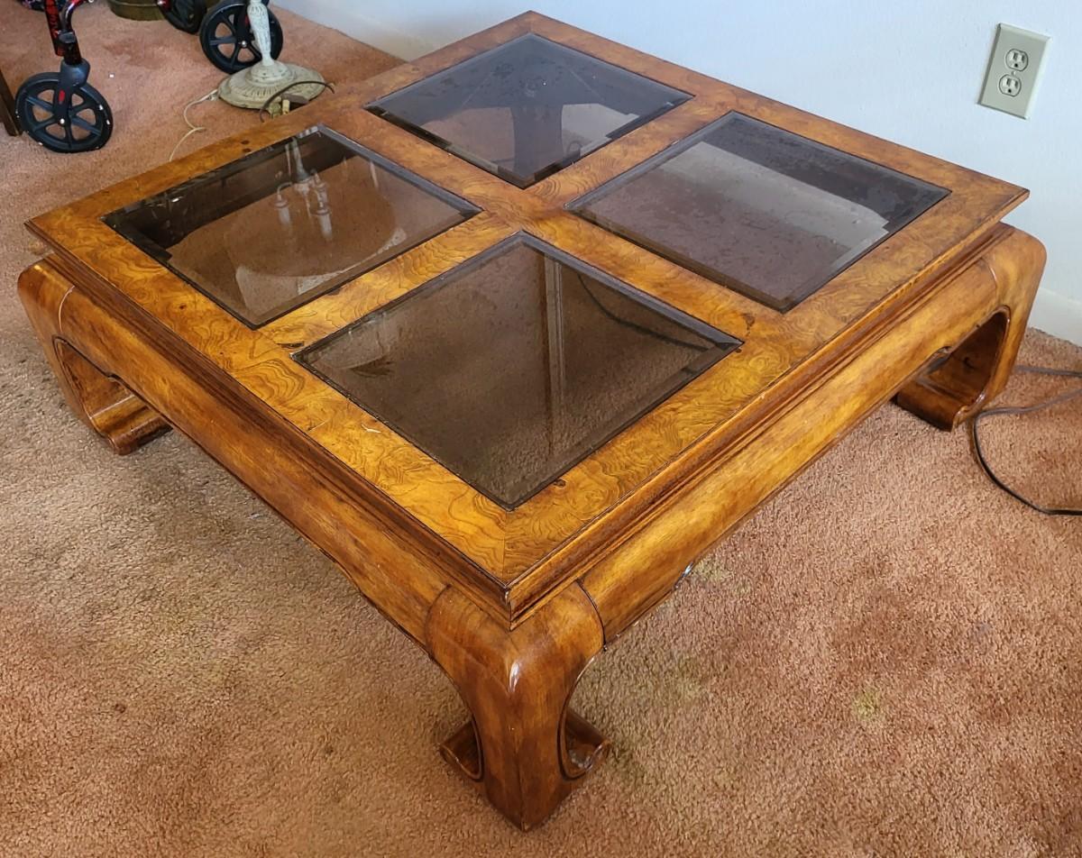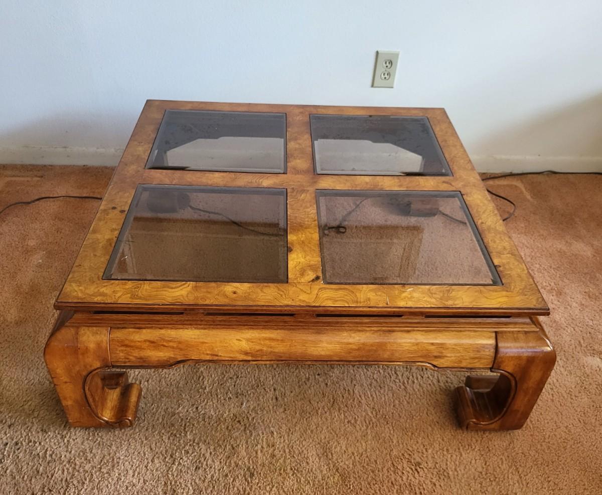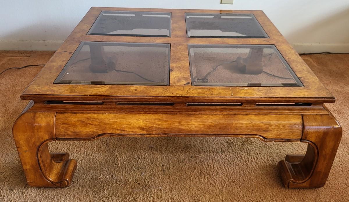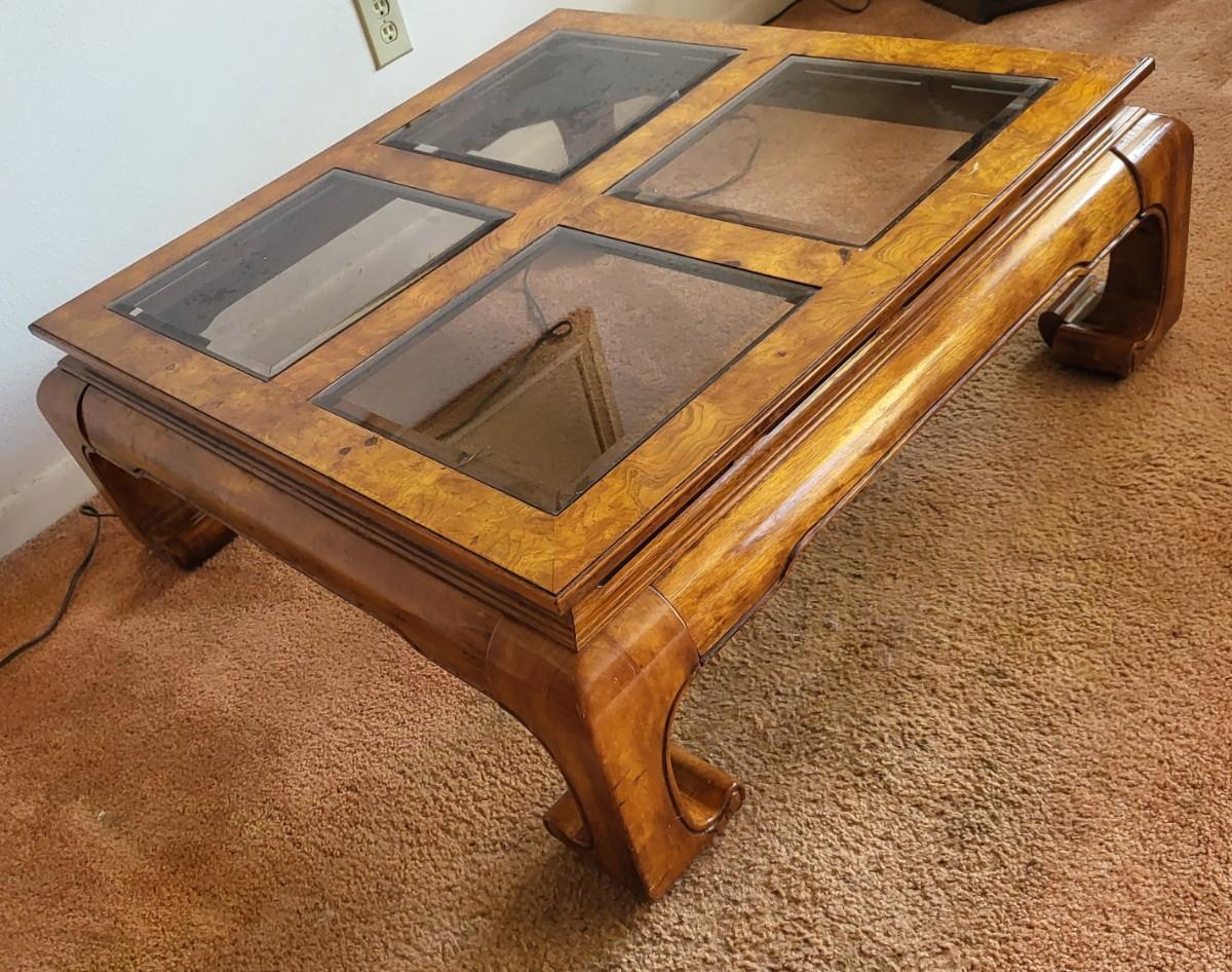 Modern Chow Leg Coffee Table with Glass Panel Inset