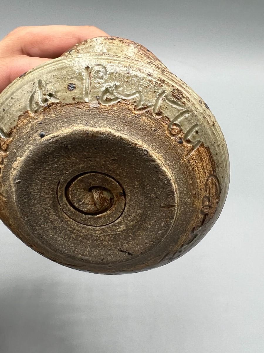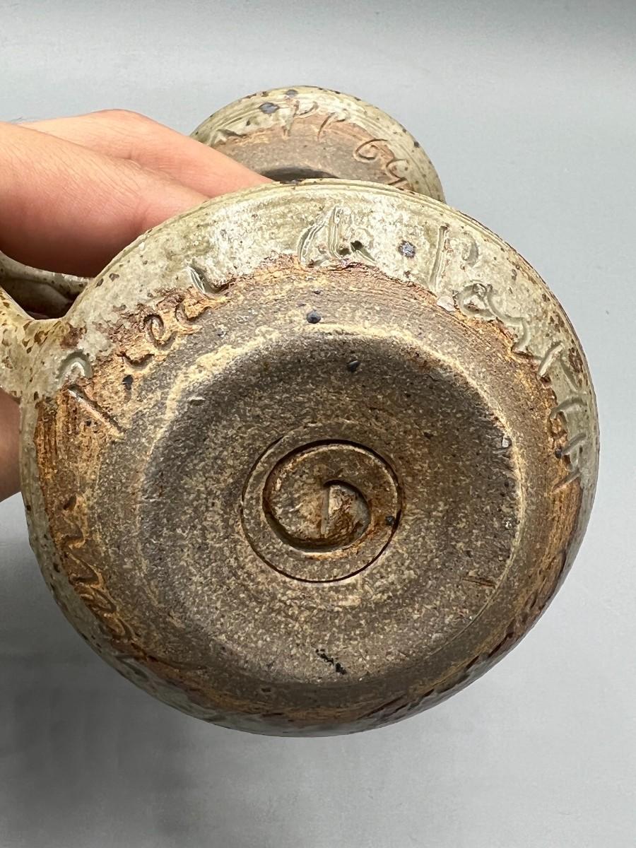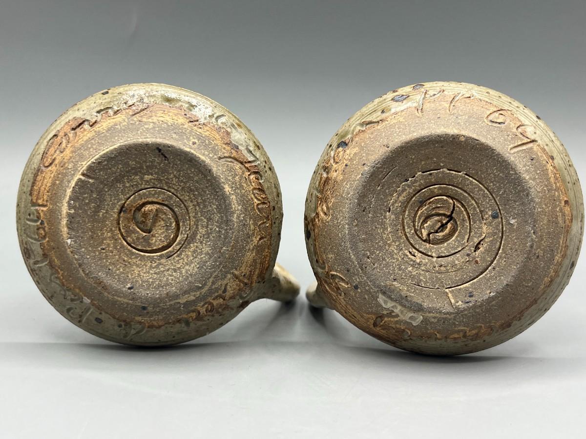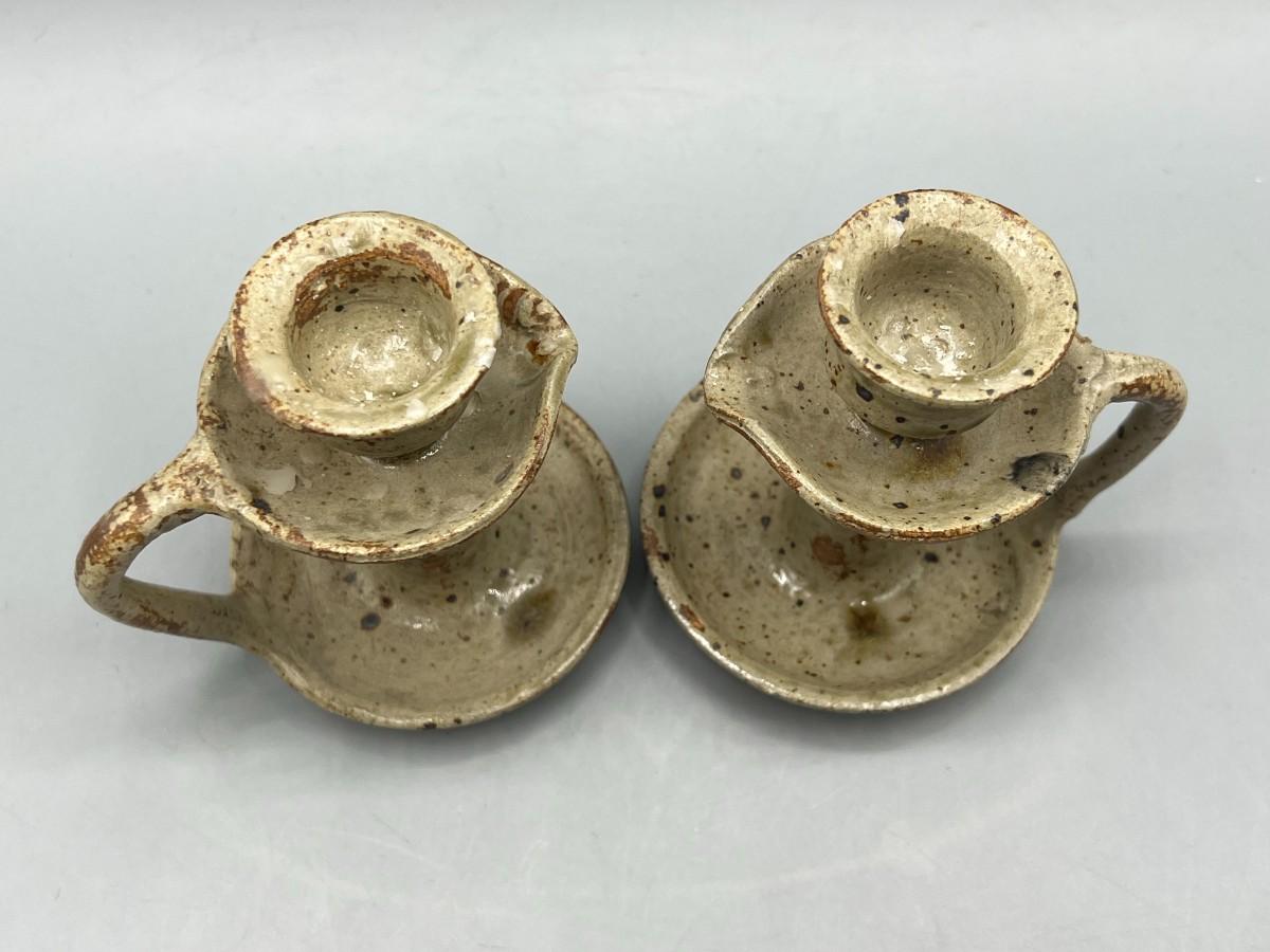 Vintage Pair of Rustic Handmade Signed Pottery Stoneware Speckled Candlestick Holders