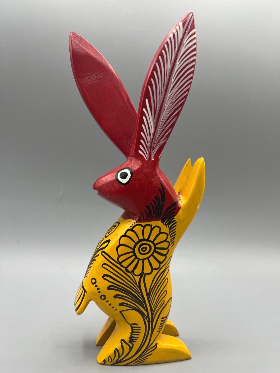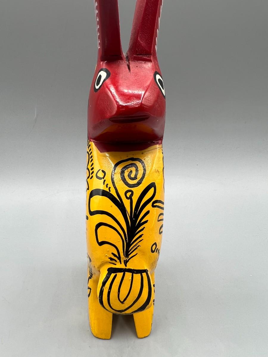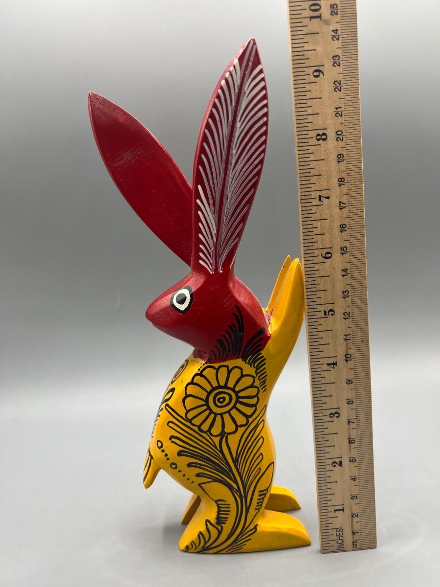 Retro Folk Art Handmade Painted & Carved Wooden Standing Bunny Rabbit Display Figurine