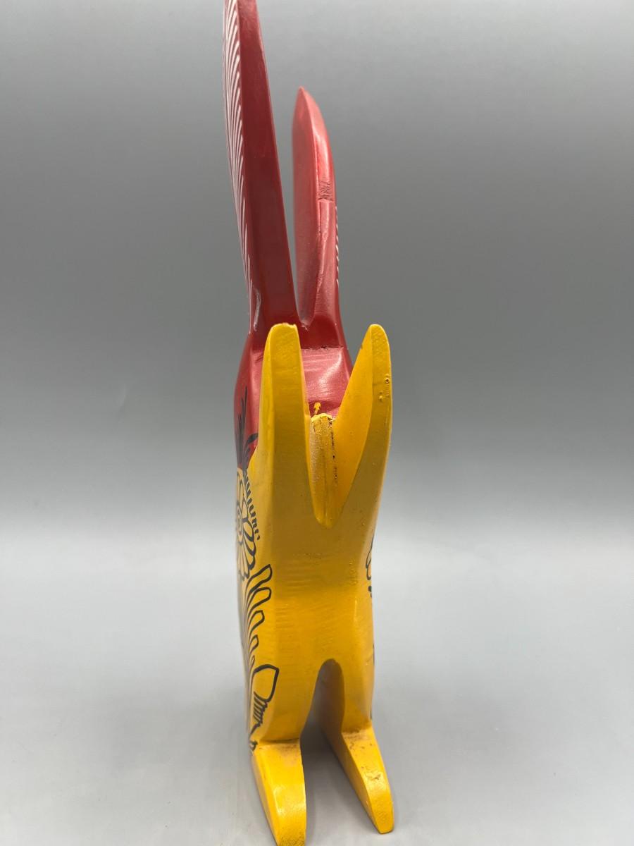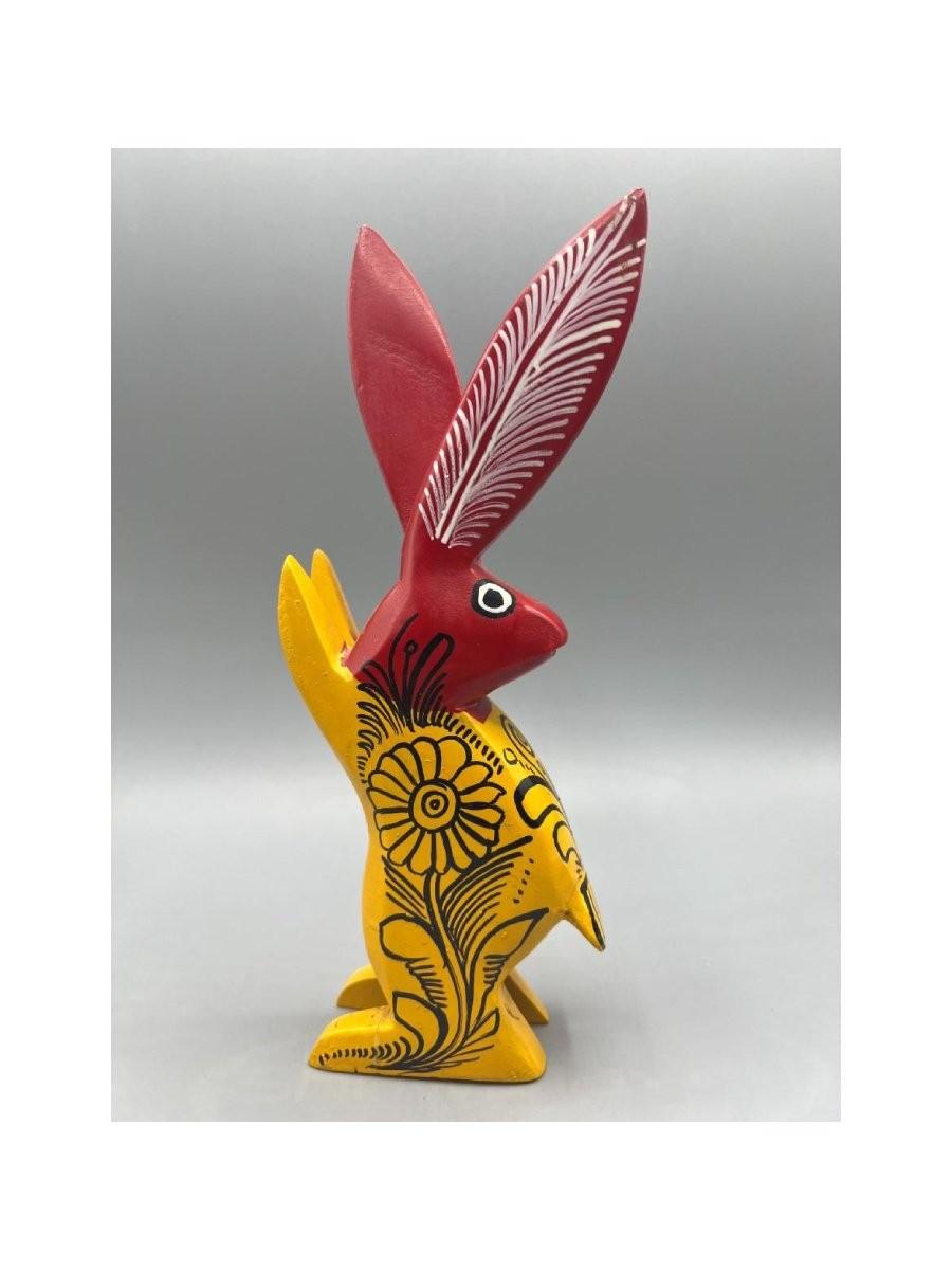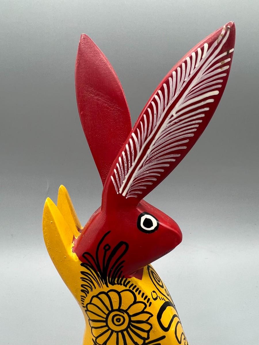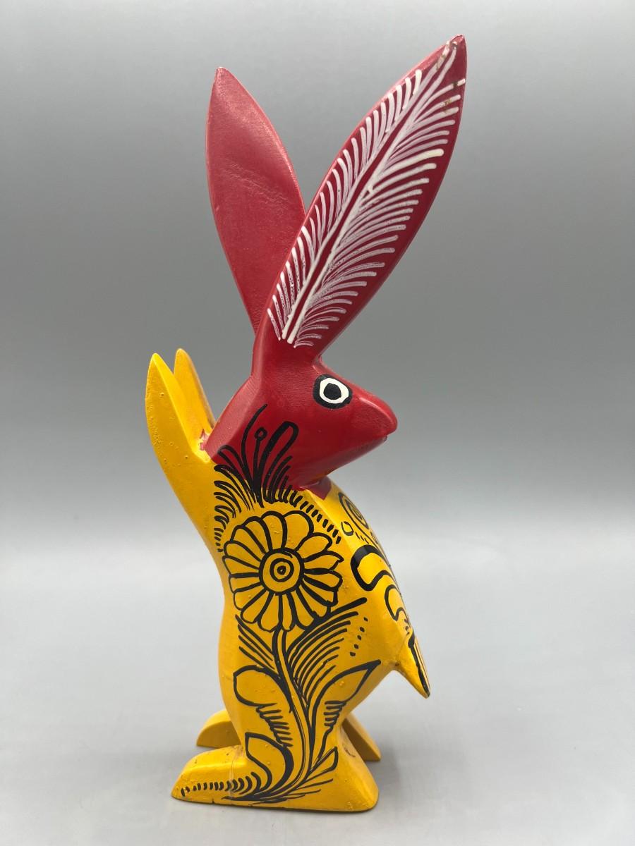 Retro Folk Art Handmade Painted & Carved Wooden Standing Bunny Rabbit Display Figurine