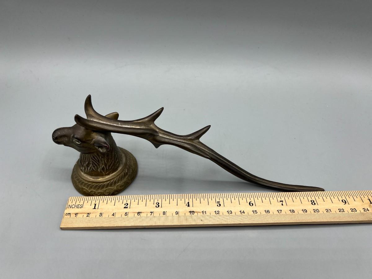 Vintage Long Horned Elk Brass Figurine Wall Display Decor