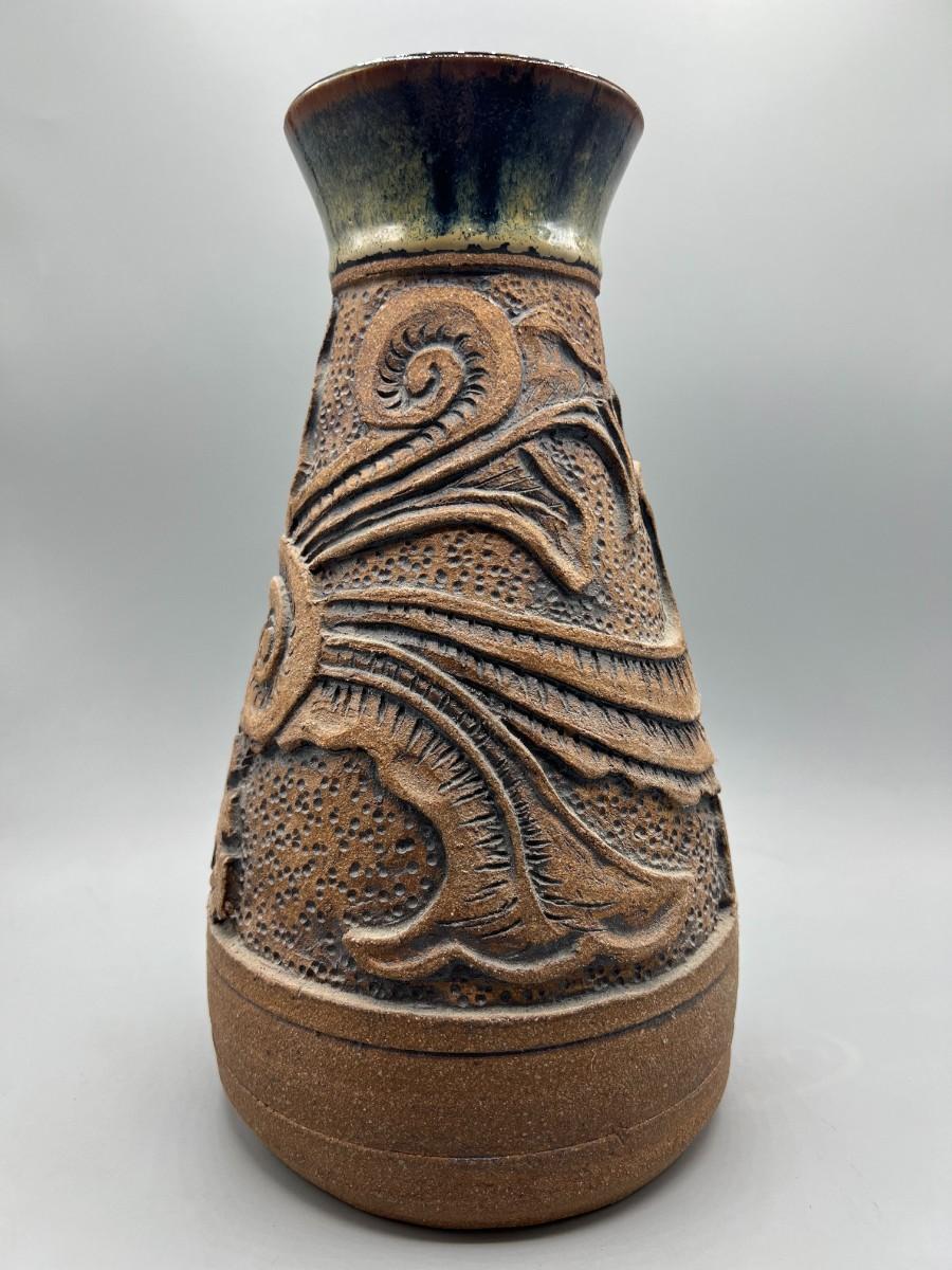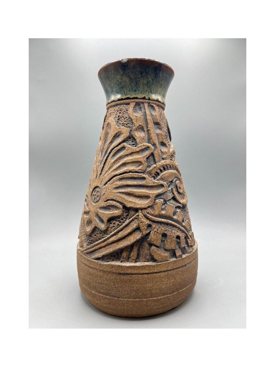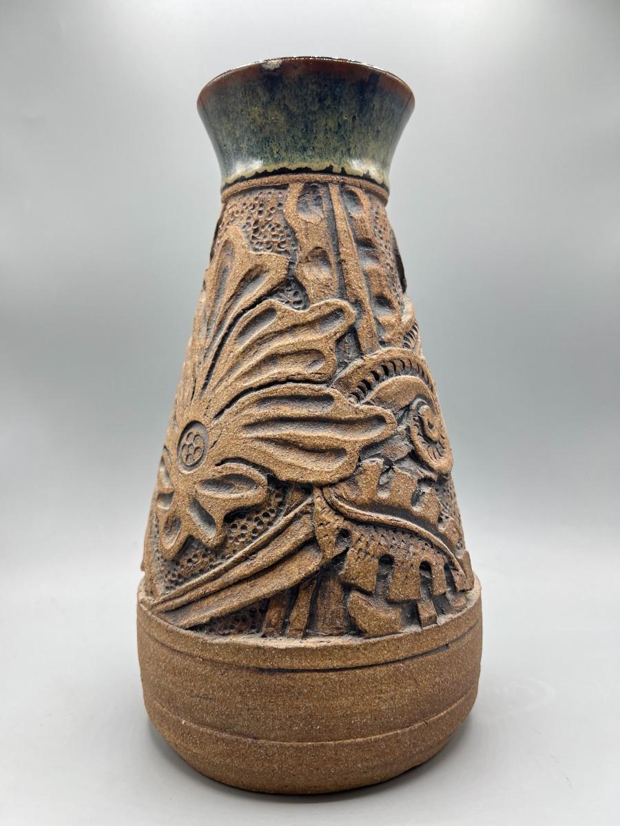 Vintage Dave Ramsey Pottery Stoneware Carved Foliage Vase